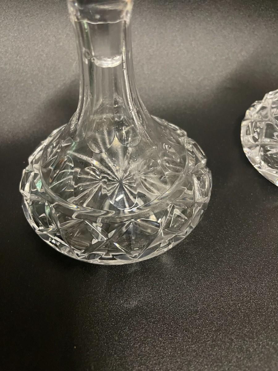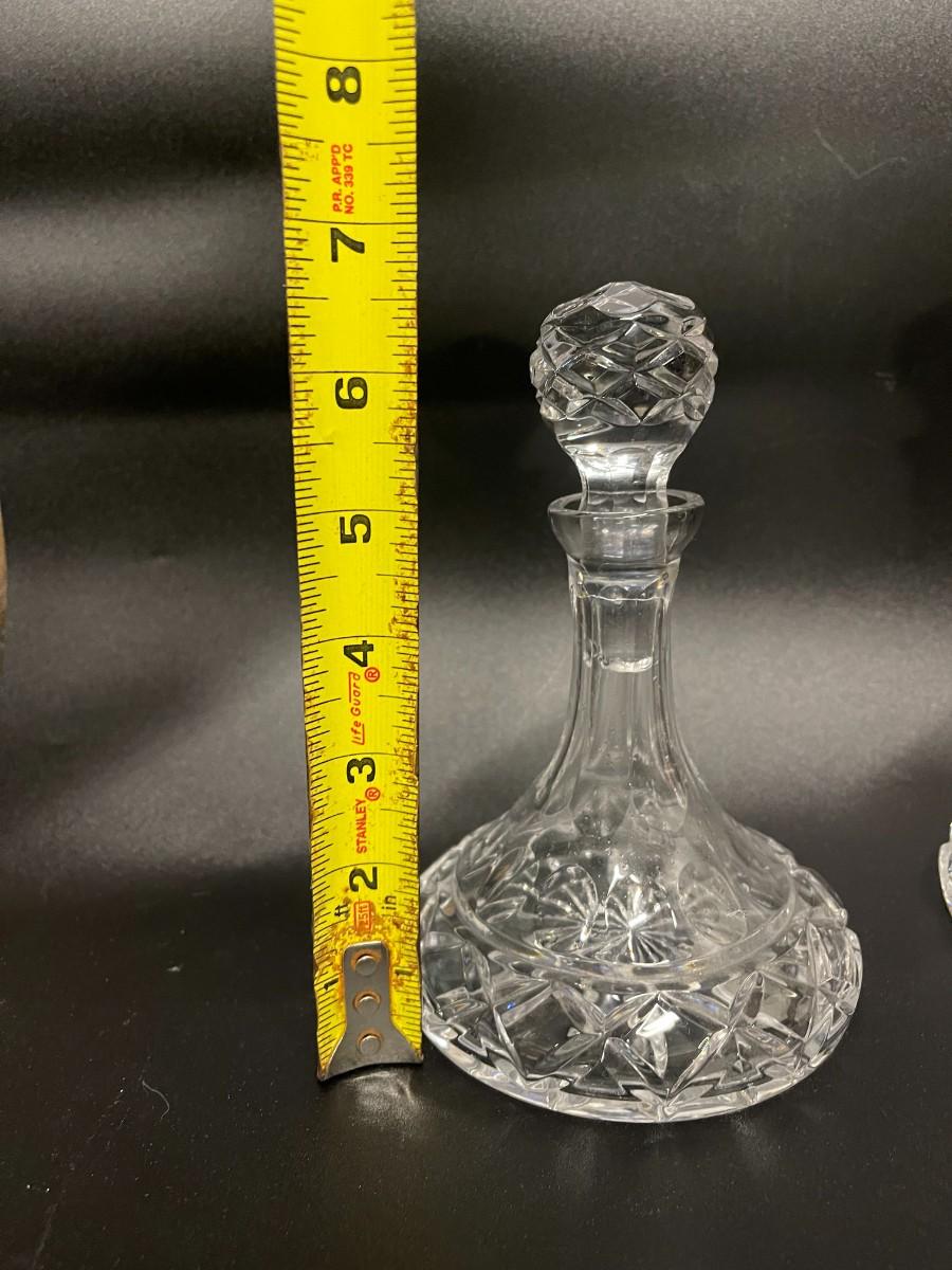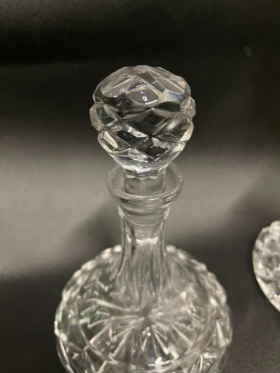Pair of Small Cut Crystal cruets/ Decanters. About 6 1/2" tall.