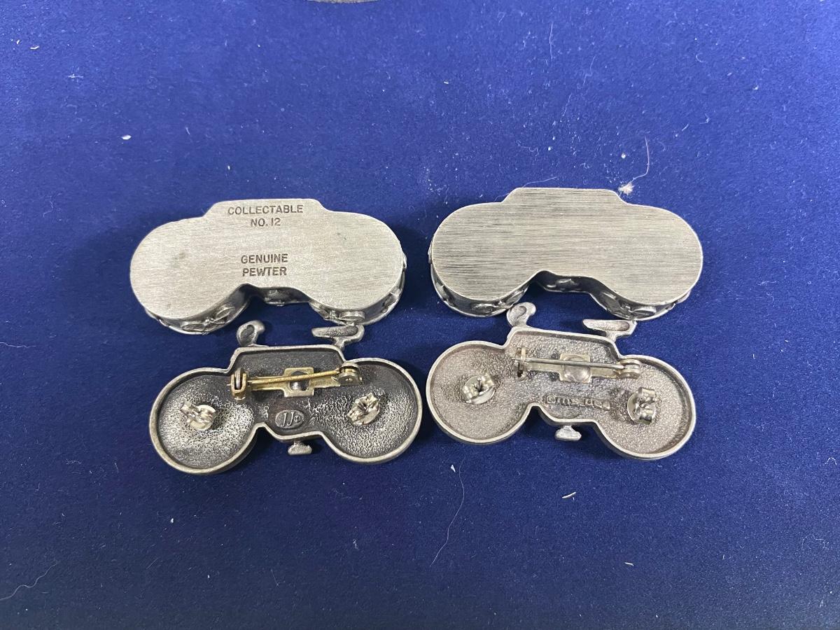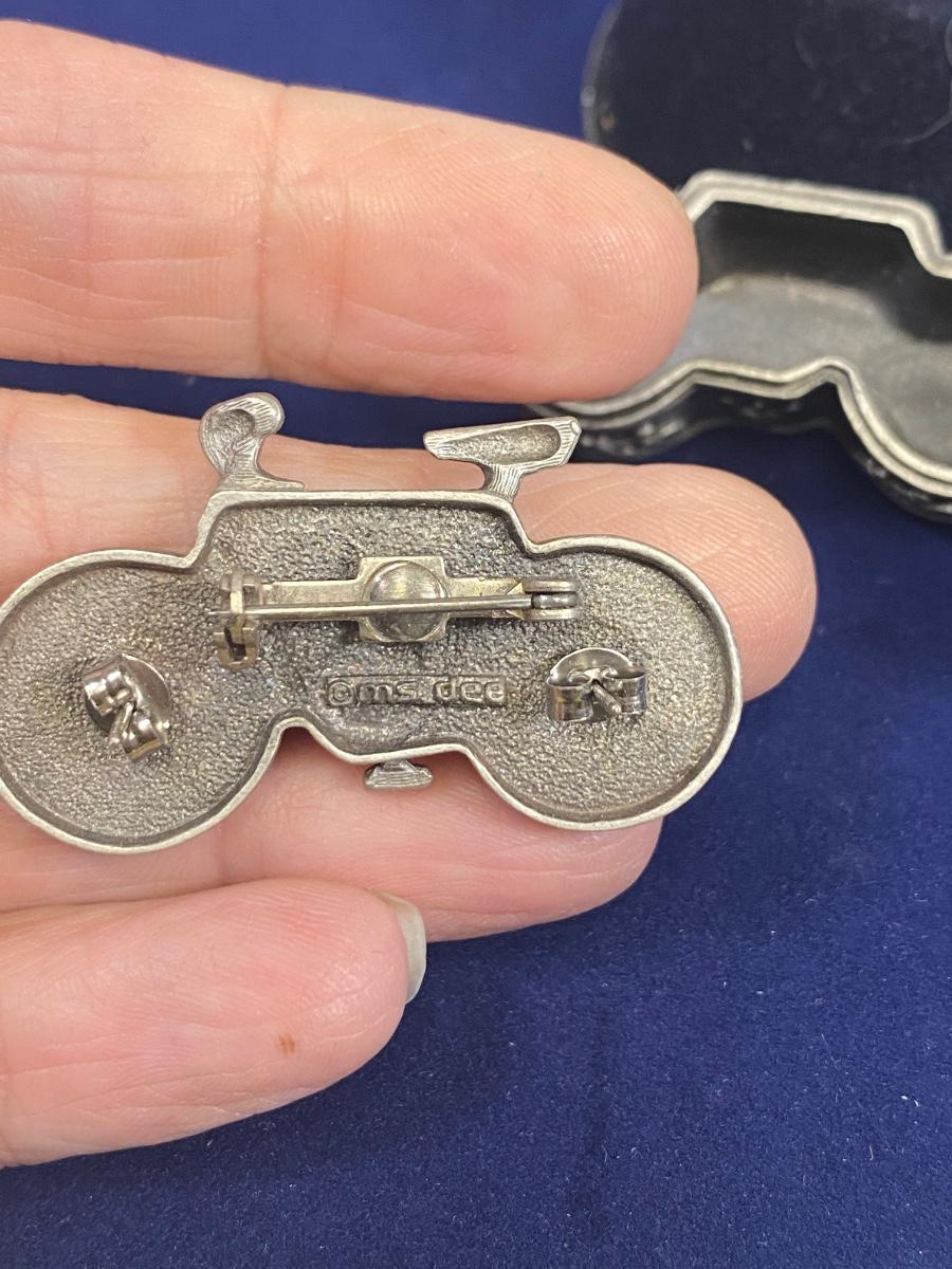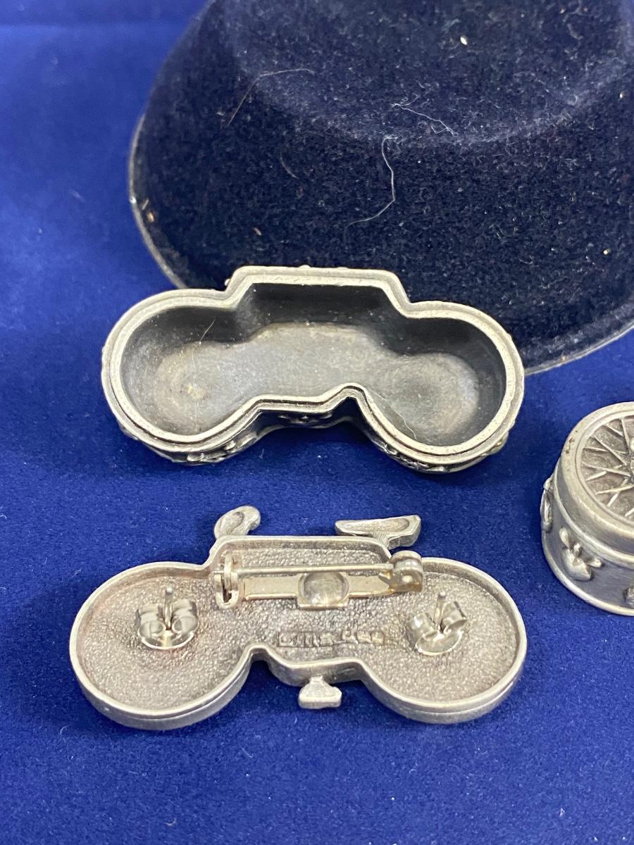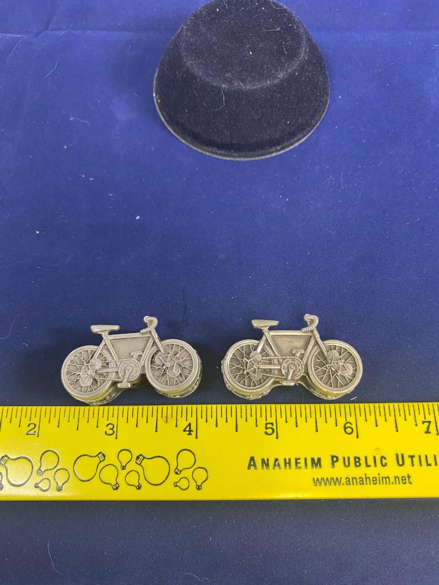 Pair of Small Pewter Bicycle Trinket Boxes with Bike Stud Earrings. Good condition.