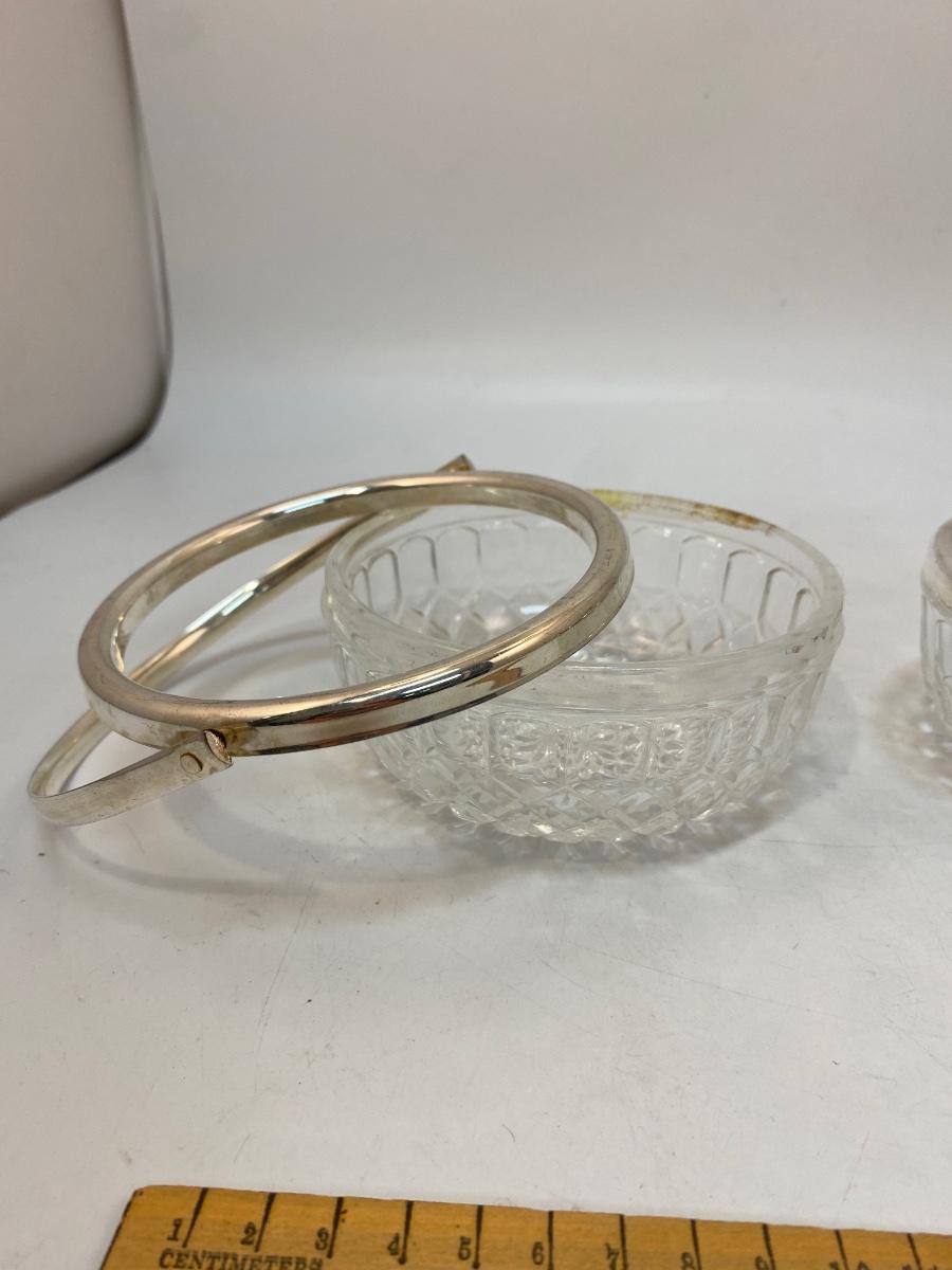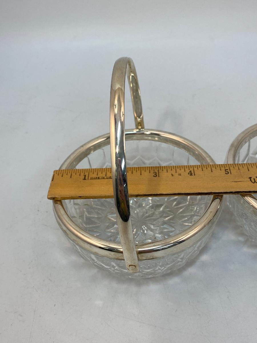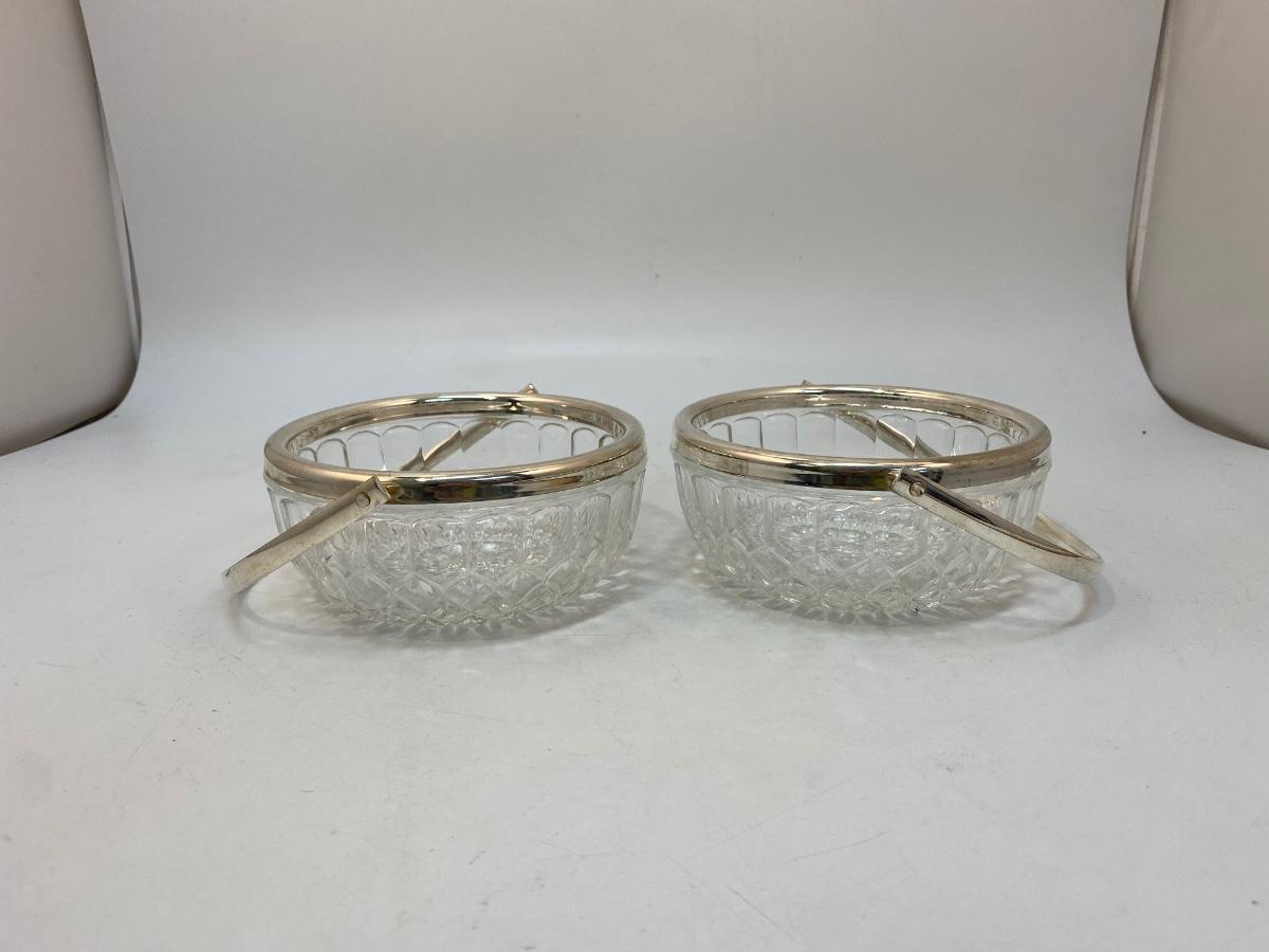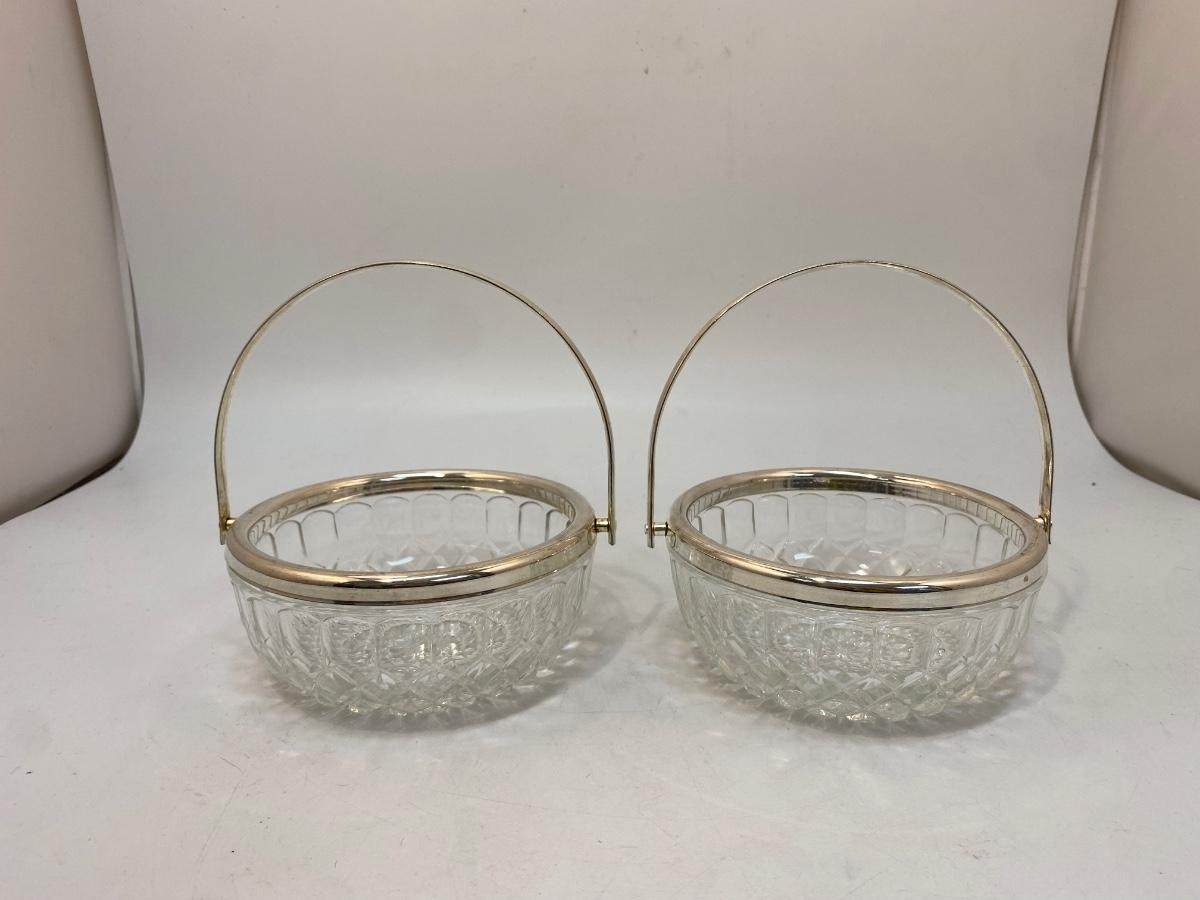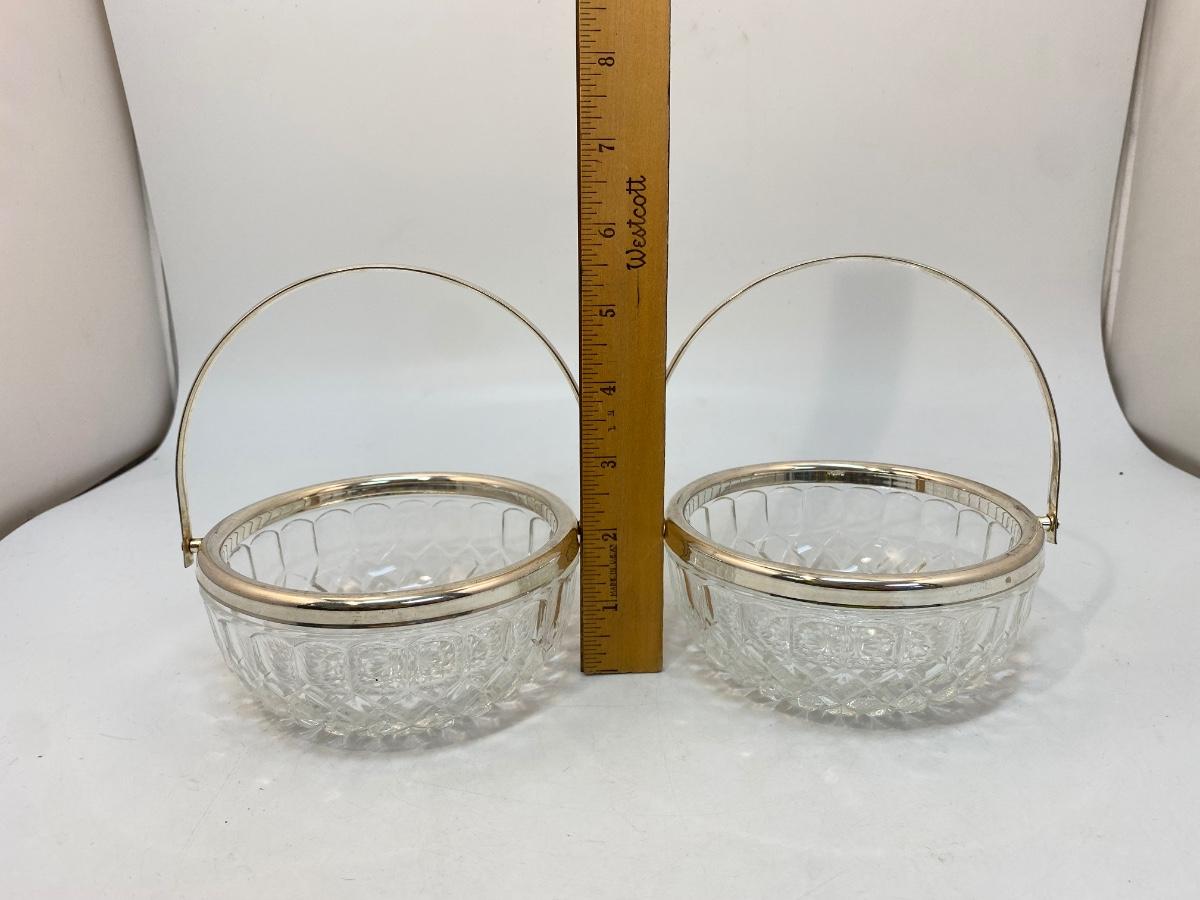 Pair of Small Pressed Glass Silver Plate Trim Candy Dish Baskets