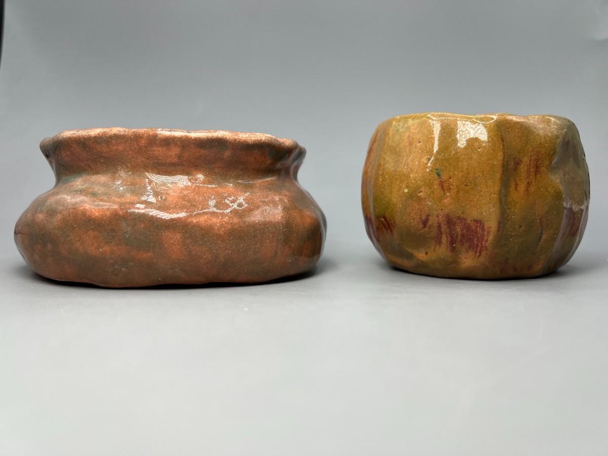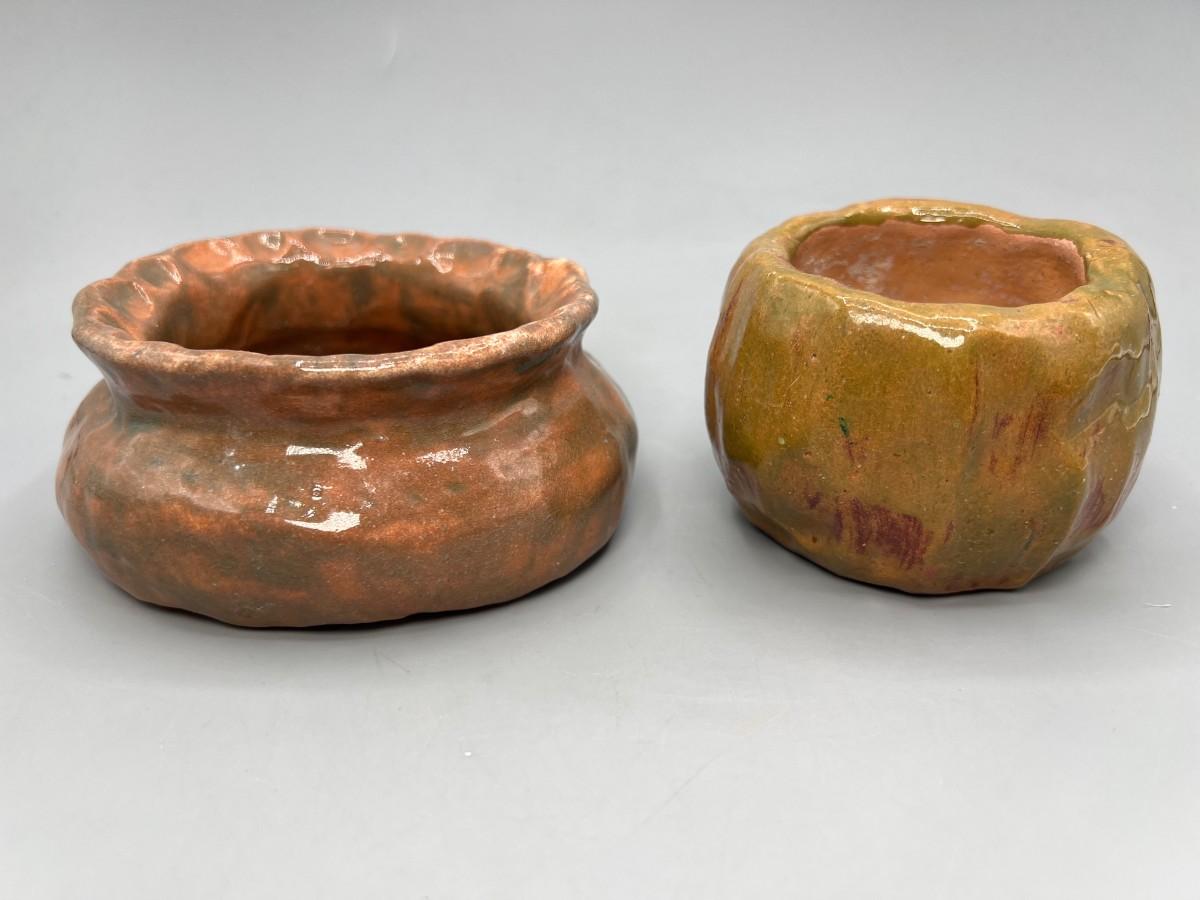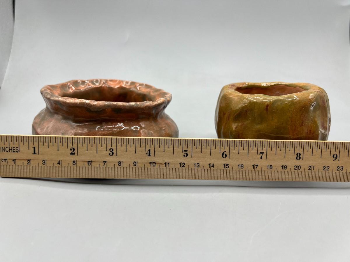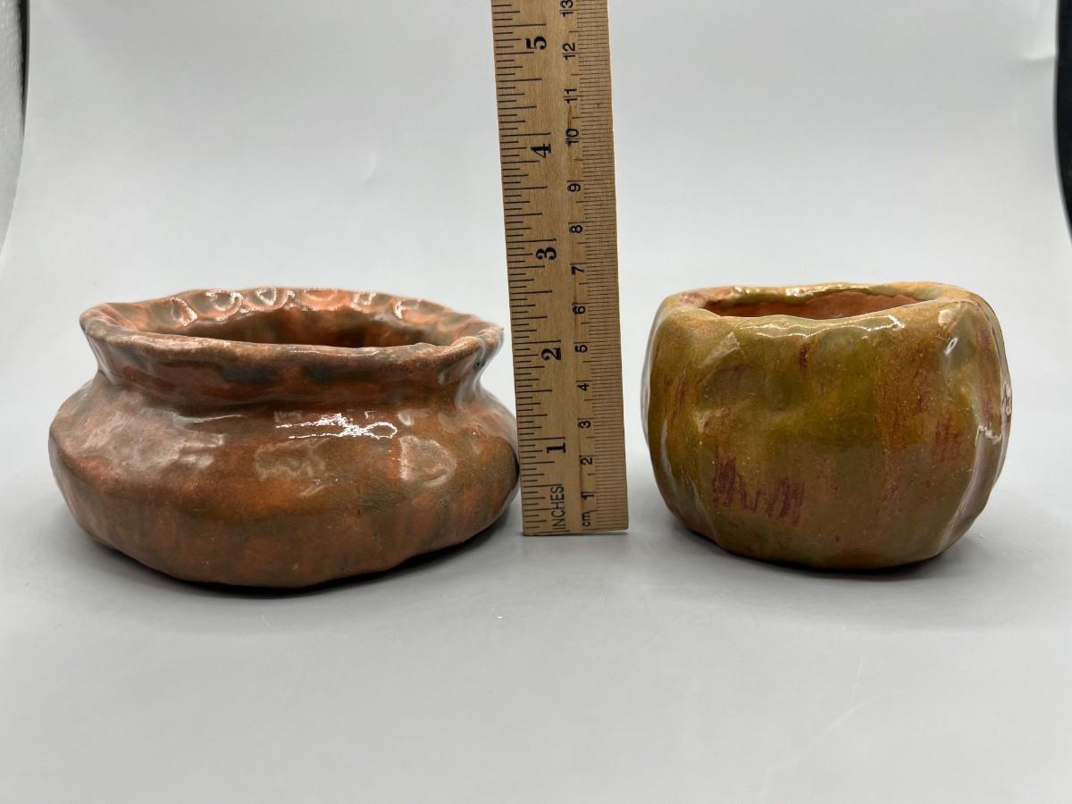Pair of Small Retro Handmade Glazed Pottery Teracotta Decorative Trinket Bowls