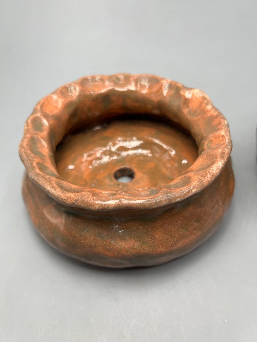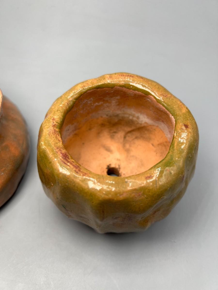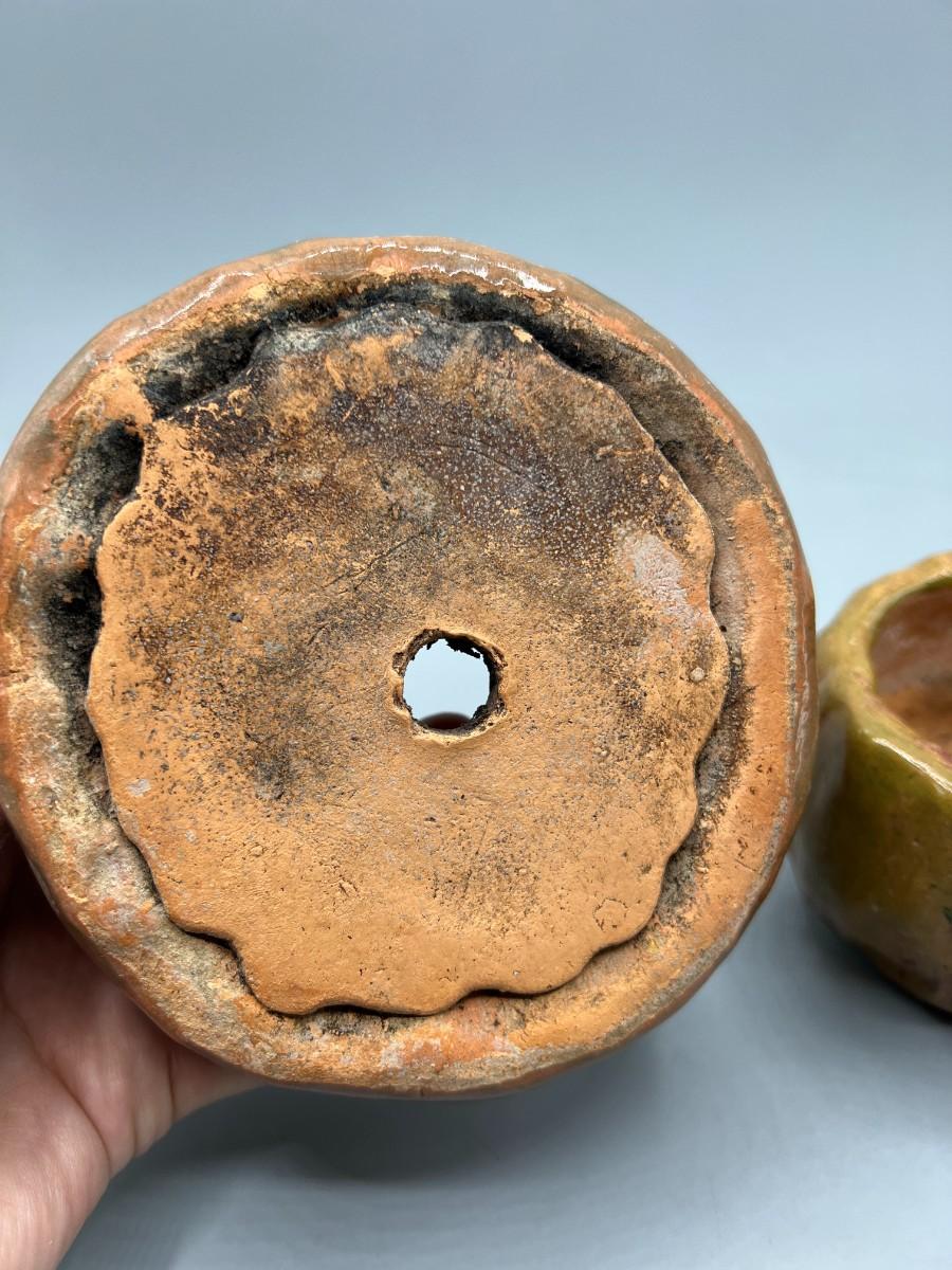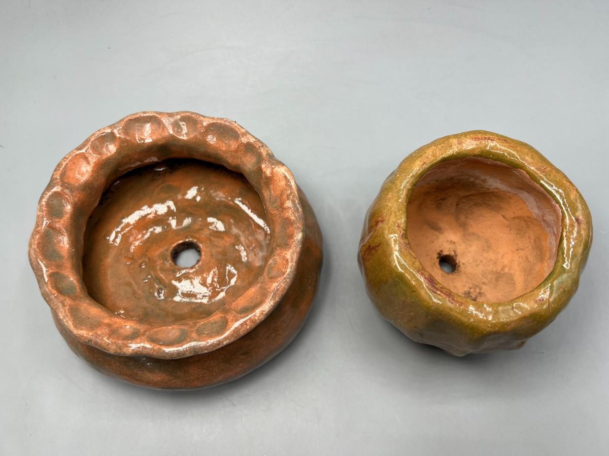 Pair of Small Retro Handmade Glazed Pottery Teracotta Decorative Trinket Bowls