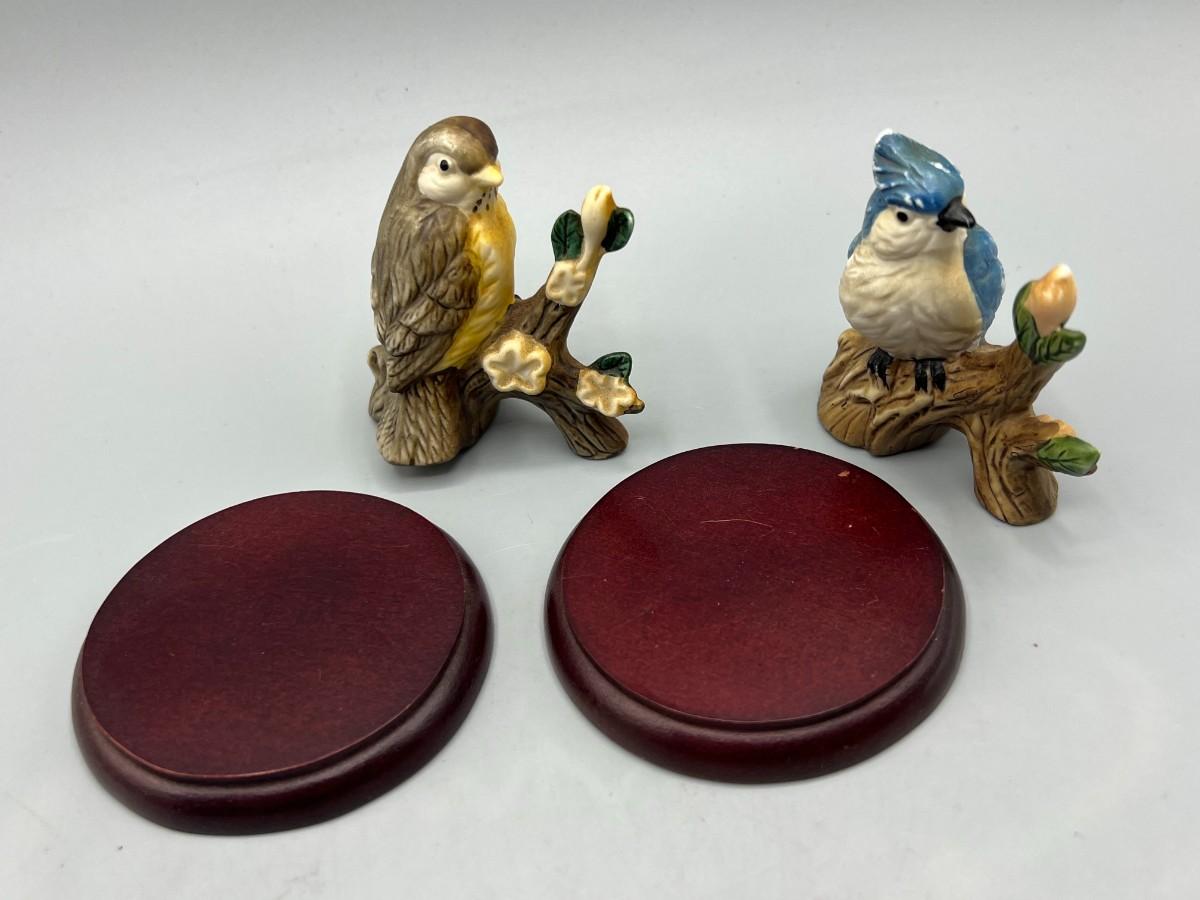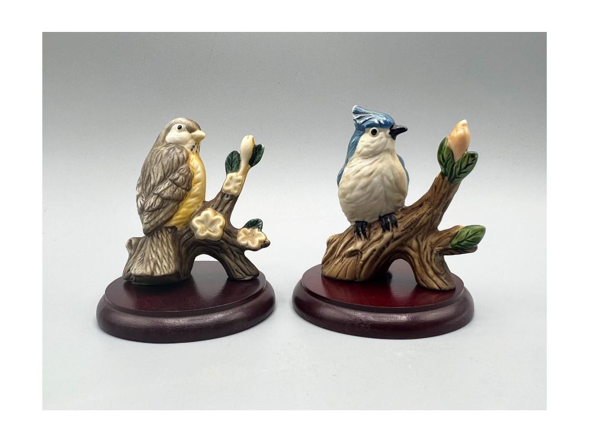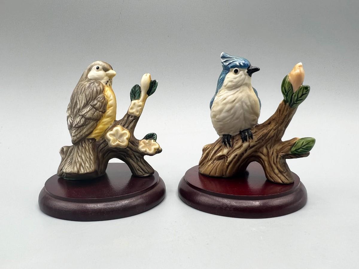 Pair of Small Retro Simson Displayable Porcelain Perched Bird Figurines