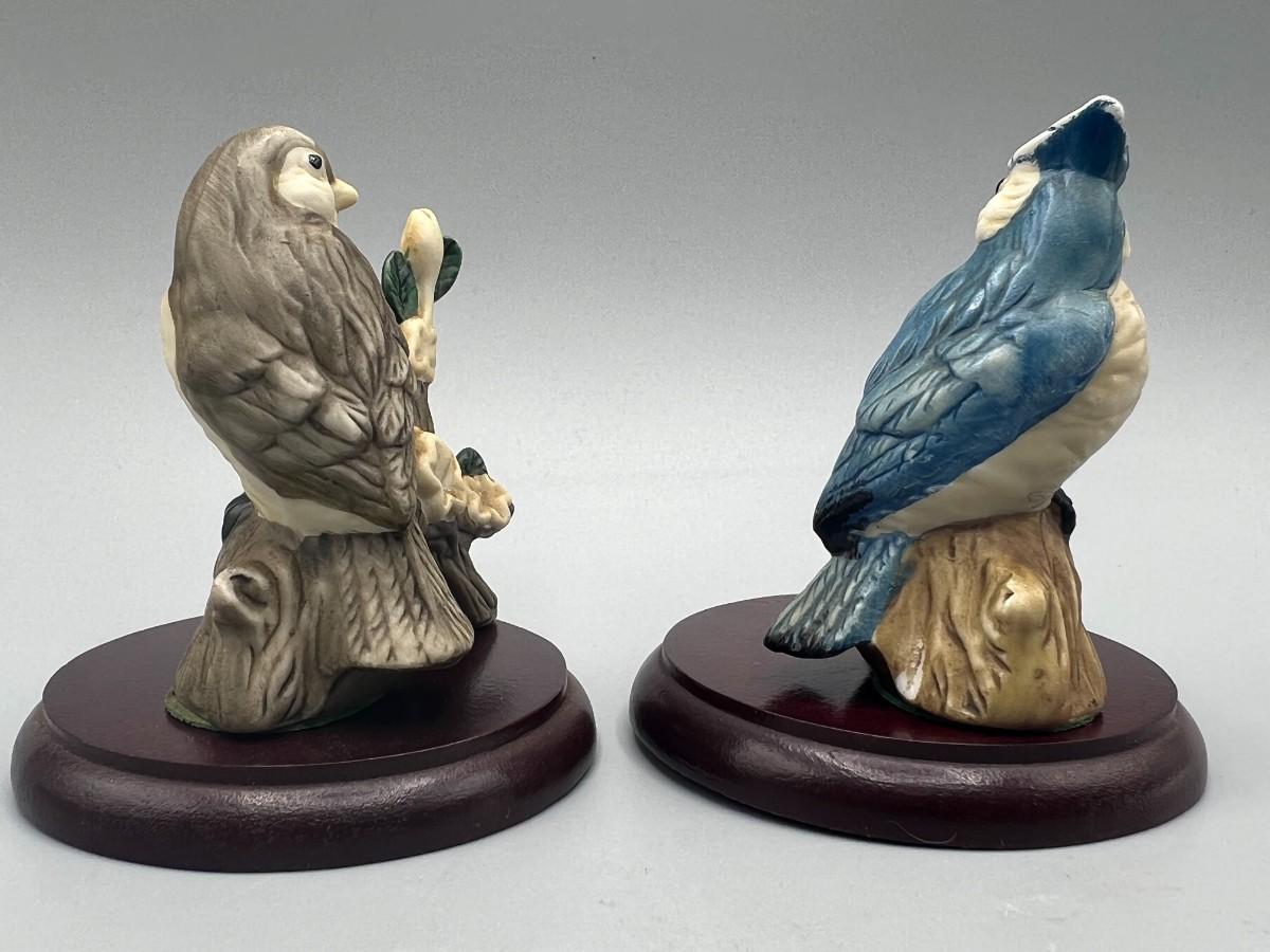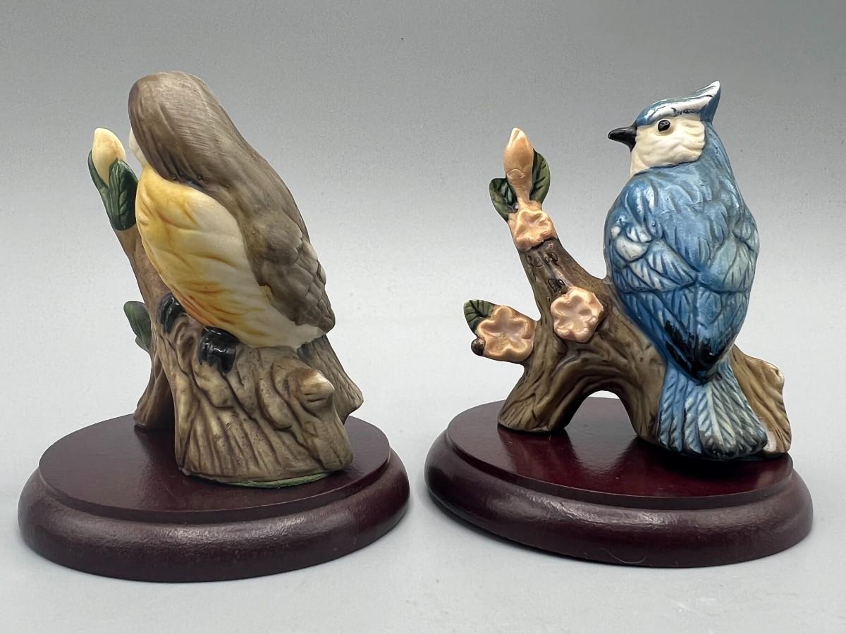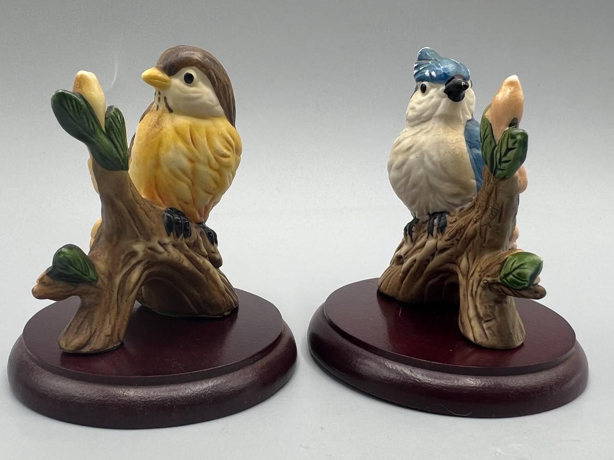 Pair of Small Retro Simson Displayable Porcelain Perched Bird Figurines