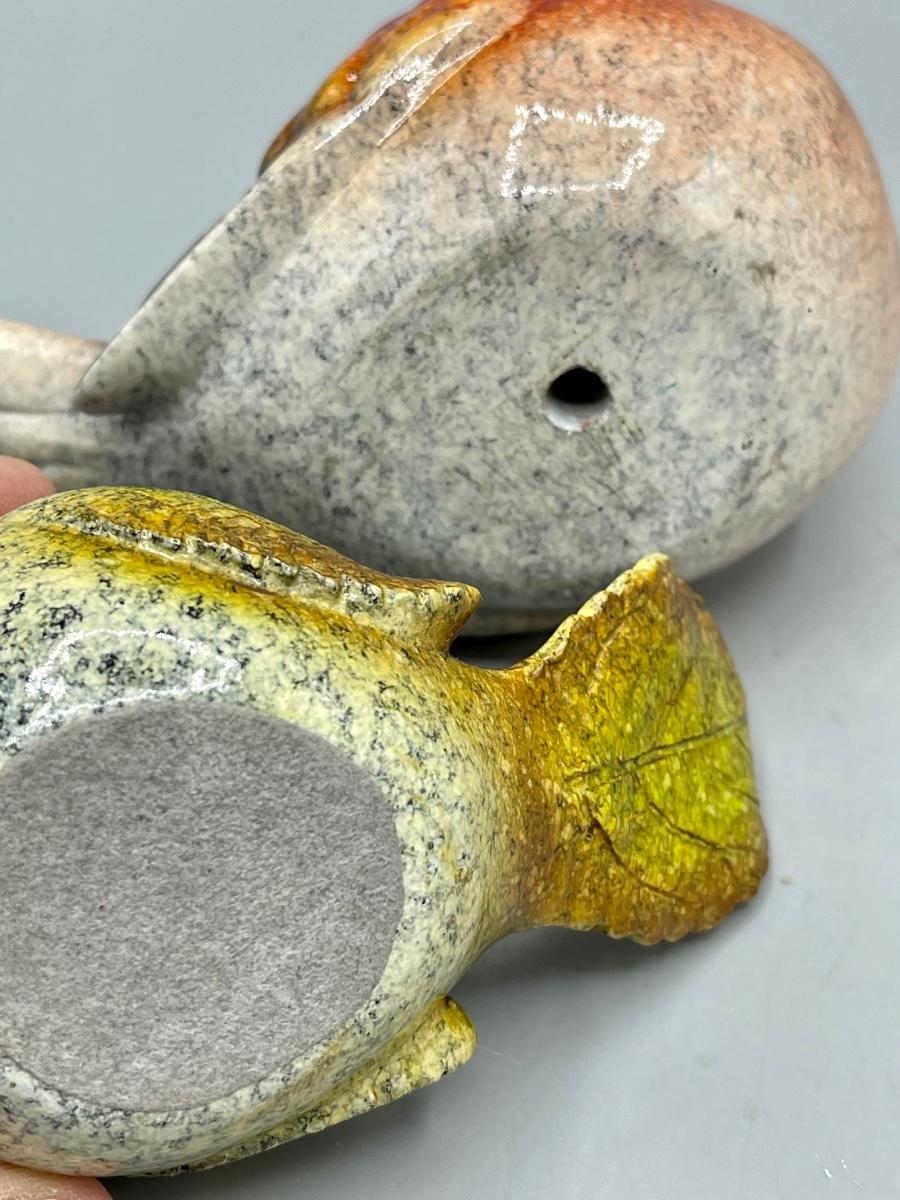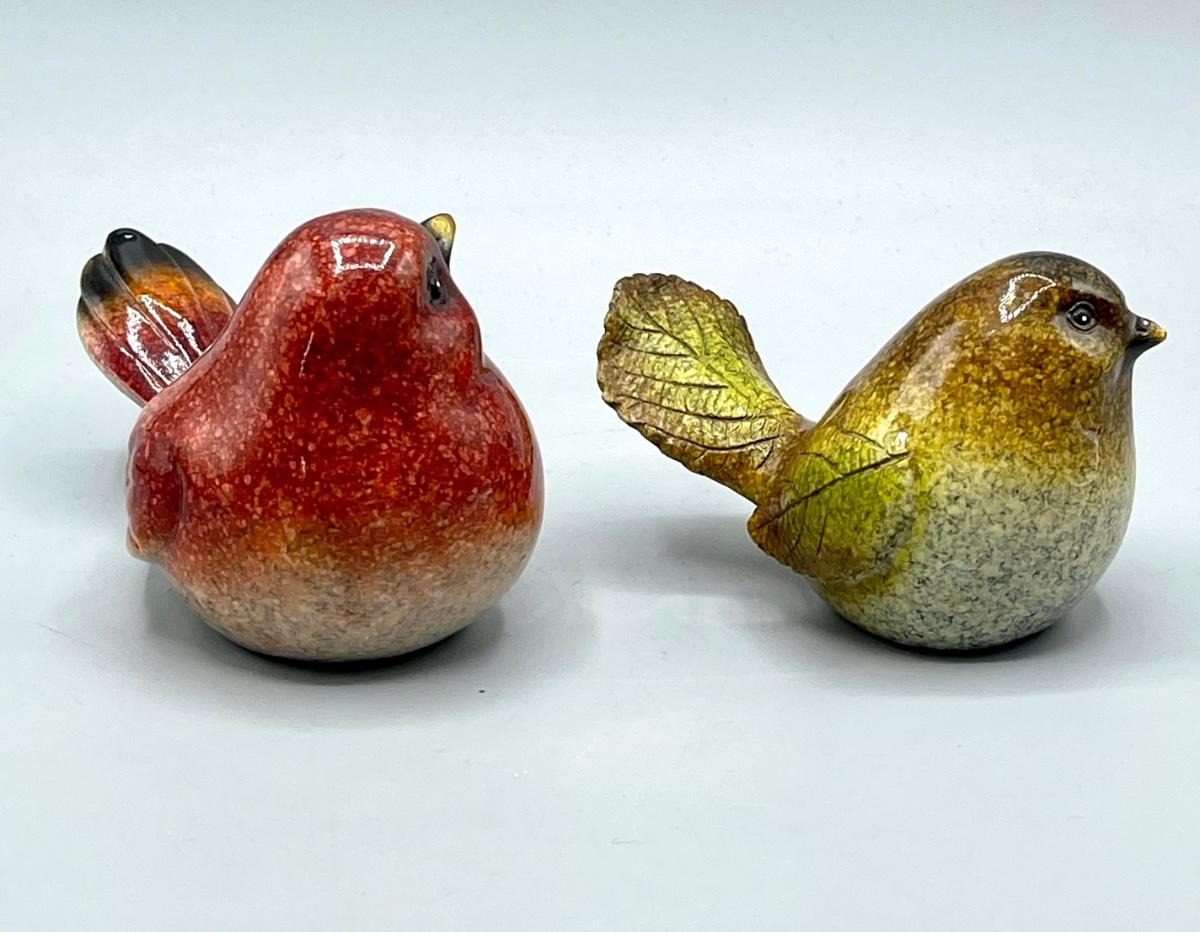 There is no significant damage to the birds and both are in good displayable condition. Check pictures for more details and for sizing.