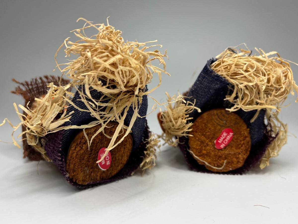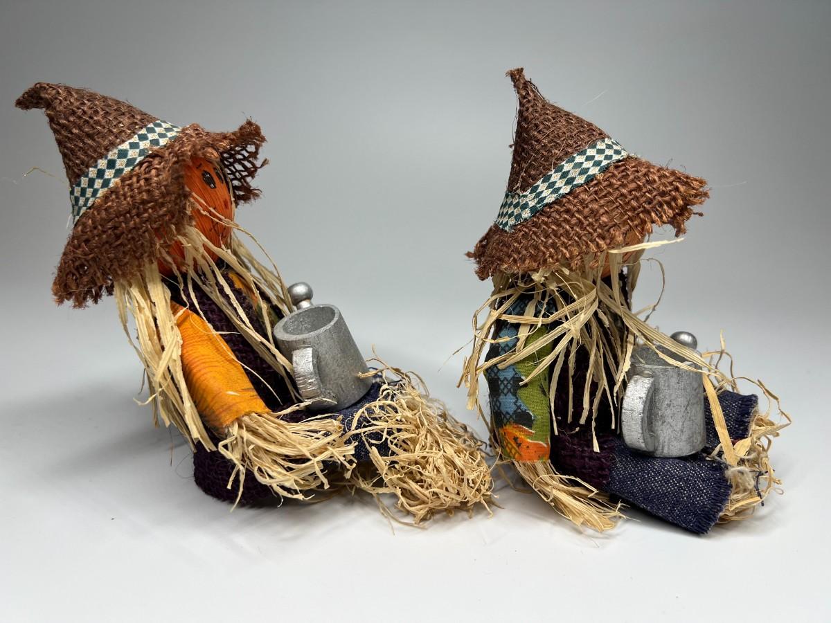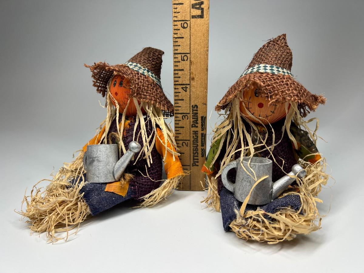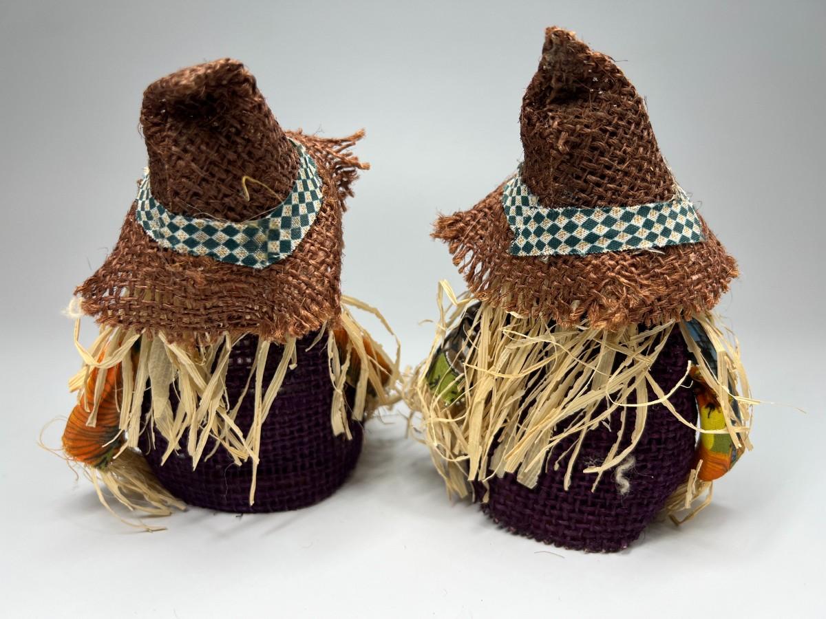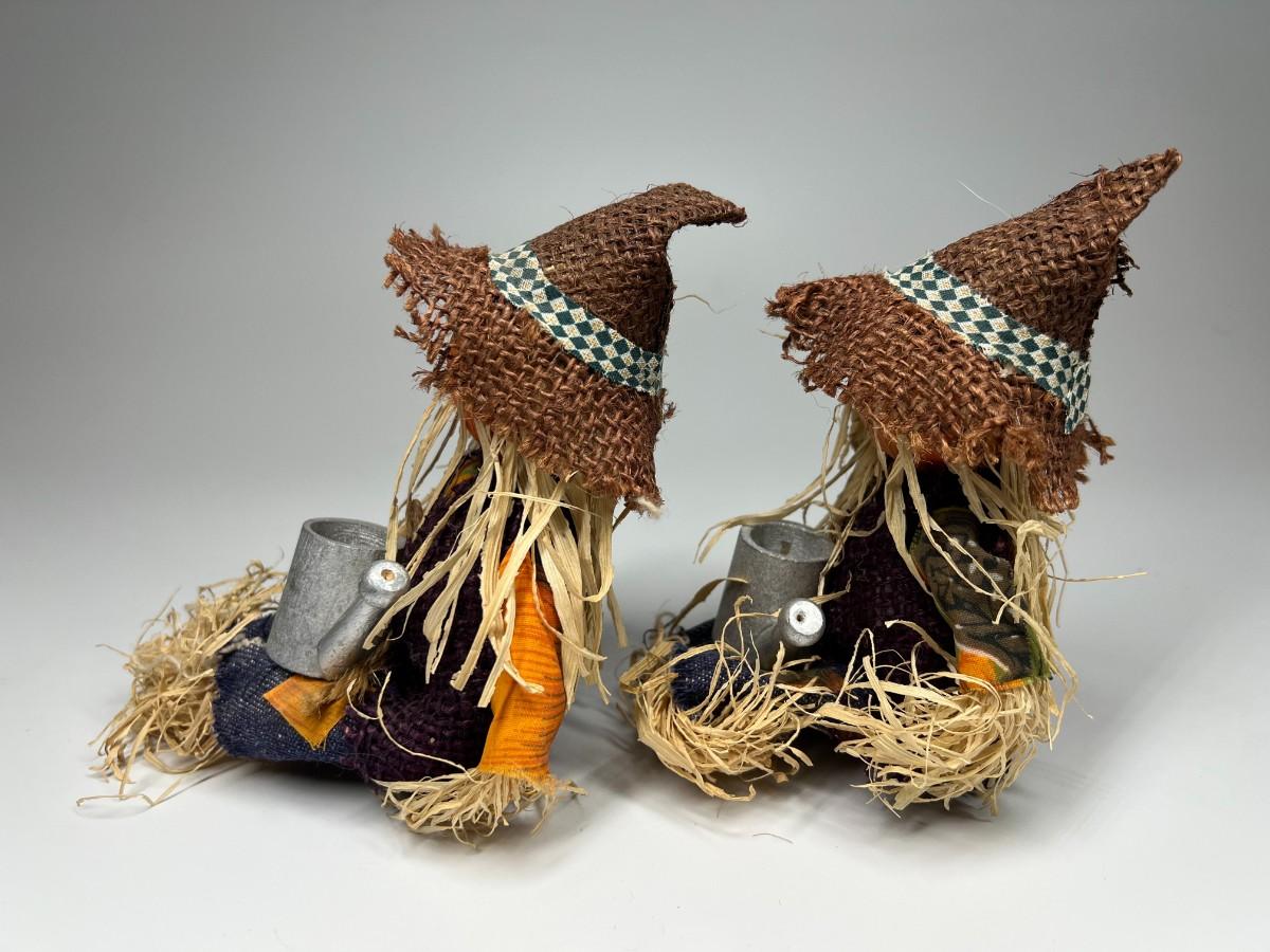 Pair of Small Scarecrow Hay Cloth Fall Autumn Figurines