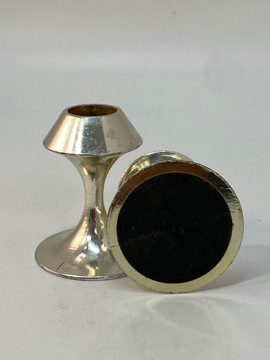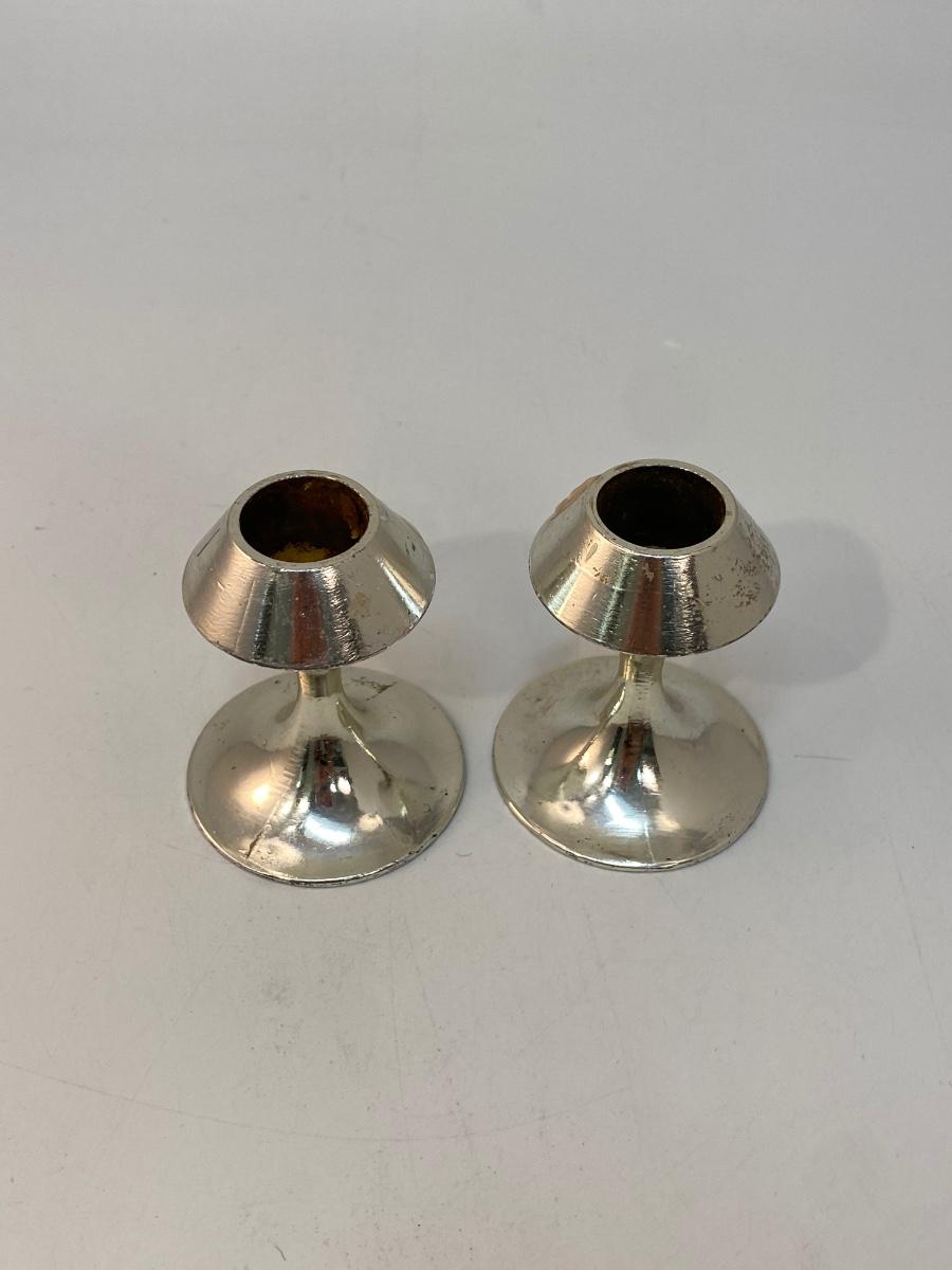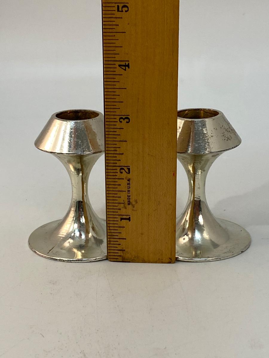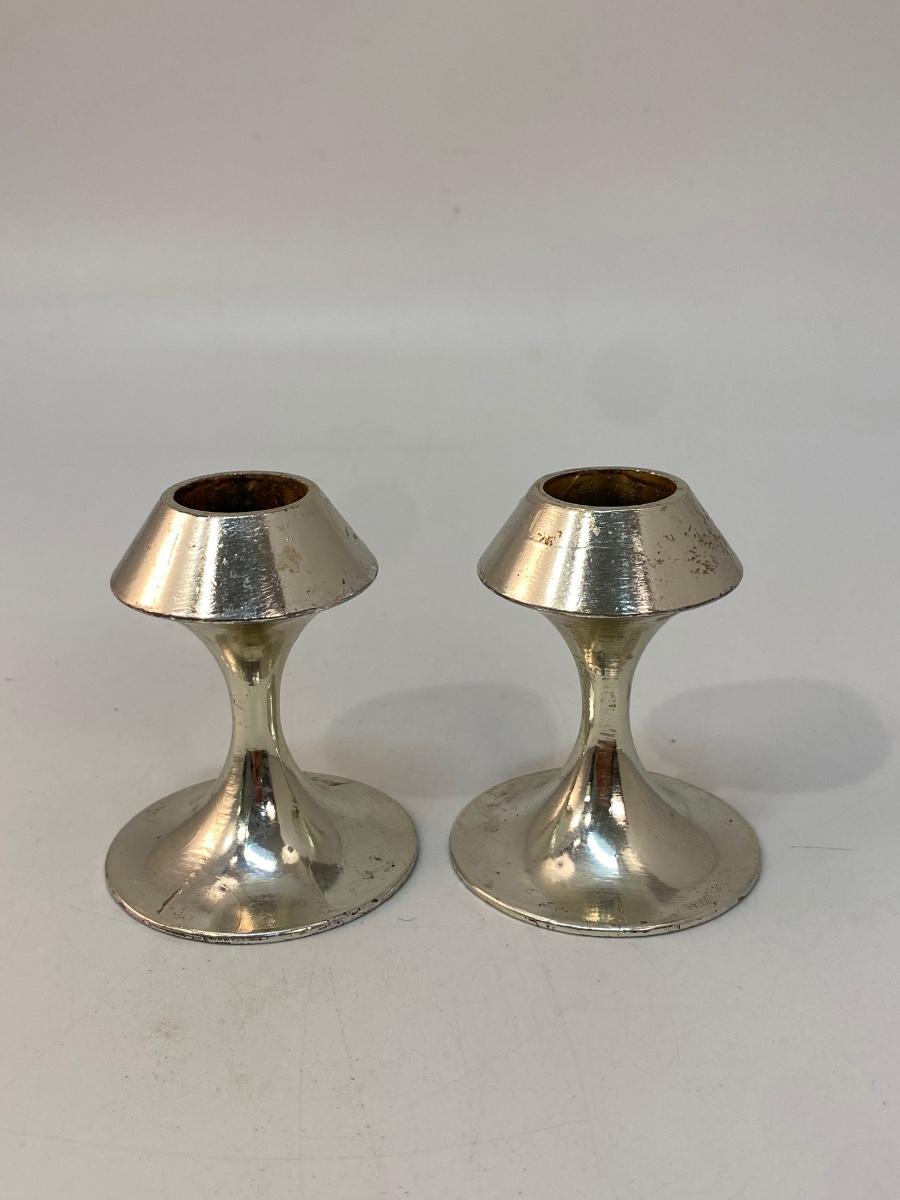 Pair of Small Silver Plate Mid Century Styled Candlestick Holders. Some light signs of age and use.