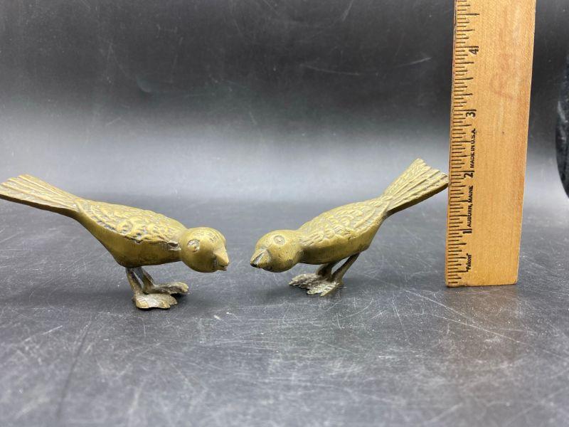 Pair of small solid brass birds. About 4" in length and 3" high, these little birds are heavy. Display nicely.