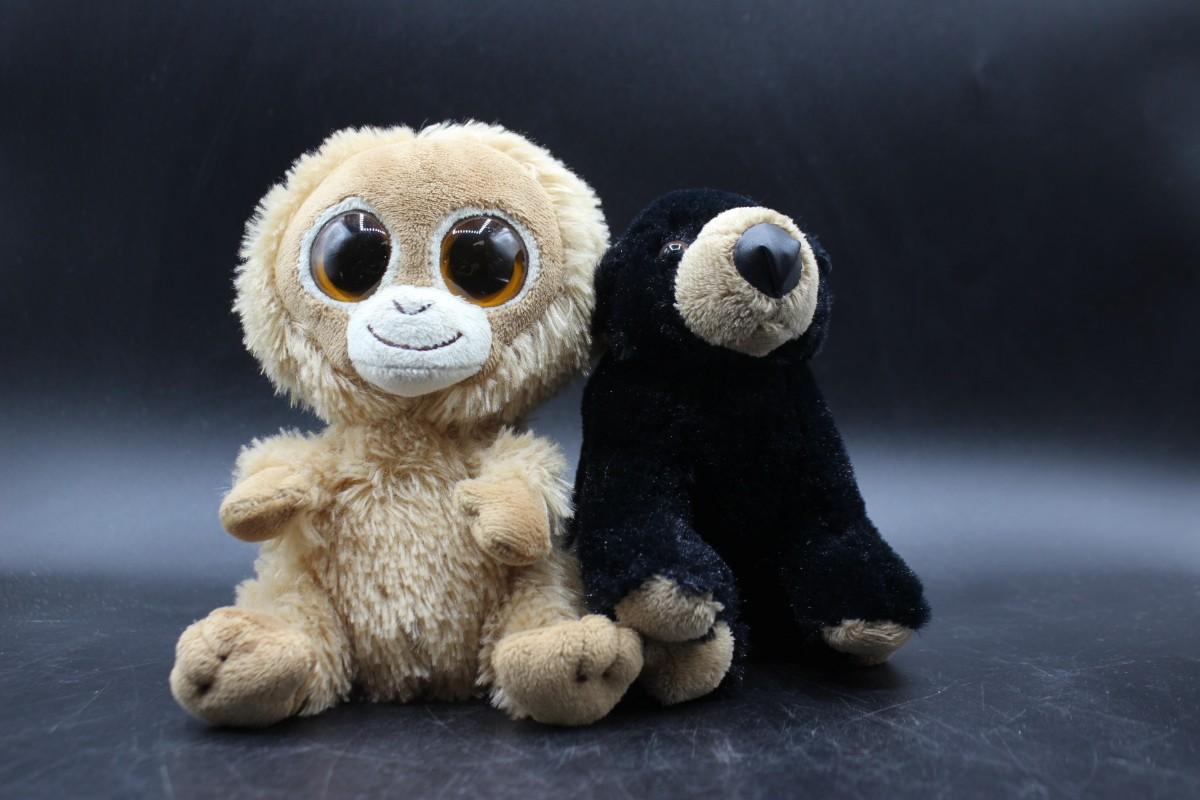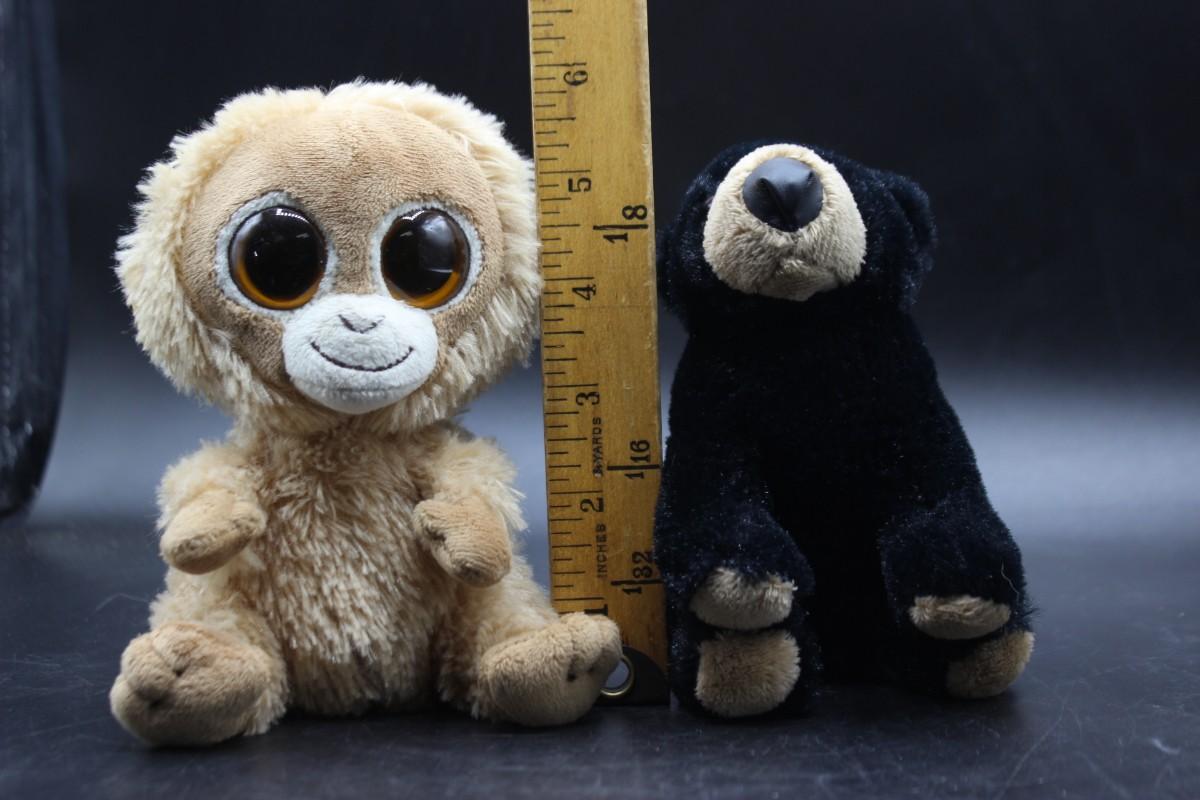Pair of Small Stuffed Plush Animals Monkey Black Bear