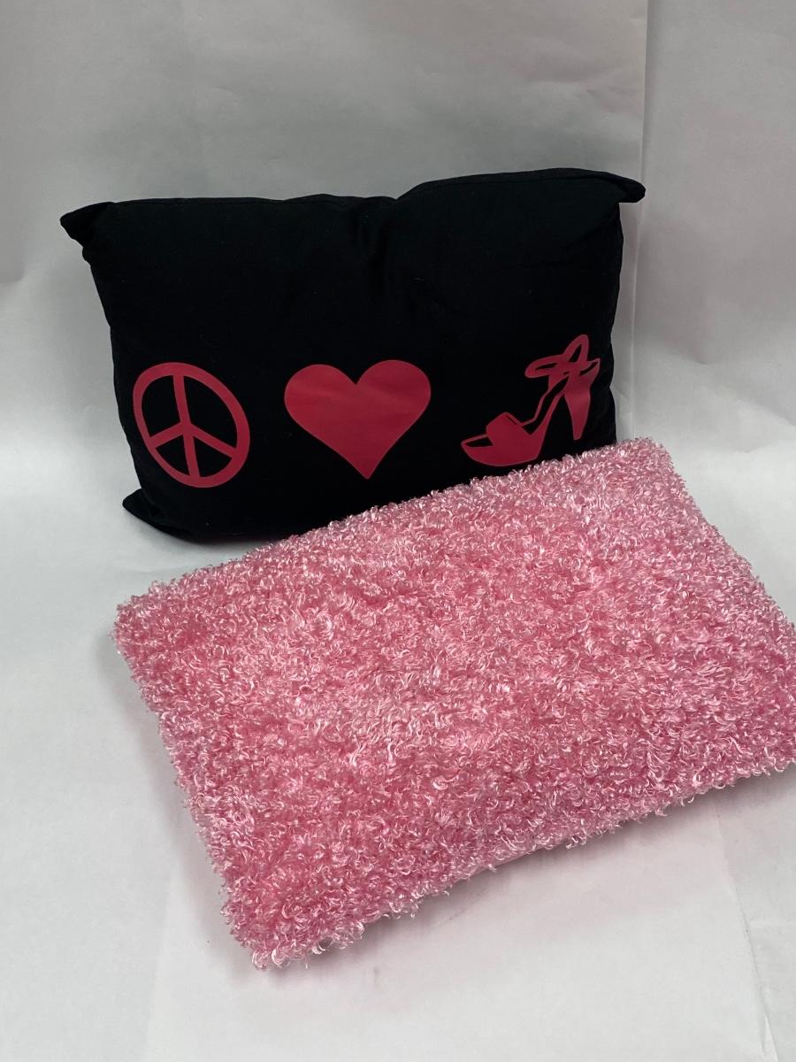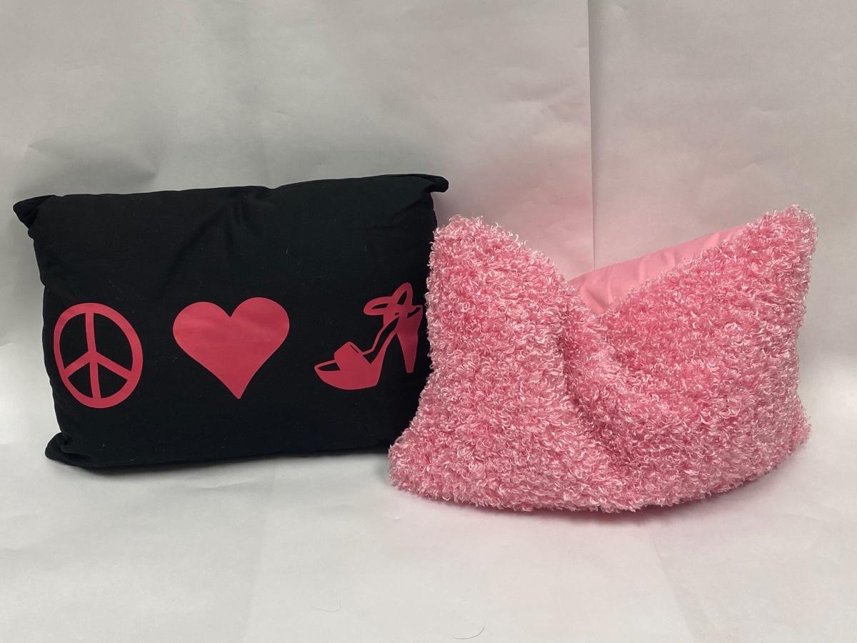 Pair of Small Throw Pillows Black and Pink. Good condition.