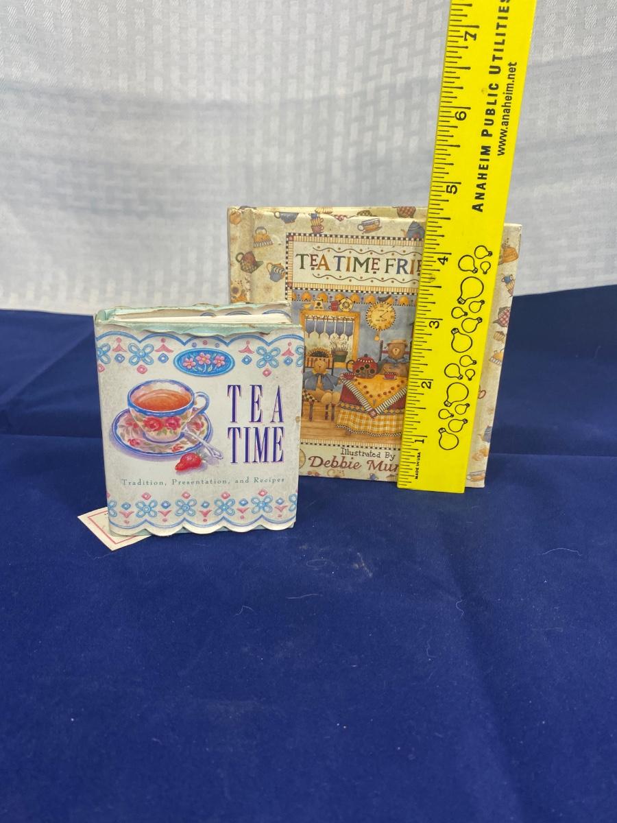 Pair of Small Tiny Tea Time Books with Tea History, Quotes, and Recipes. Good, displayed condition. Under 4.5" size.
