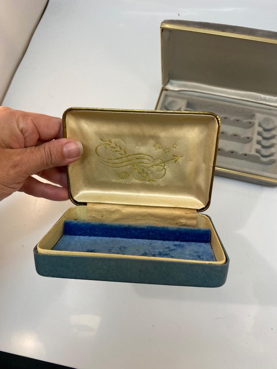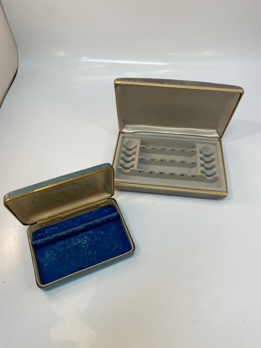 Pair of Small Vintage Jewelry Trinket Keepsake Boxes Tory Jewel Box Mele. Both are in useable vintage condition. Slight wear from use and age. Small size, great for travel or hiding in a drawer.
