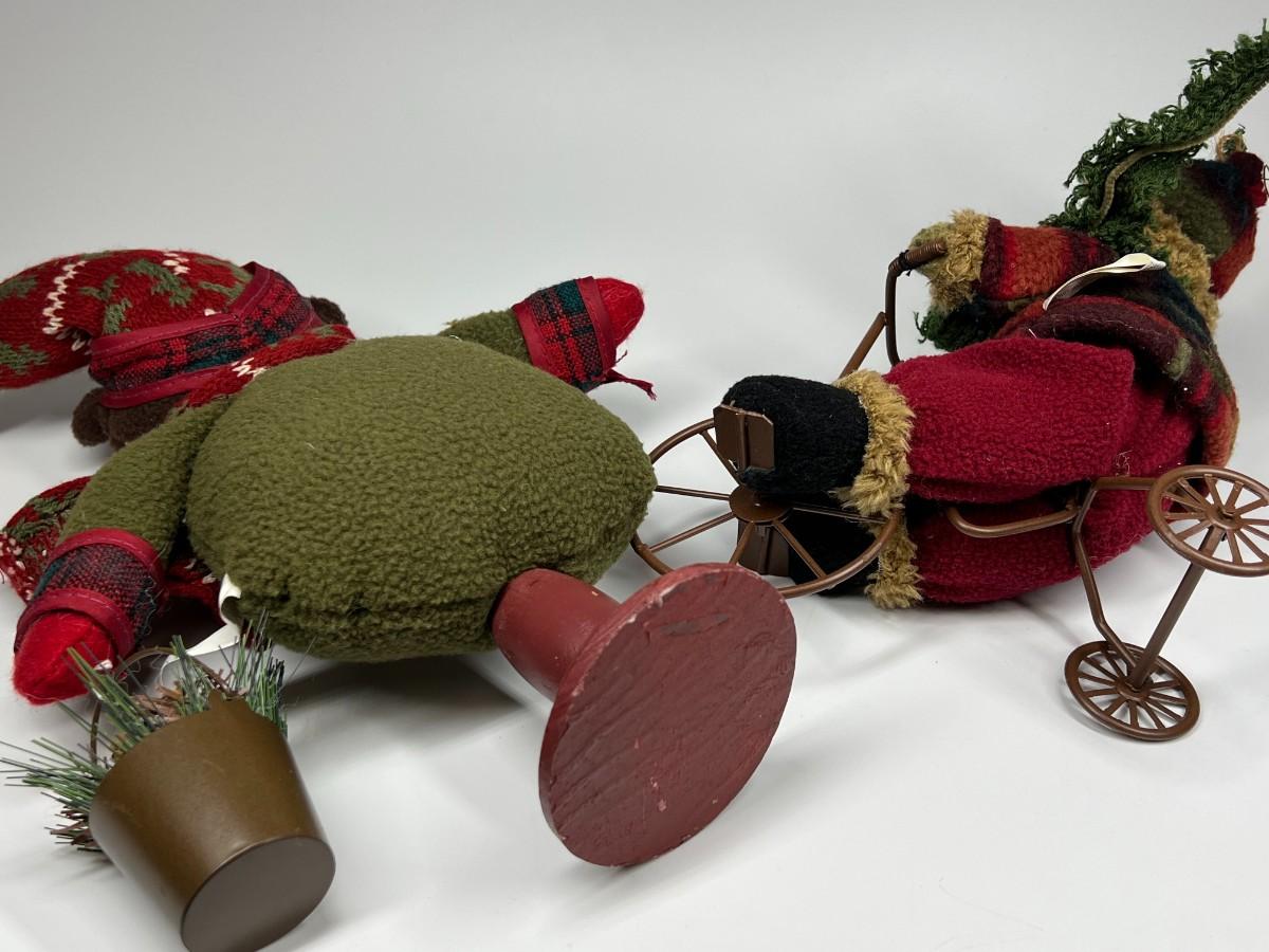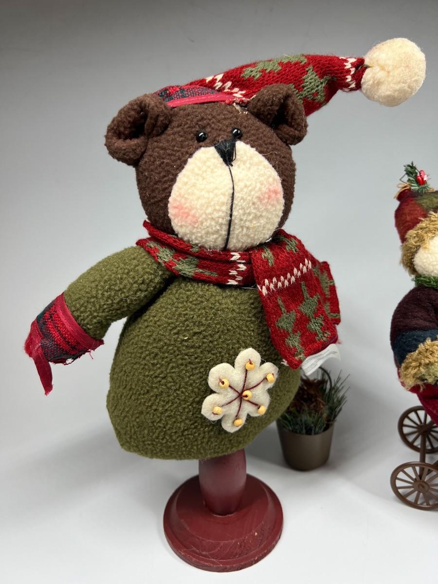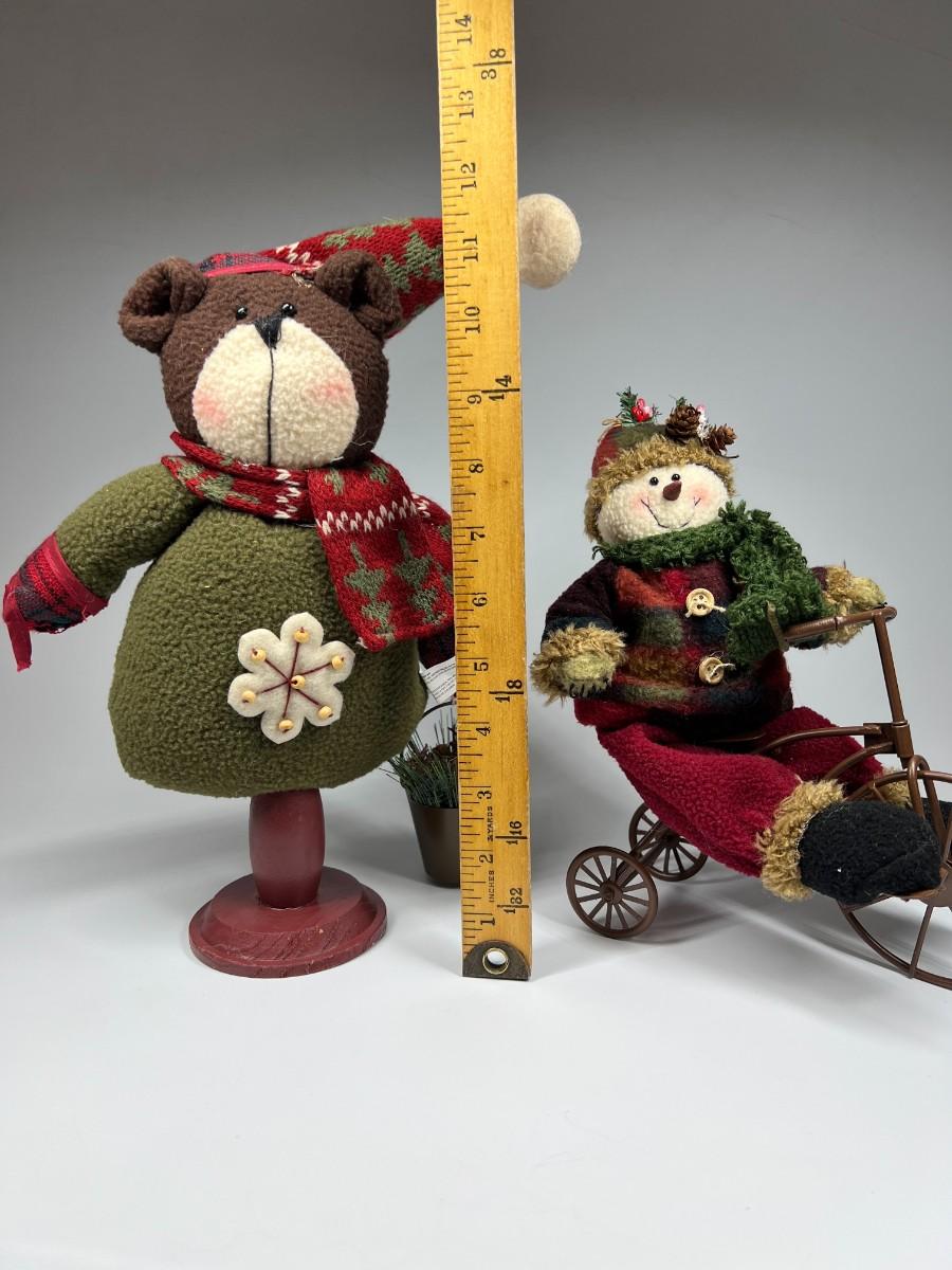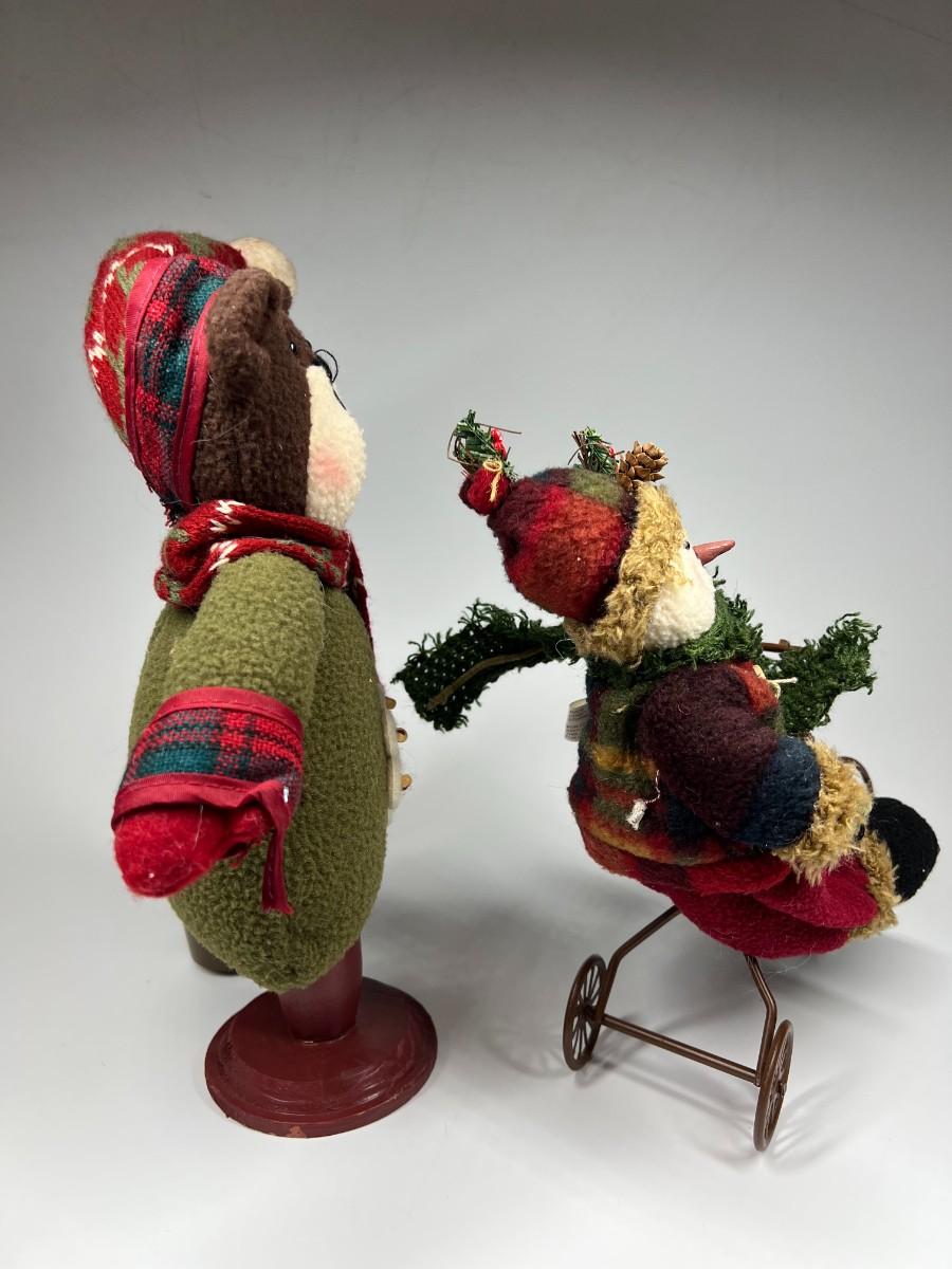 Pair of Soft Felt Christmas Holiday Decor Rustic Bear & Tricycle Riding Snowman