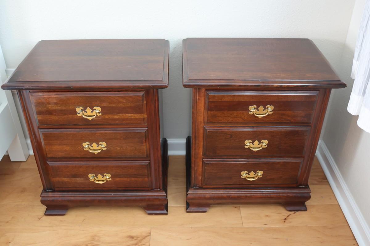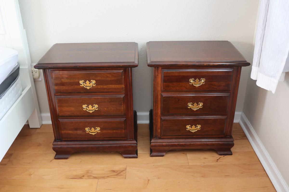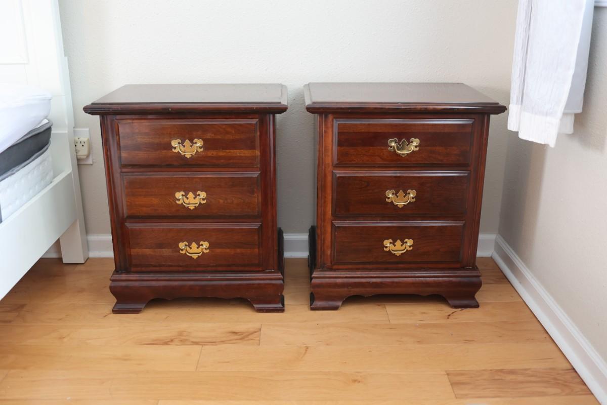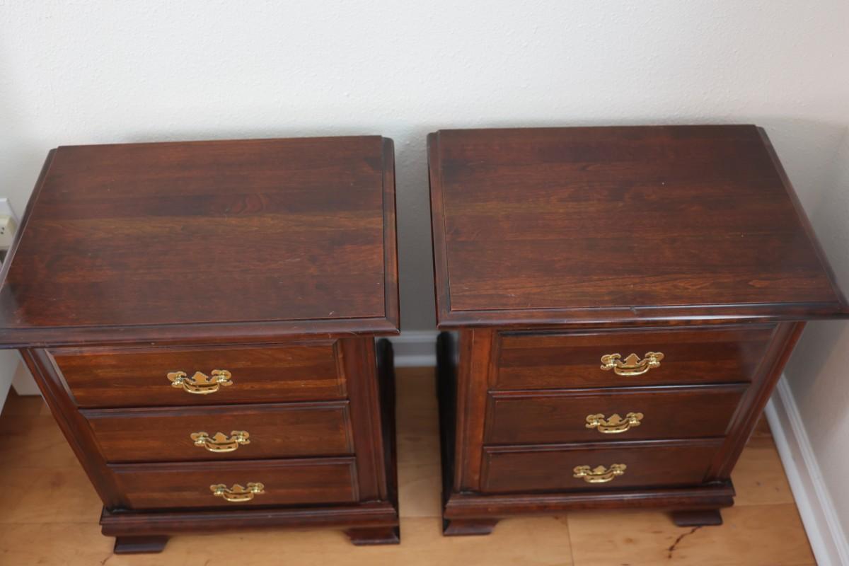 Pair of Solid Cherry Wood 3-Drawer Nightstands
