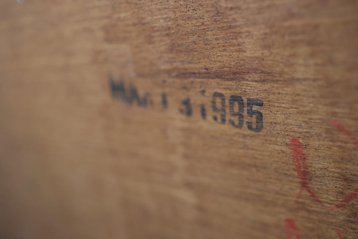 Stamped on the back May, 1995. There is a matching armoire in the auction.