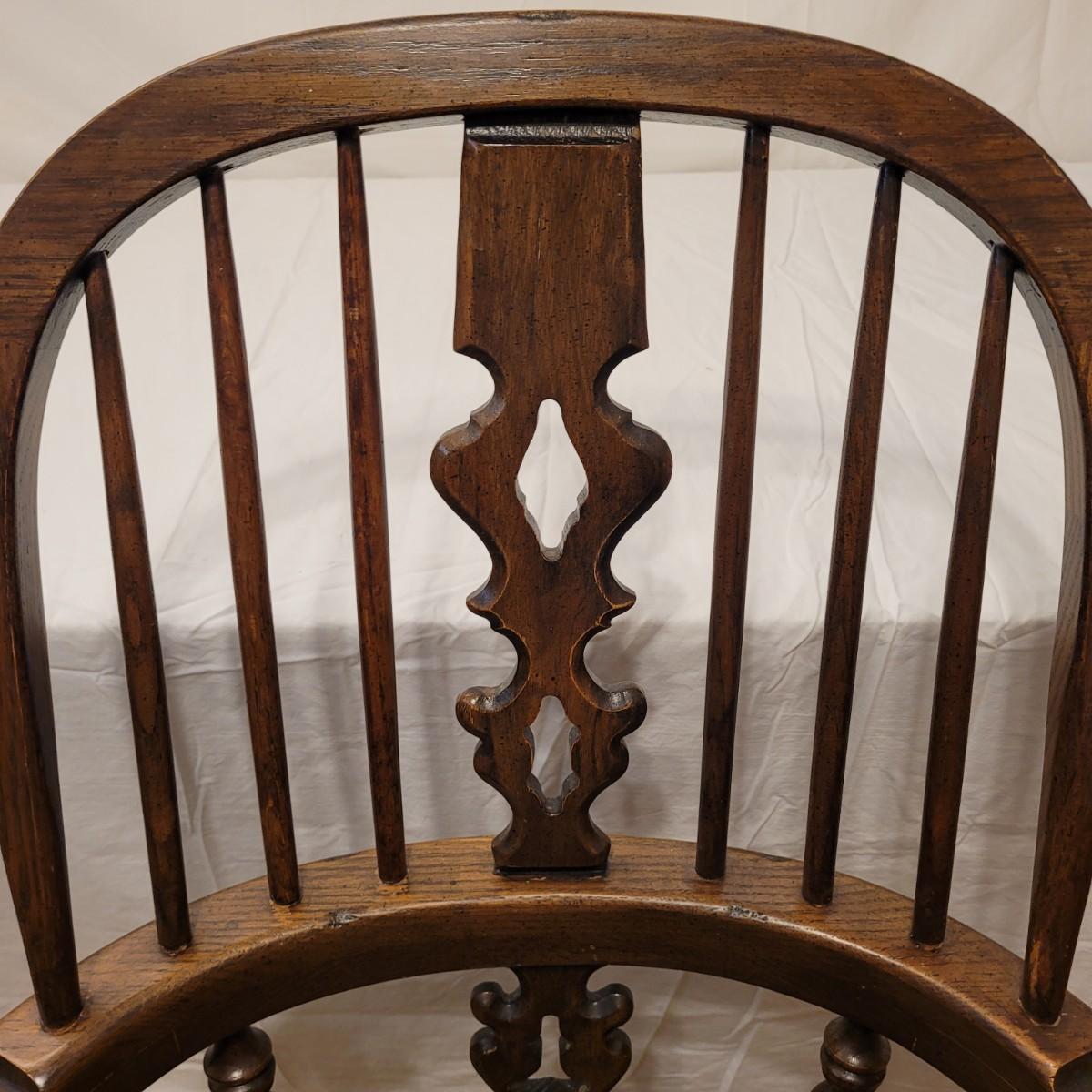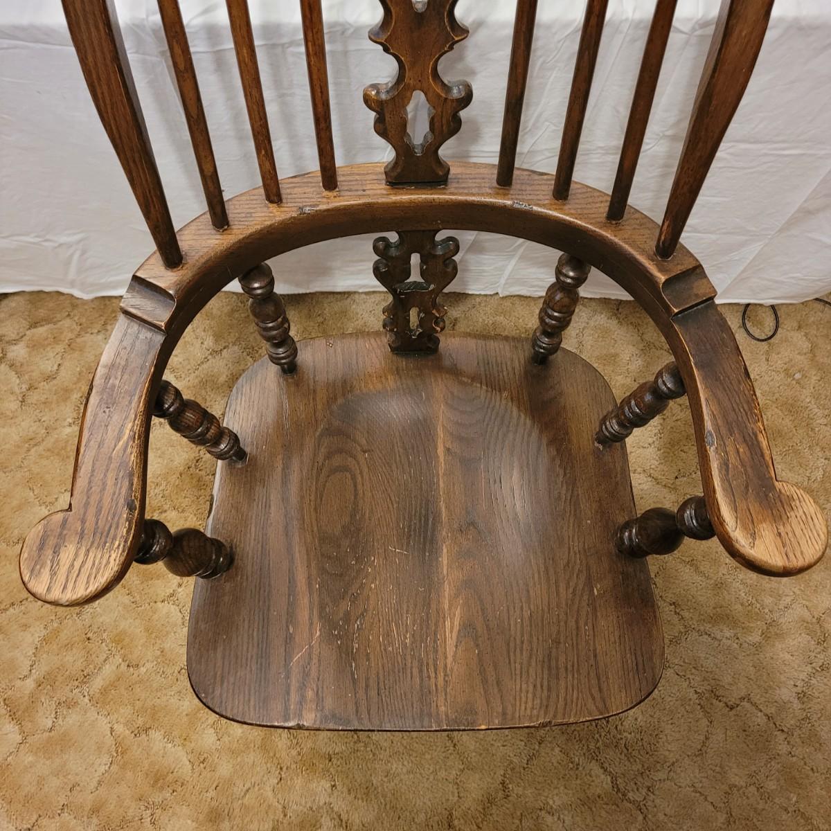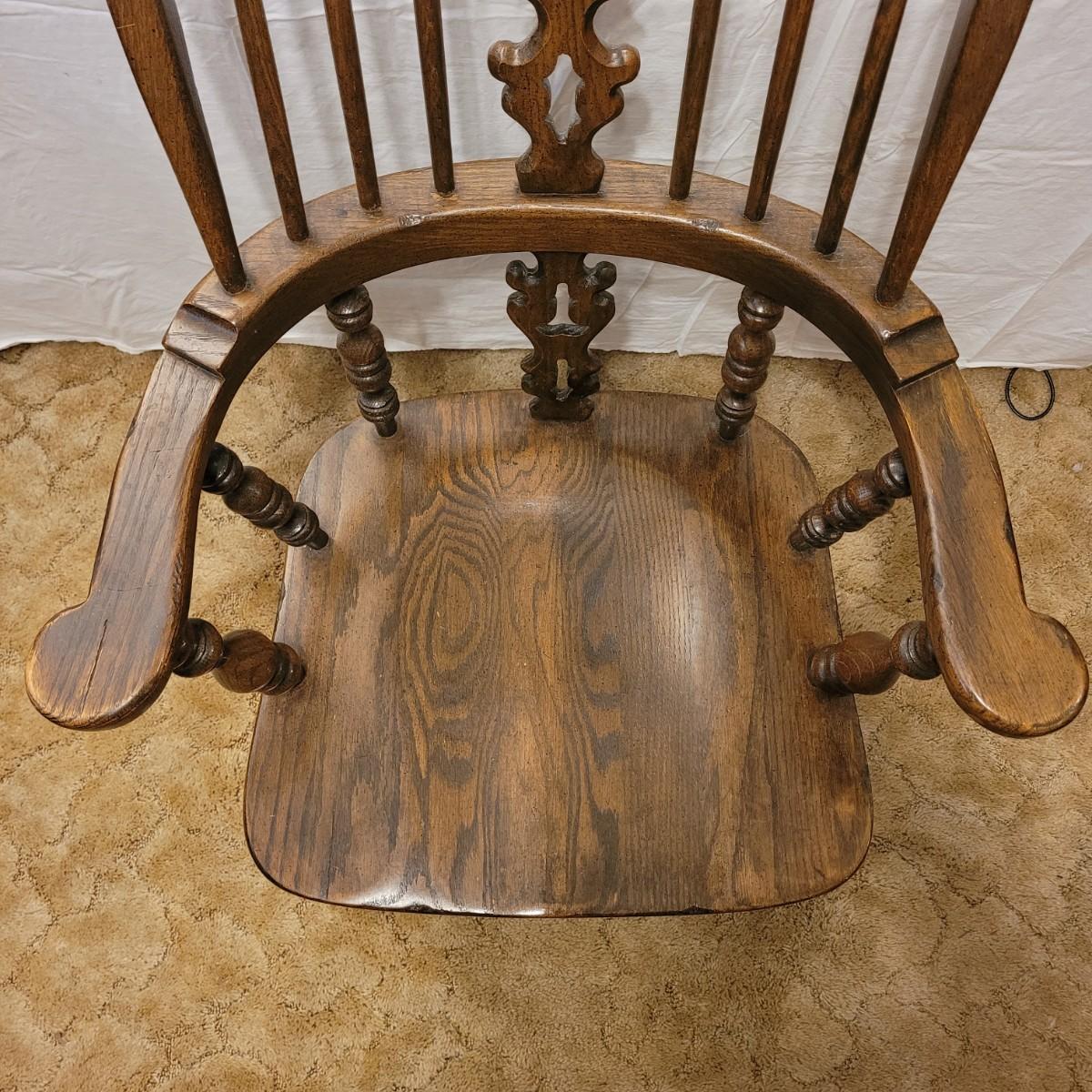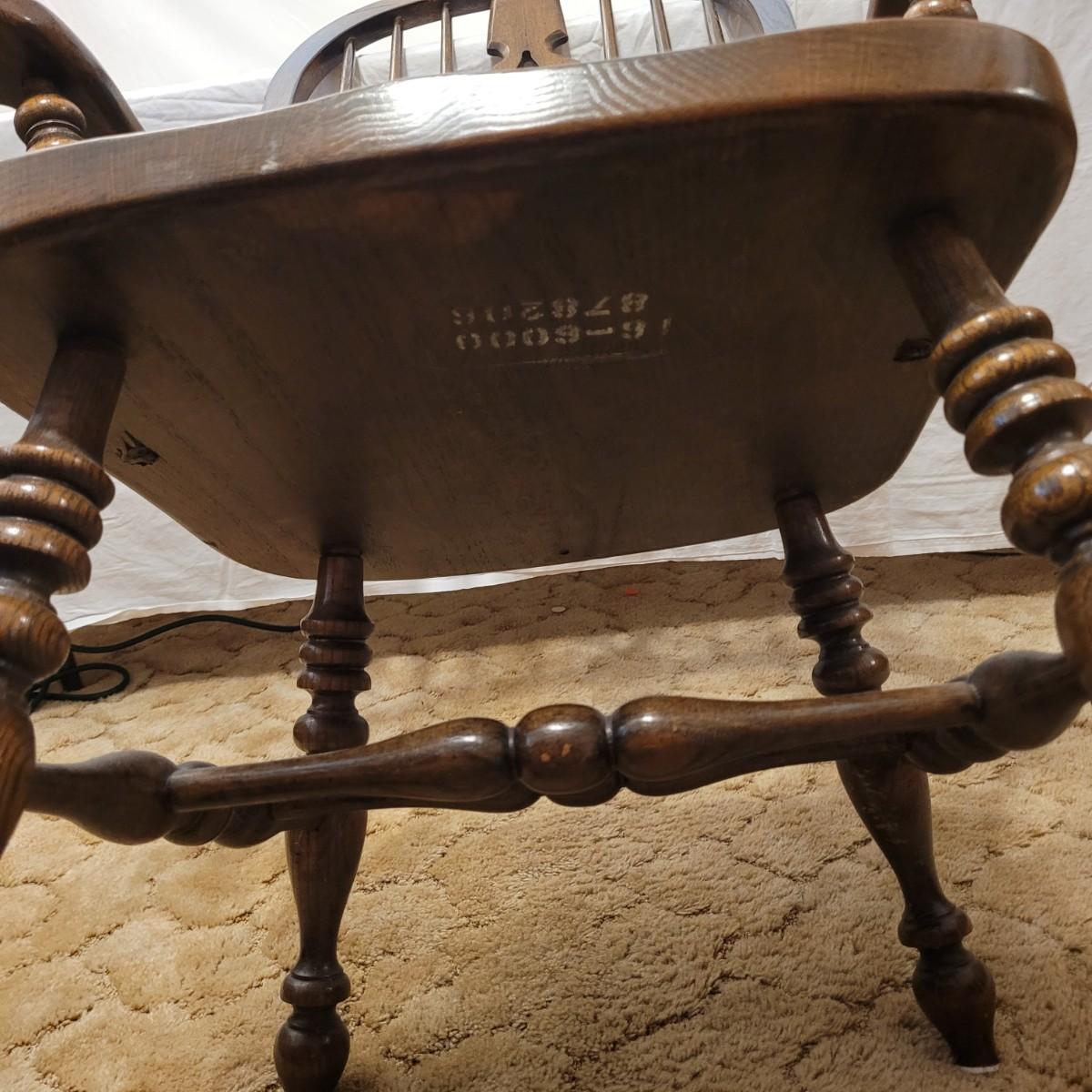 This lot includes a pair of matching solid wood armchairs. The armchairs are very solid and sturdy. They feature ornate carved wood pillars and arms. Individually, the chairs measure 27" x 21" x 42"H with a seat height of 17".