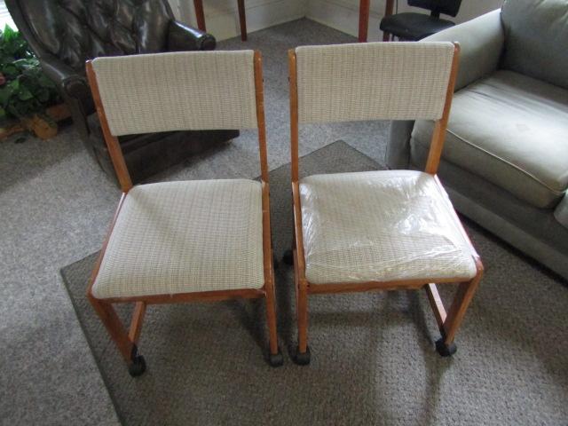 Pair of Solid Wood Frame Office Chairs with Castors (O)