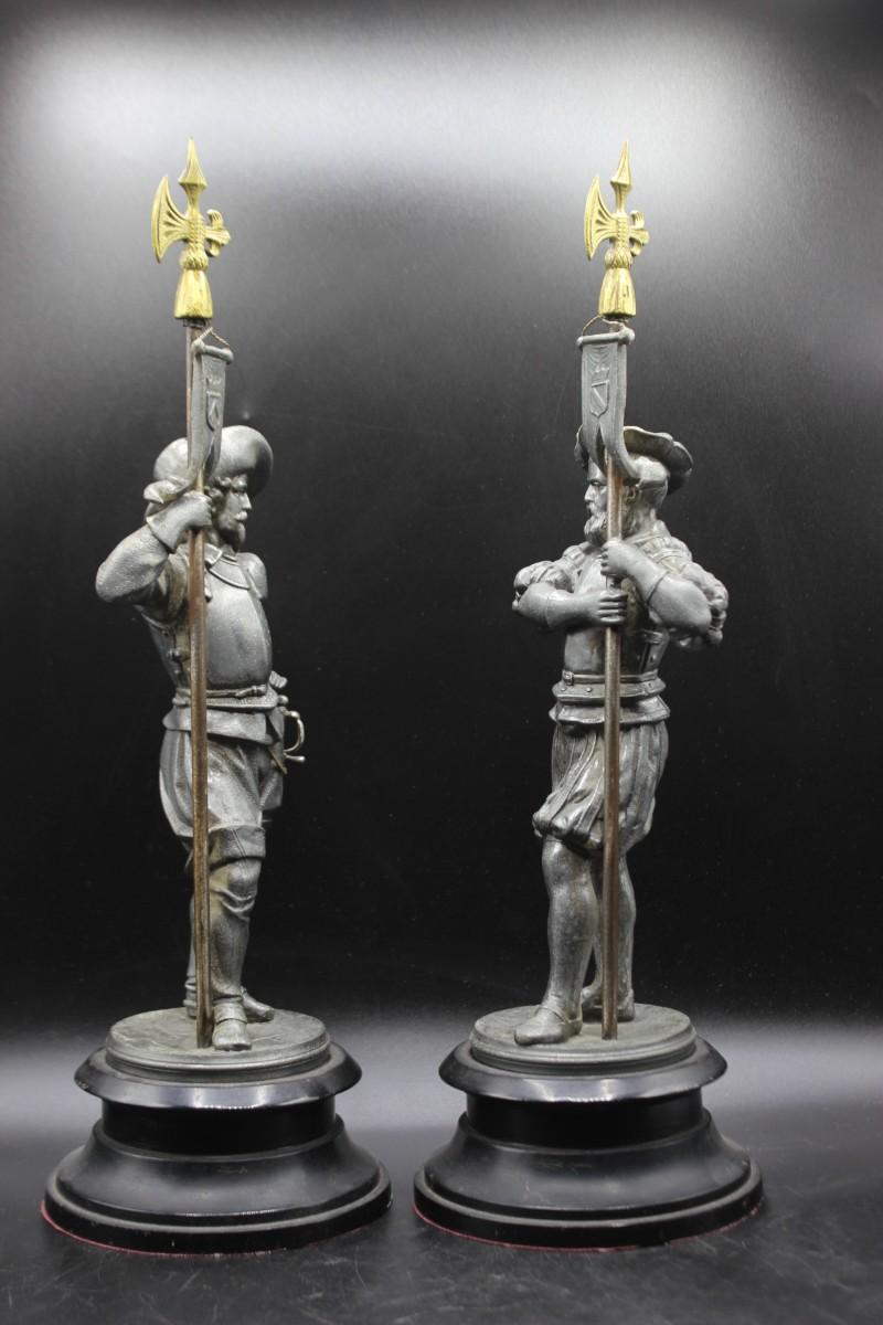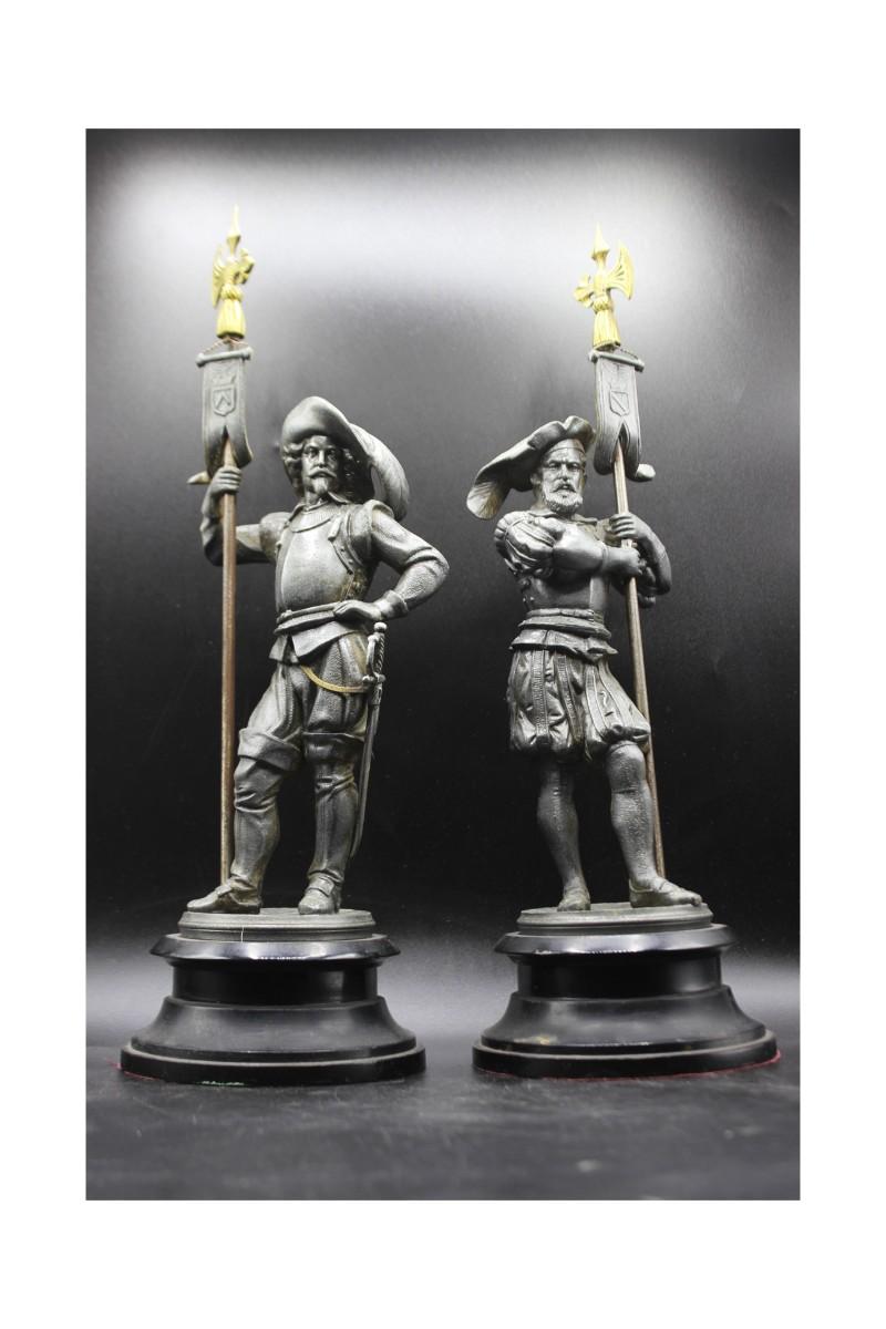 Pair of Spelter Metal French Musketeer Cavalier Statues Figures