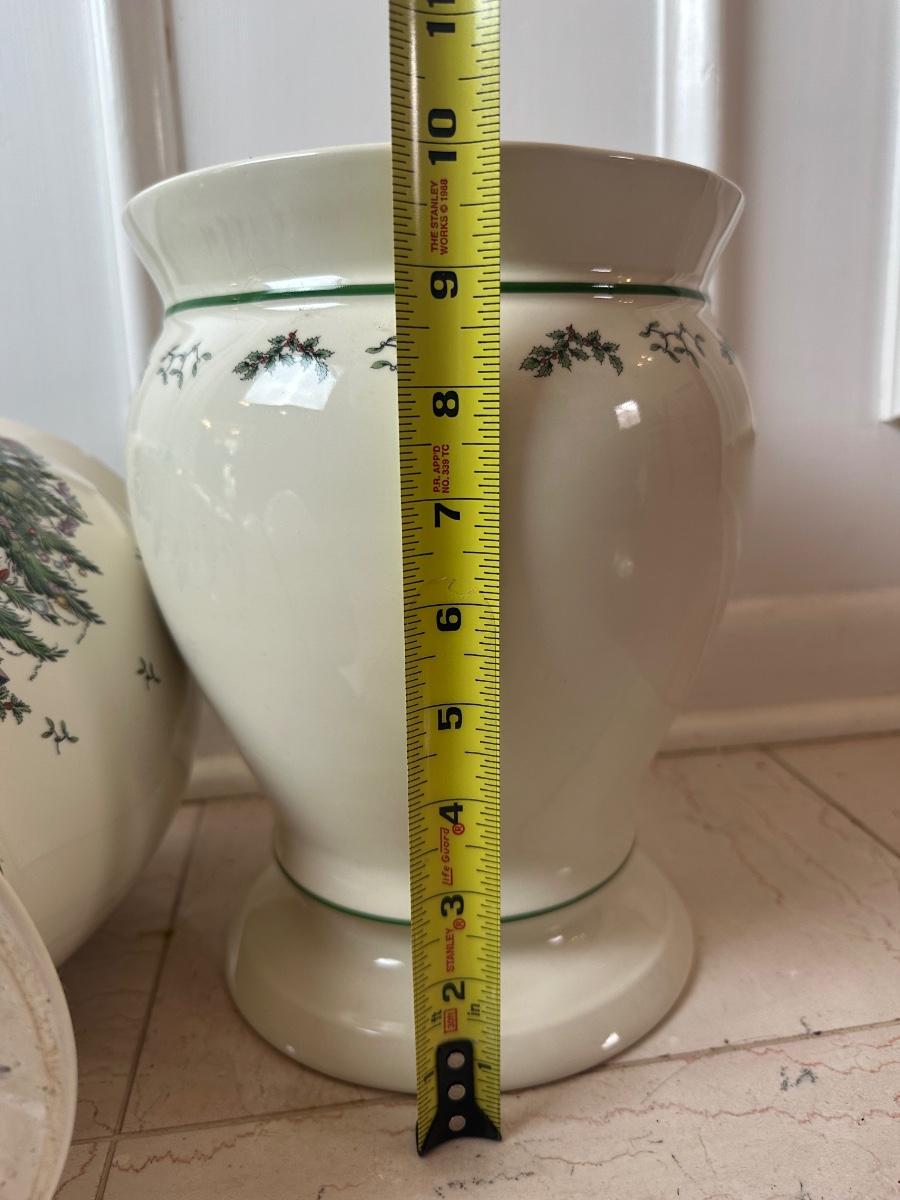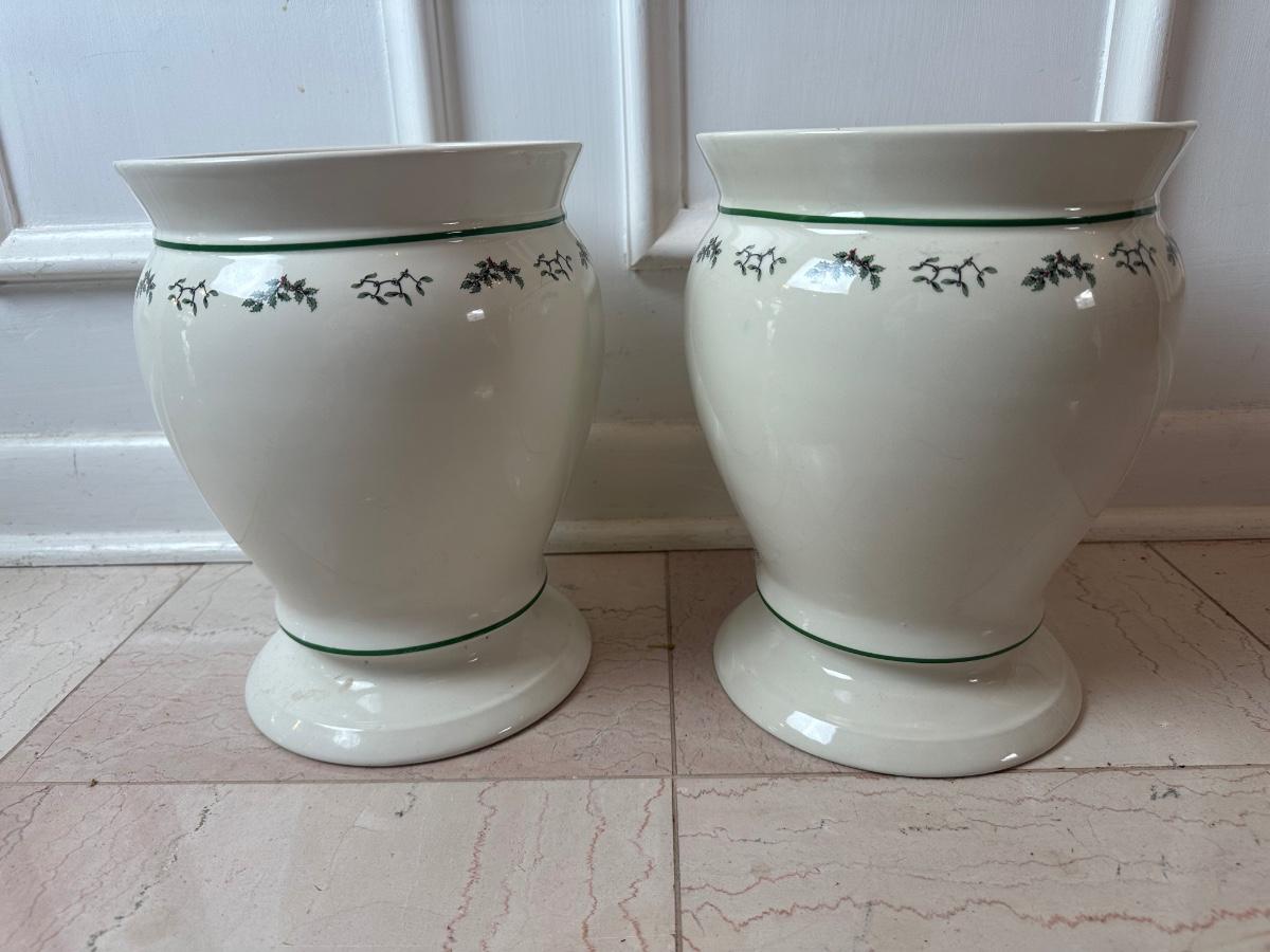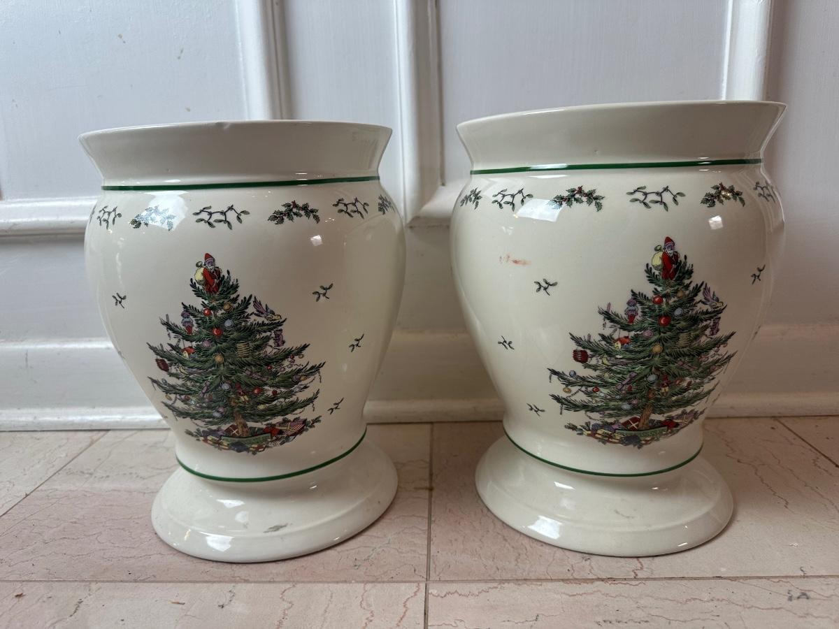 Pair of Spode Christmas Tree ceramic vases with pedestal bases. Marked on base