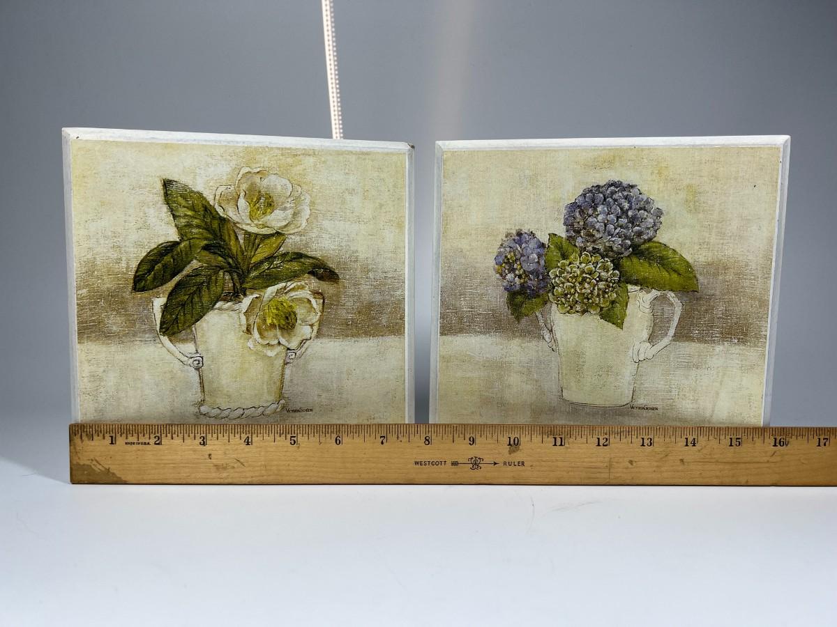 Pair of Springtime Accents Hanging Wood Home Decor Panels, there is some light wear, but there is no significant damage and is in overall good displayable condition. Check pictures for more details and for sizing.