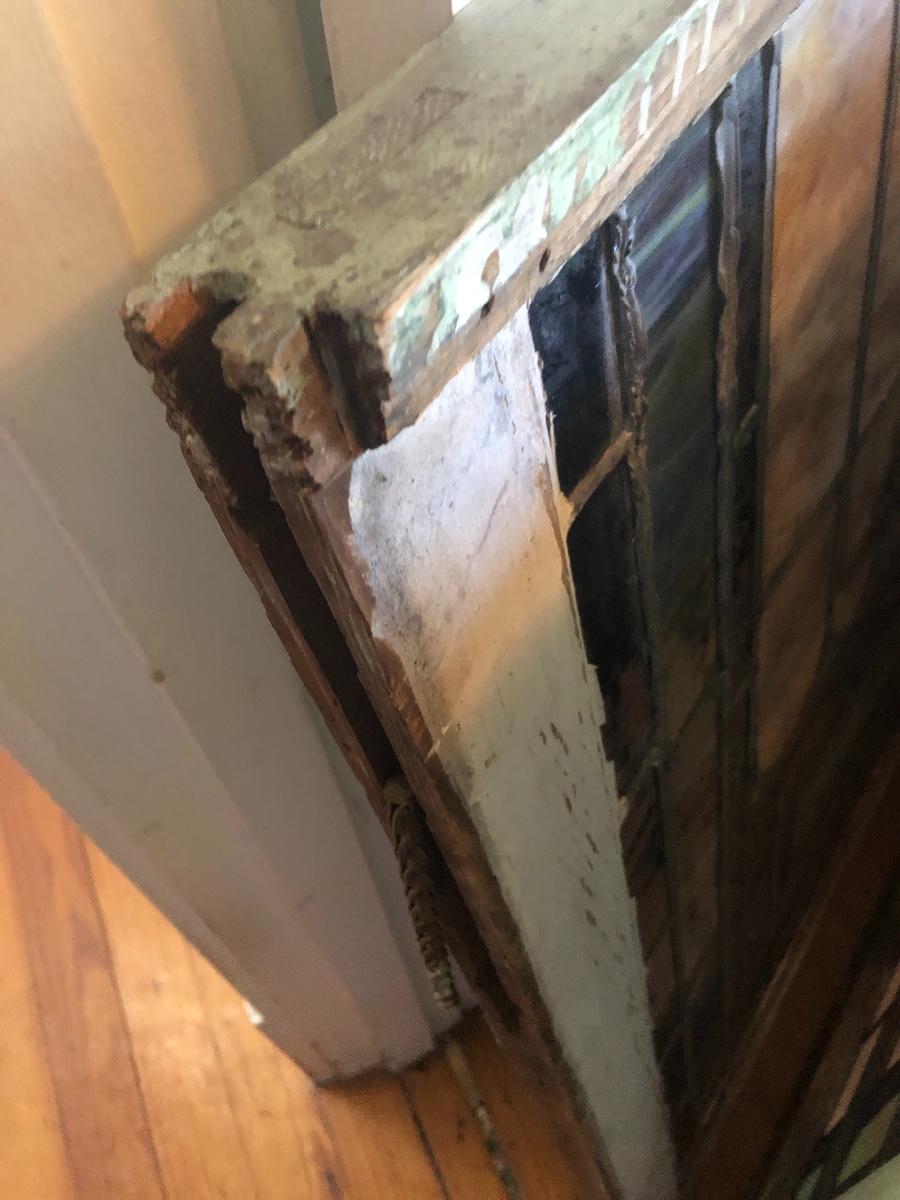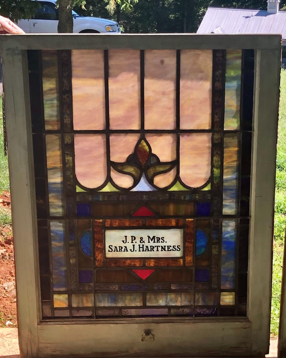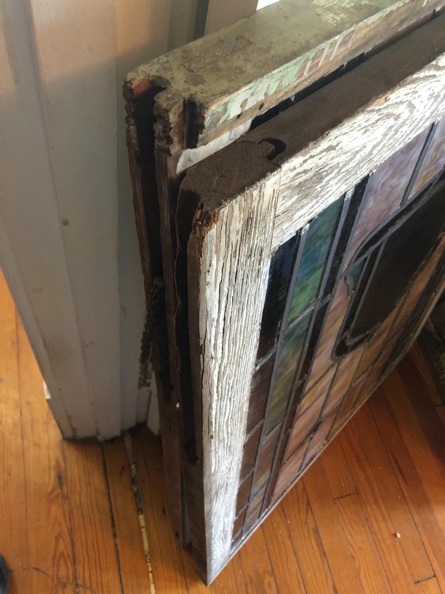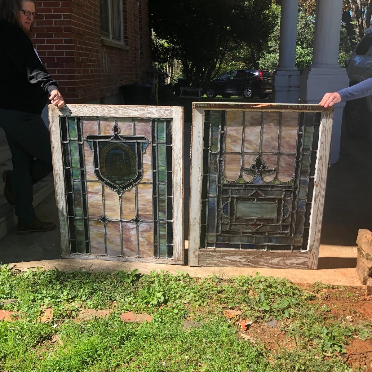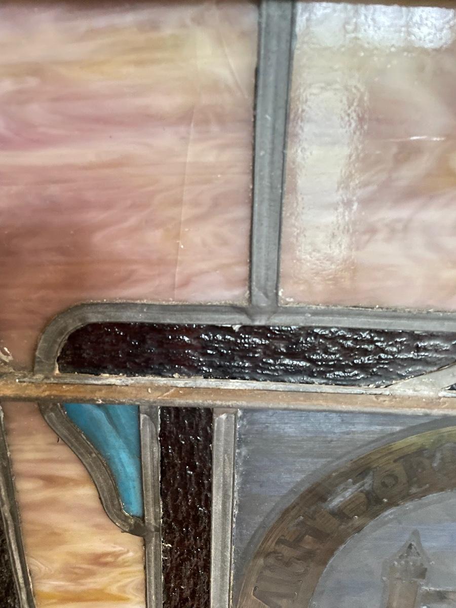 Beautiful stained glass windows that we are told are from a church. This is lot 1 of 10. One window would have been the bottom the other the top but these didn’t necessarily go together originally. Some glazing is missing on the backs and the window hardware is missing on one window. The Mighty Fortress piece has a small 4” crack that runs vertically in one of the top sections, see images.