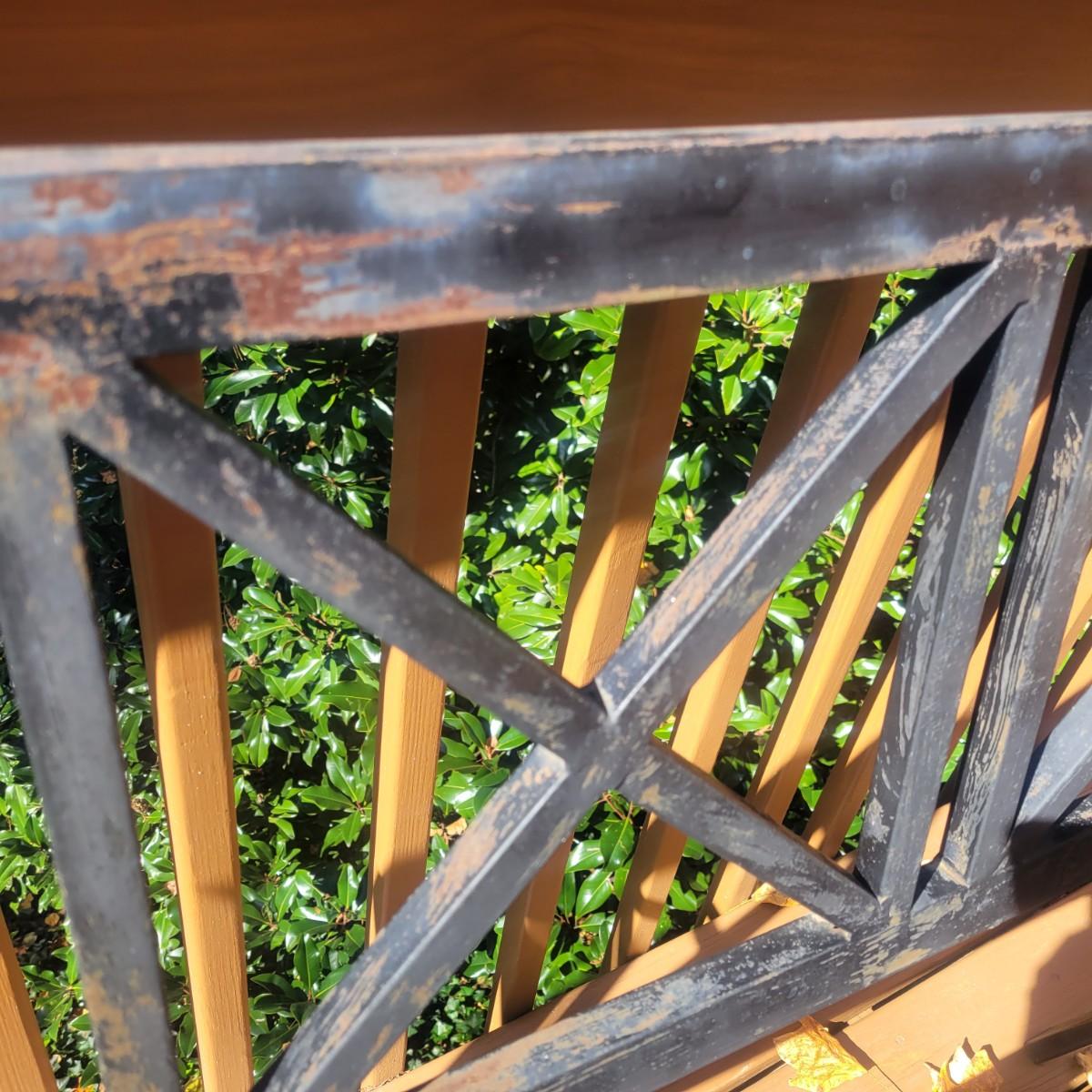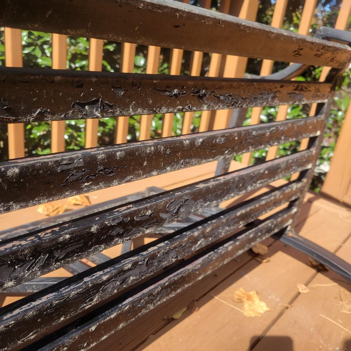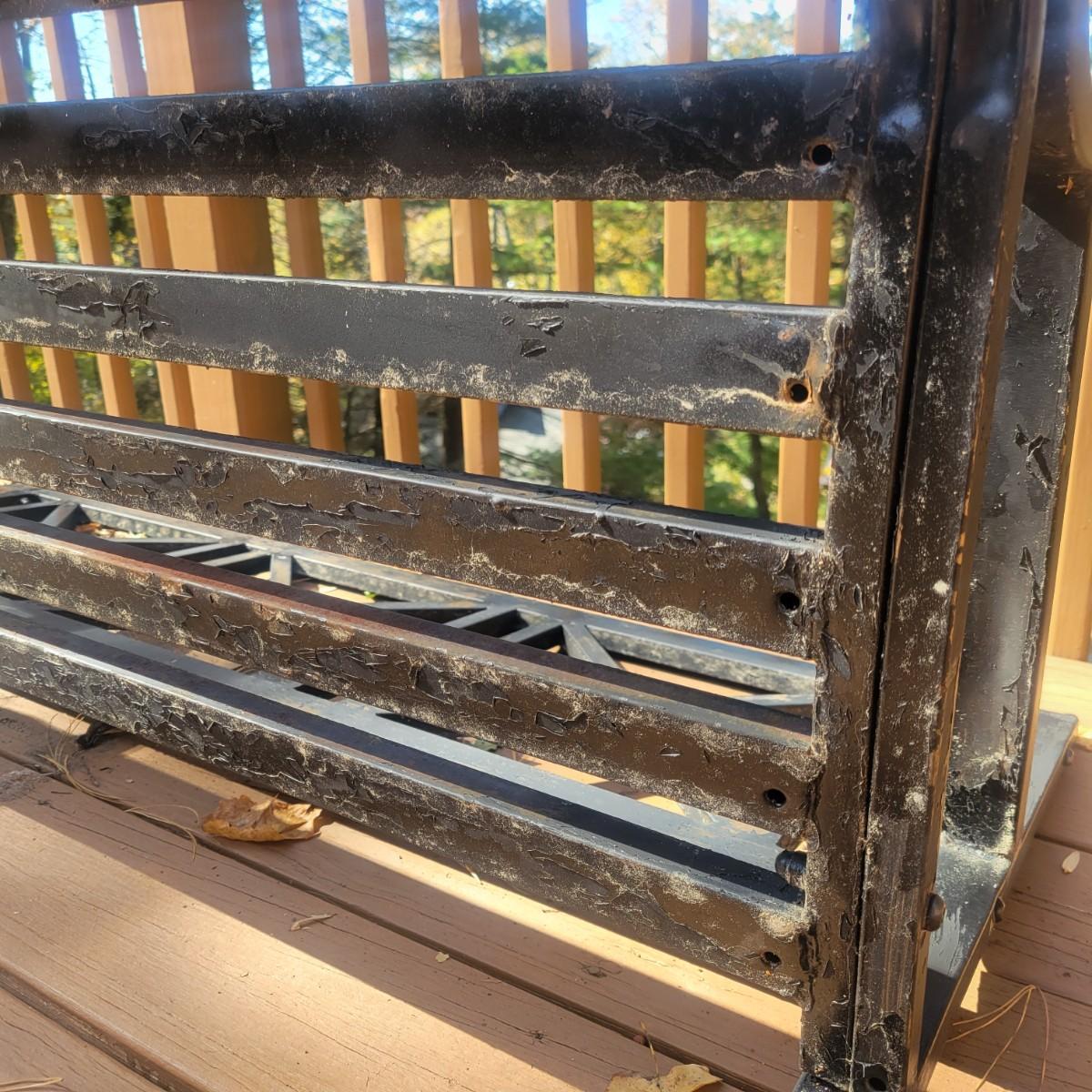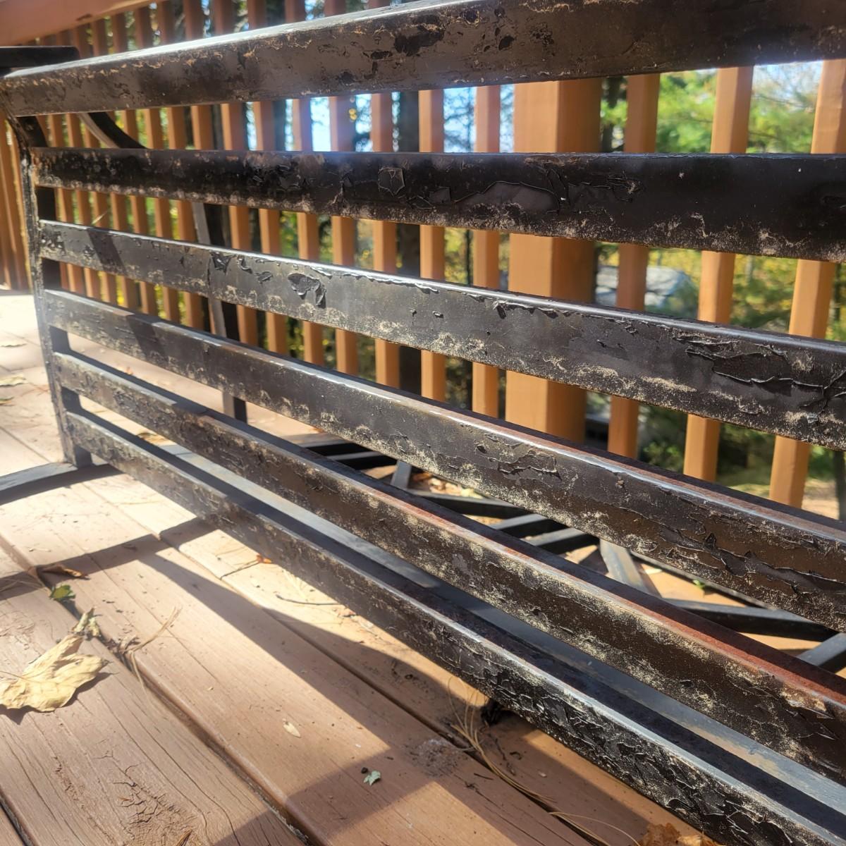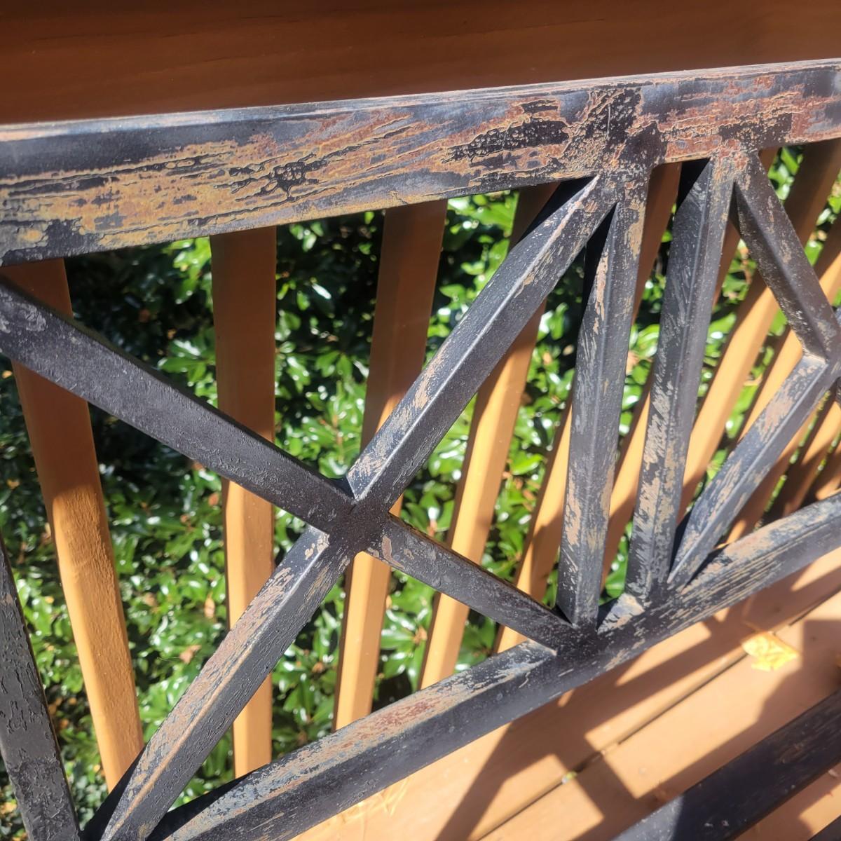A pair of painted metal outdoor benches in good condition, but there is some rusting and the black paint is peeling in many areas. These benches are made of tube steel and are structurally sound. They could easily be sanded sealed and painted to bring them many years of life. Each bench measures approximately 50.5" x 21" x 34" with a seat height of 17". Winning bidder will need to bring assistance as these items are bulky. Local pickup only