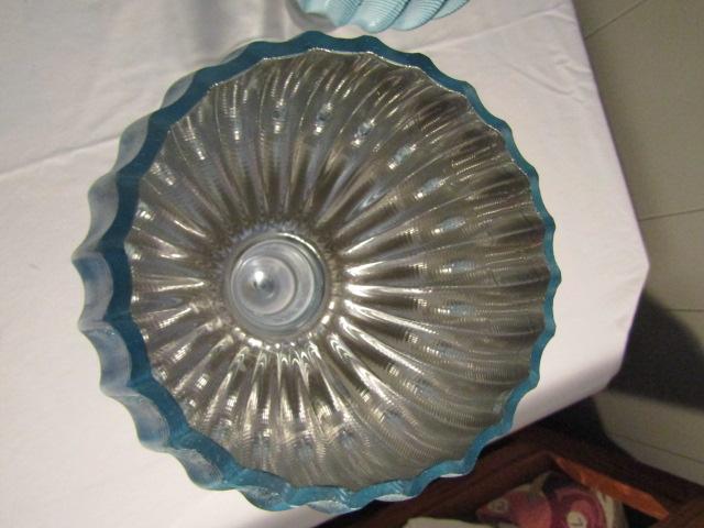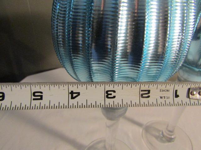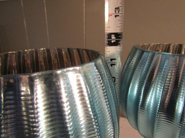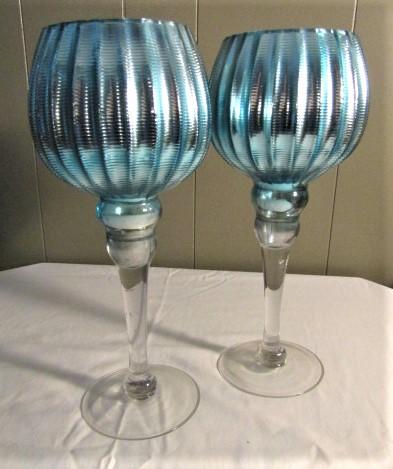 Pair of Stemmed Ribbed Glass Mirror Finish Candle Holders 12"