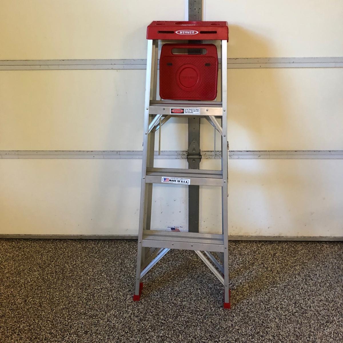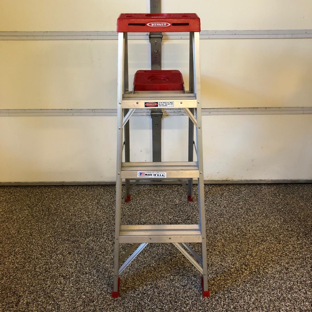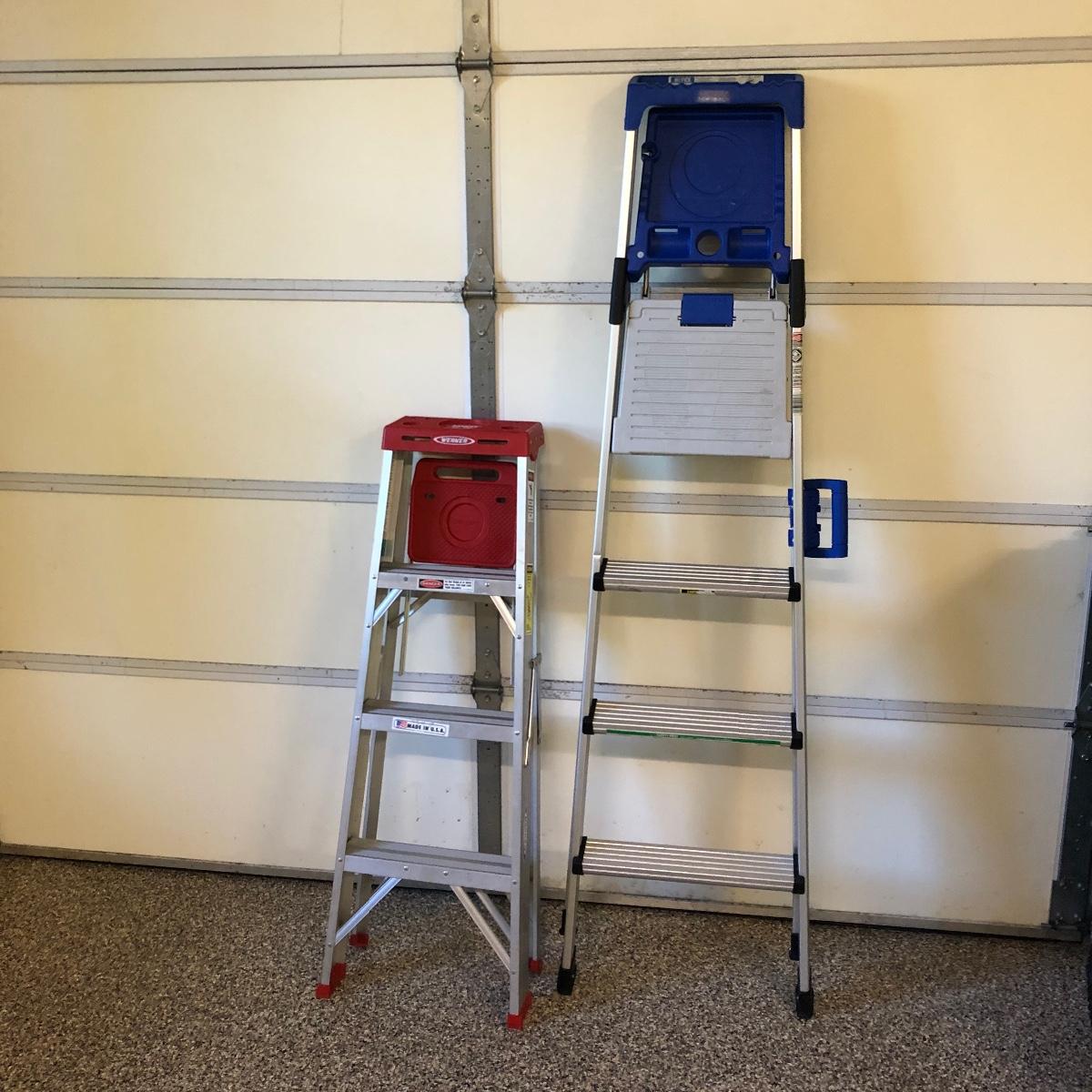 Lot includes one Cosco six foot aluminum stepladder and a four foot Werner aluminum step ladder.