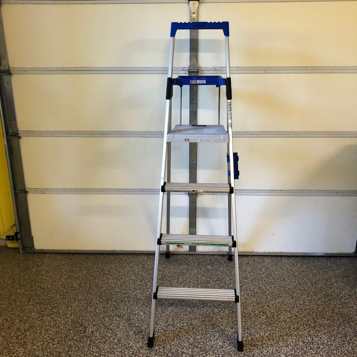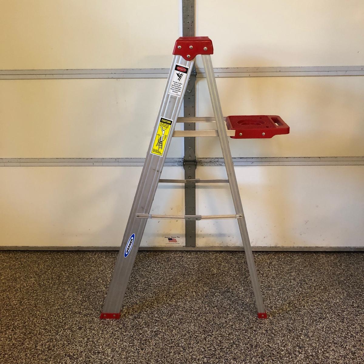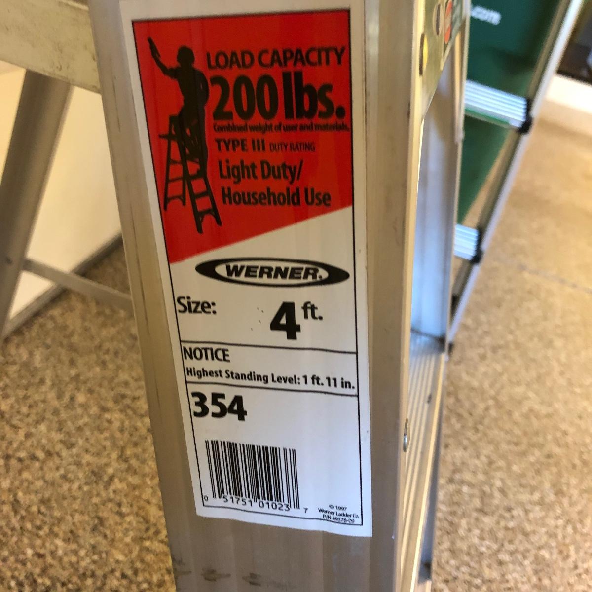 Lot includes one Cosco six foot aluminum stepladder and a four foot Werner aluminum step ladder.