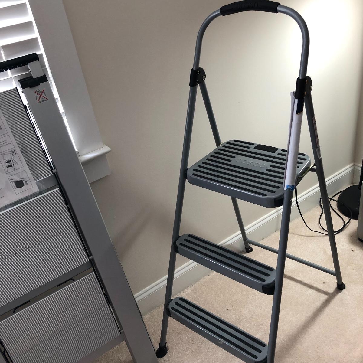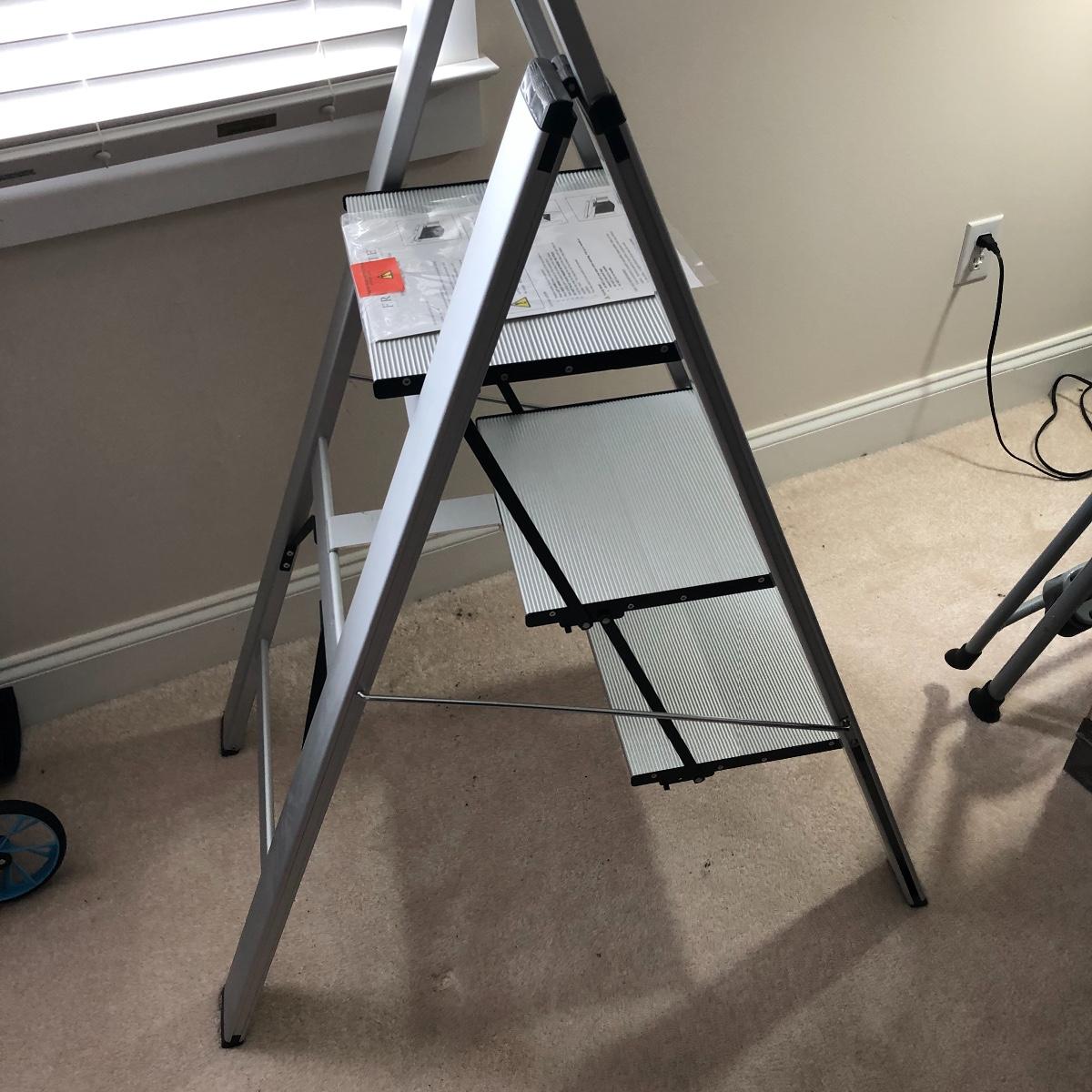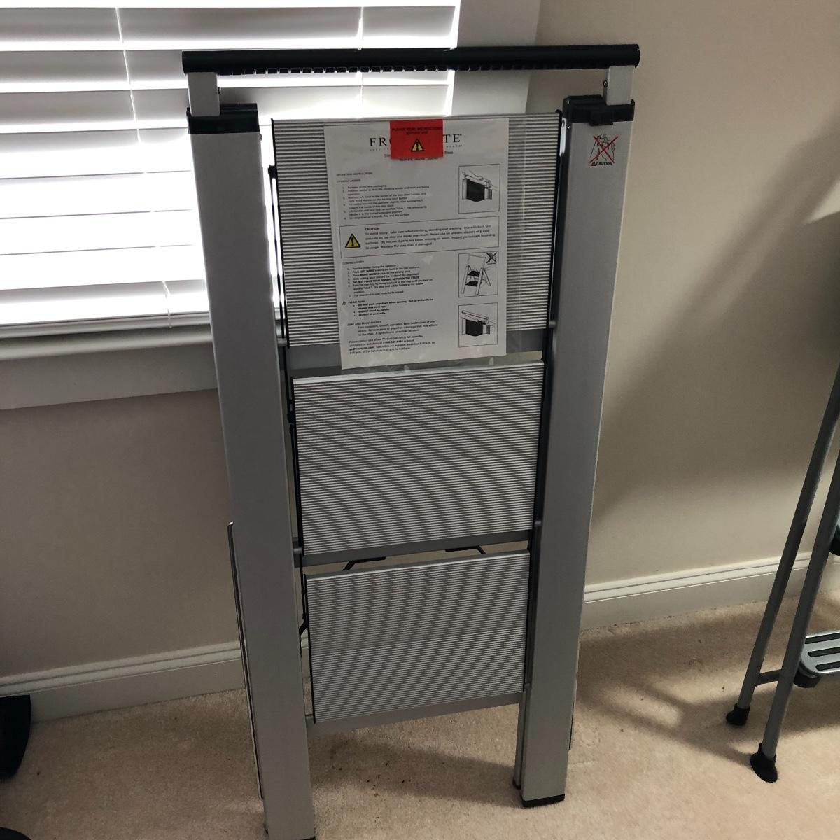 Lot includes Cisco metal stepladder and a Frontgate aluminum stepladder. Largest stepladder measures 20” x 33” x 56” when open. Local pick up only.