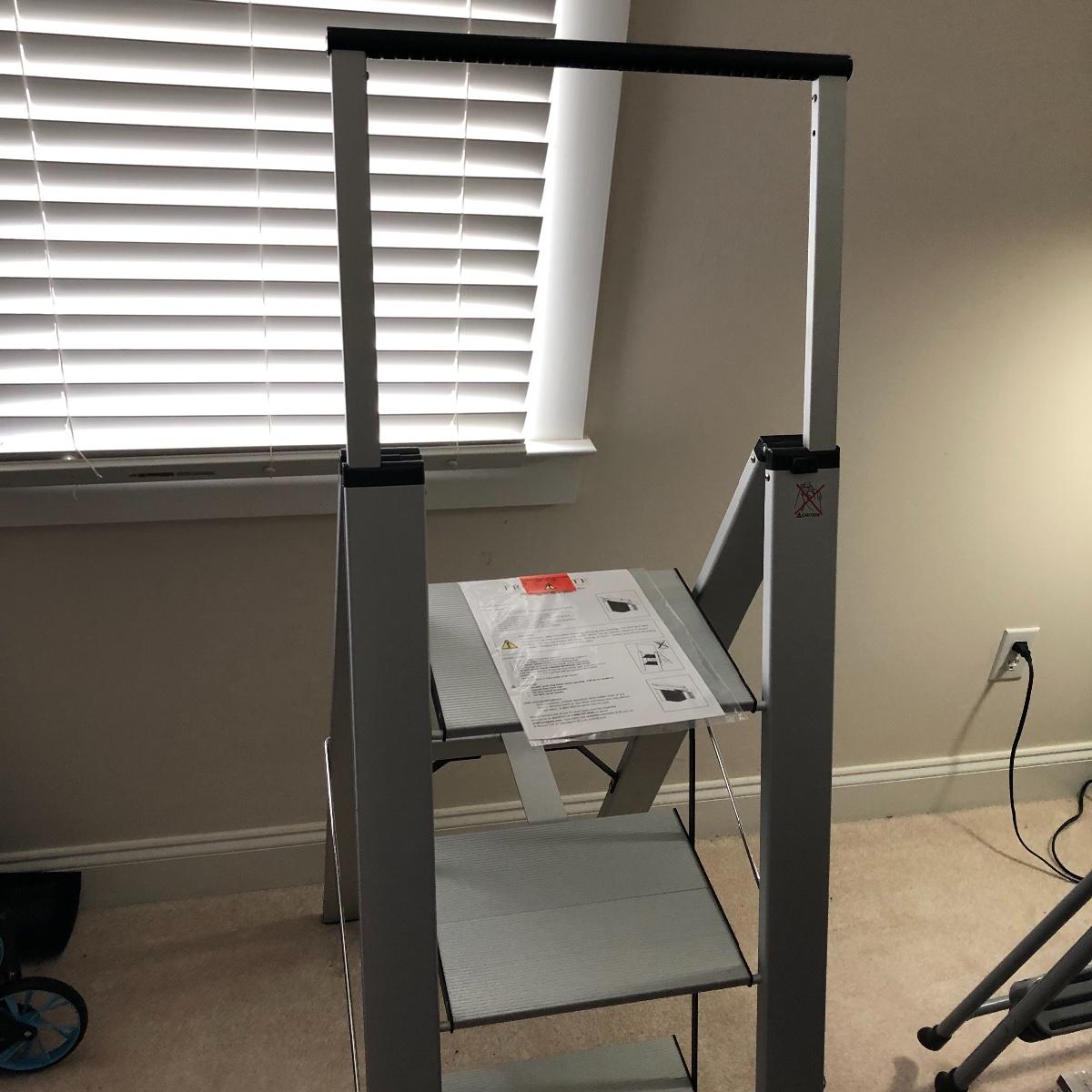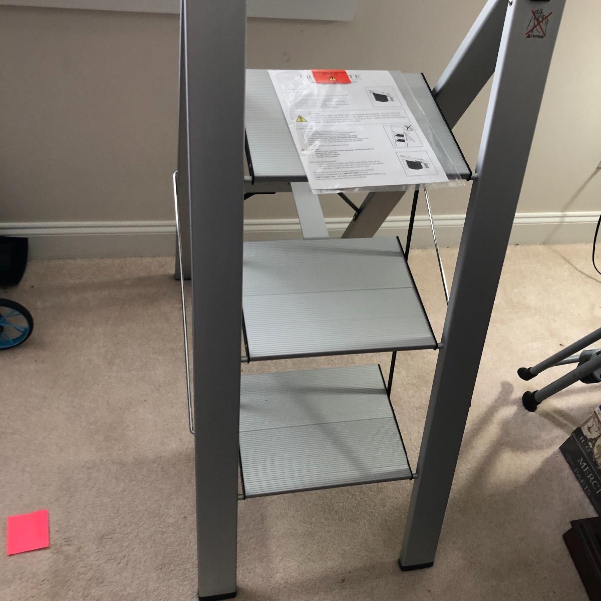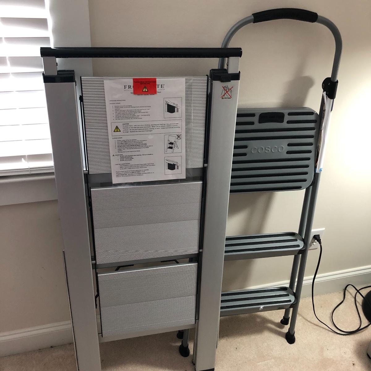 Lot includes Cisco metal stepladder and a Frontgate aluminum stepladder. Largest stepladder measures 20” x 33” x 56” when open. Local pick up only.