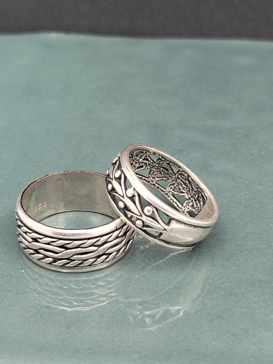 Pair of Sterling Band Rings (1) Spinner 10.8gr