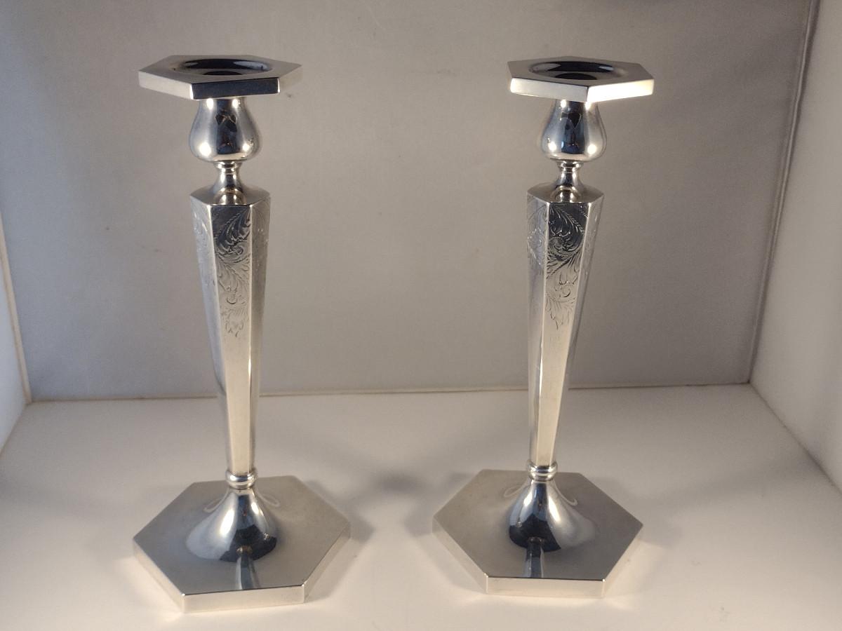 Pair of Sterling Silver Candle Stick Holders- Approx 12 1/4" Tall and Total Weight 632 Grams