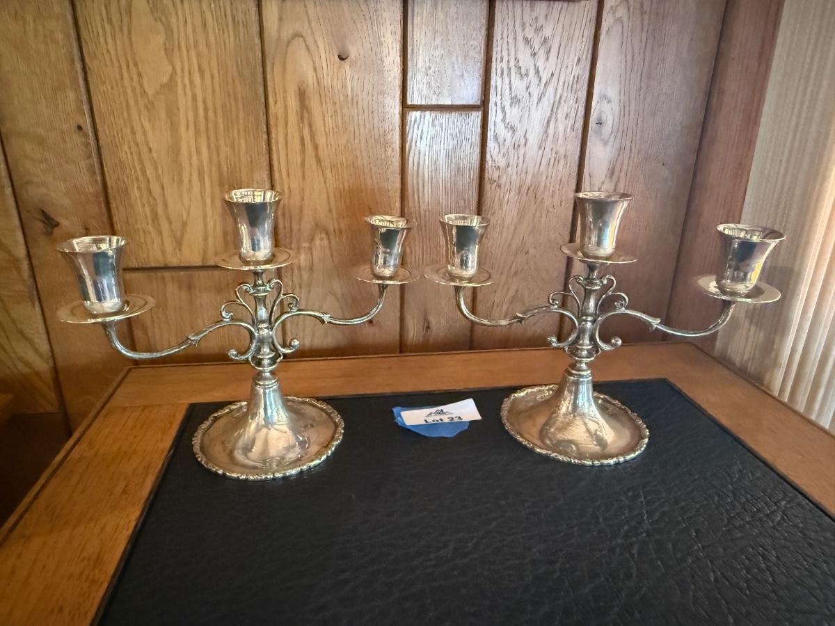 Pair of Sterling Silver Candle Holders - Not Weighted 1,136 Grams