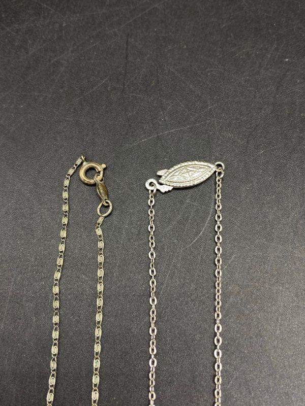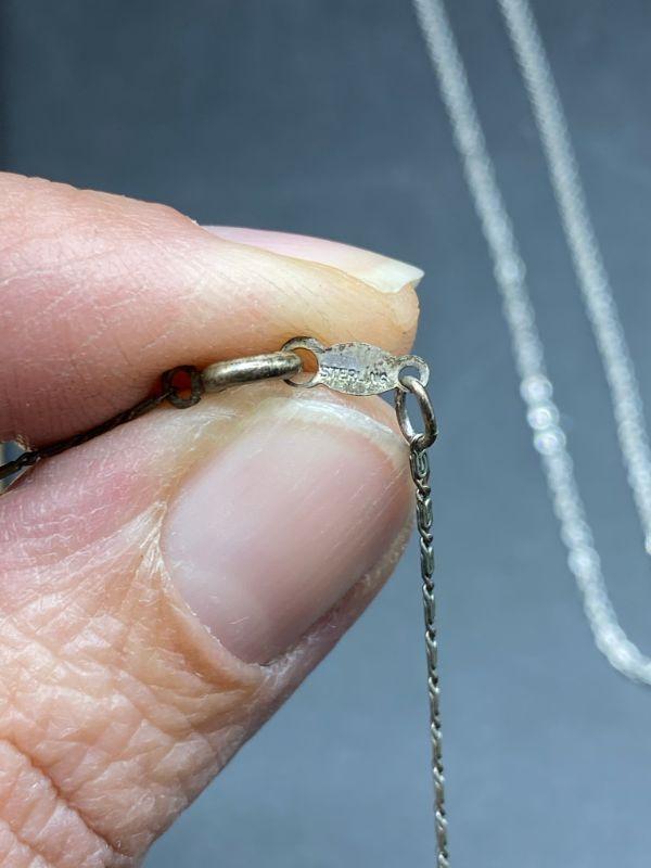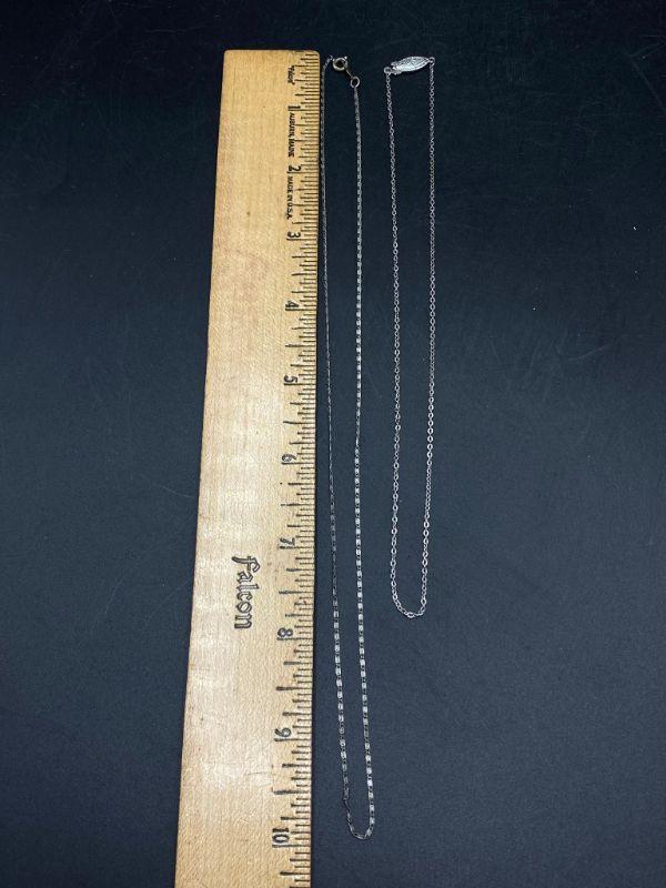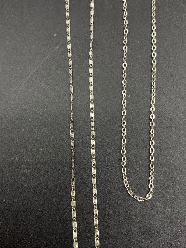 Pair of silver necklaces. Different link styles and lengths. The longer is almost 10", the shorter is about 7.5". Both are marked.