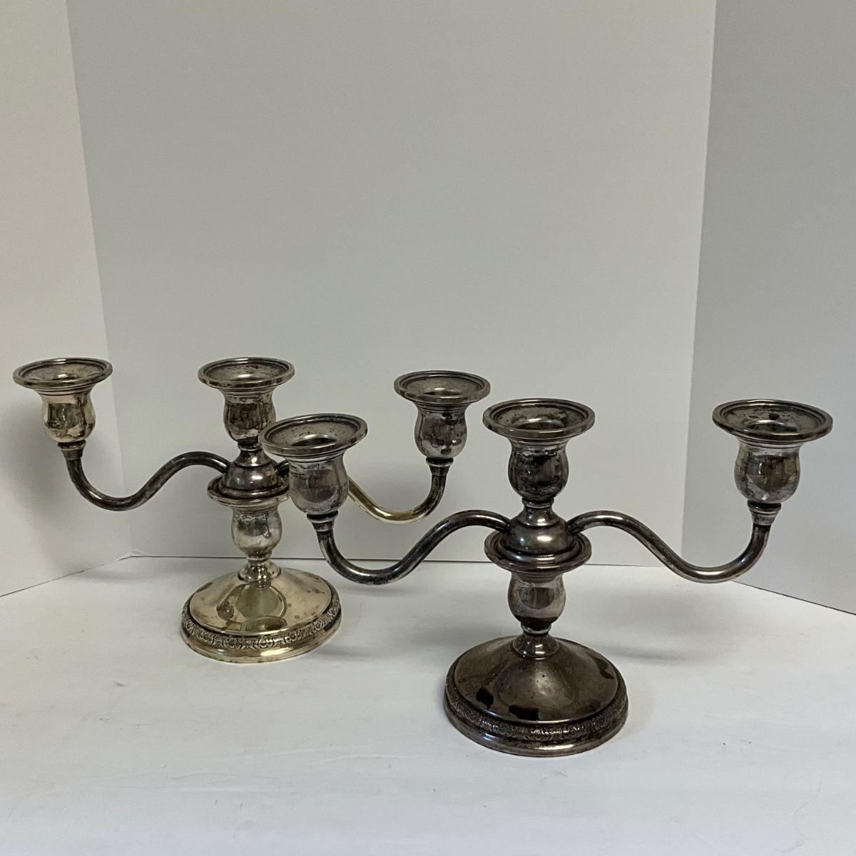 Pair of Sterling Silver Triple Candelabra, Prelude International as pictured