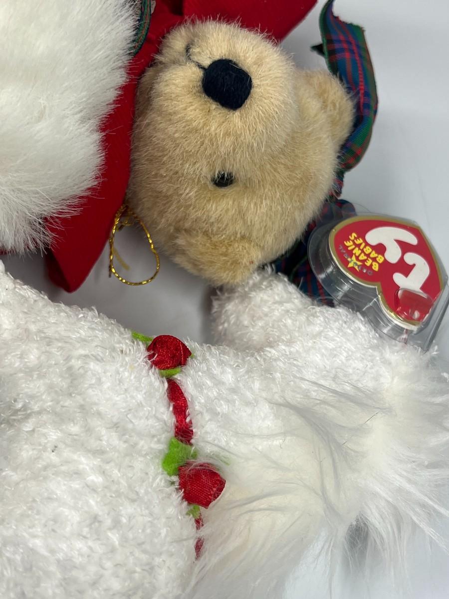 Pair of Stuffed Animal Plushies Ice Skating Christmas Bear and Holly Horse Beanie Baby