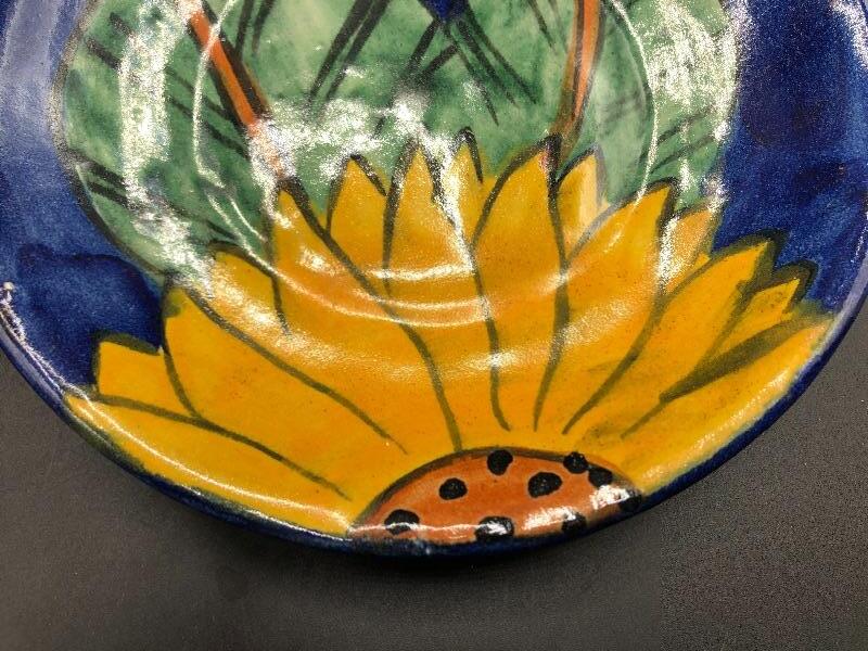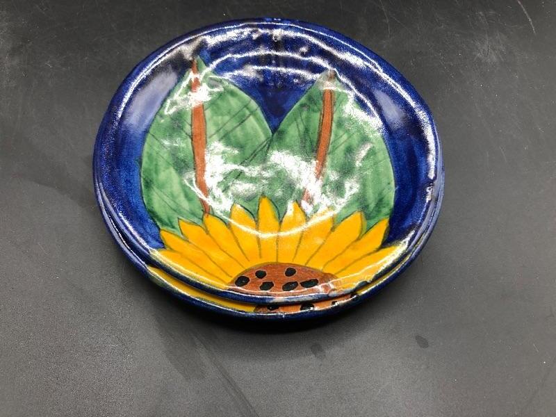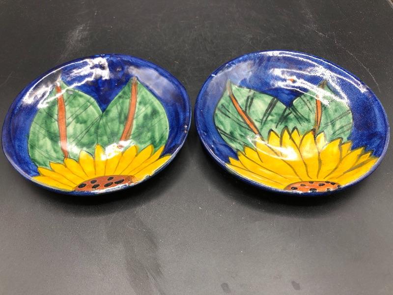 Pair of sunflower painted plates. Dessert size at about 6". Good condition.