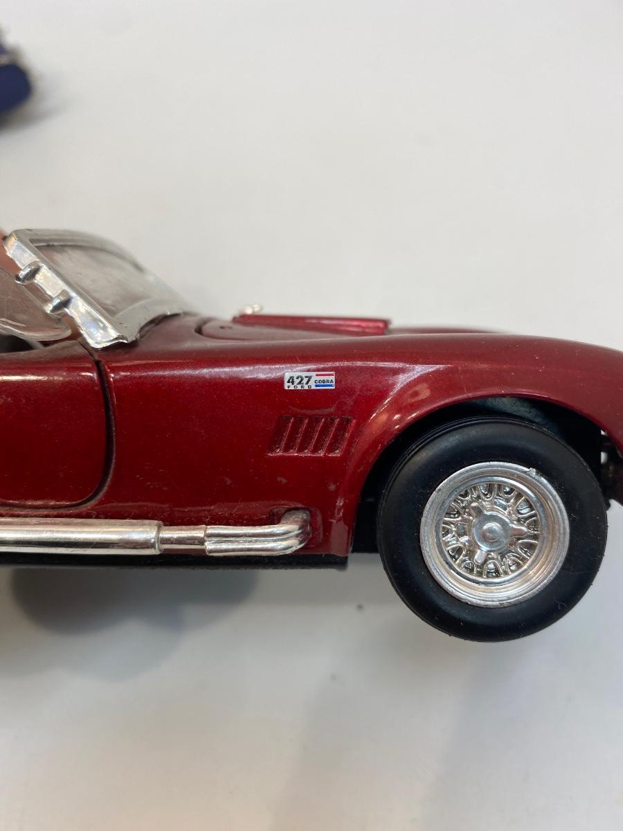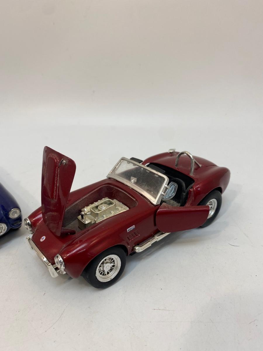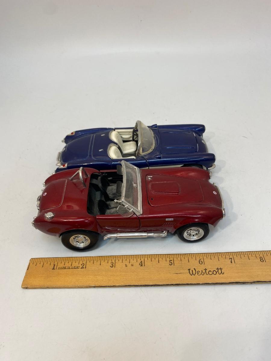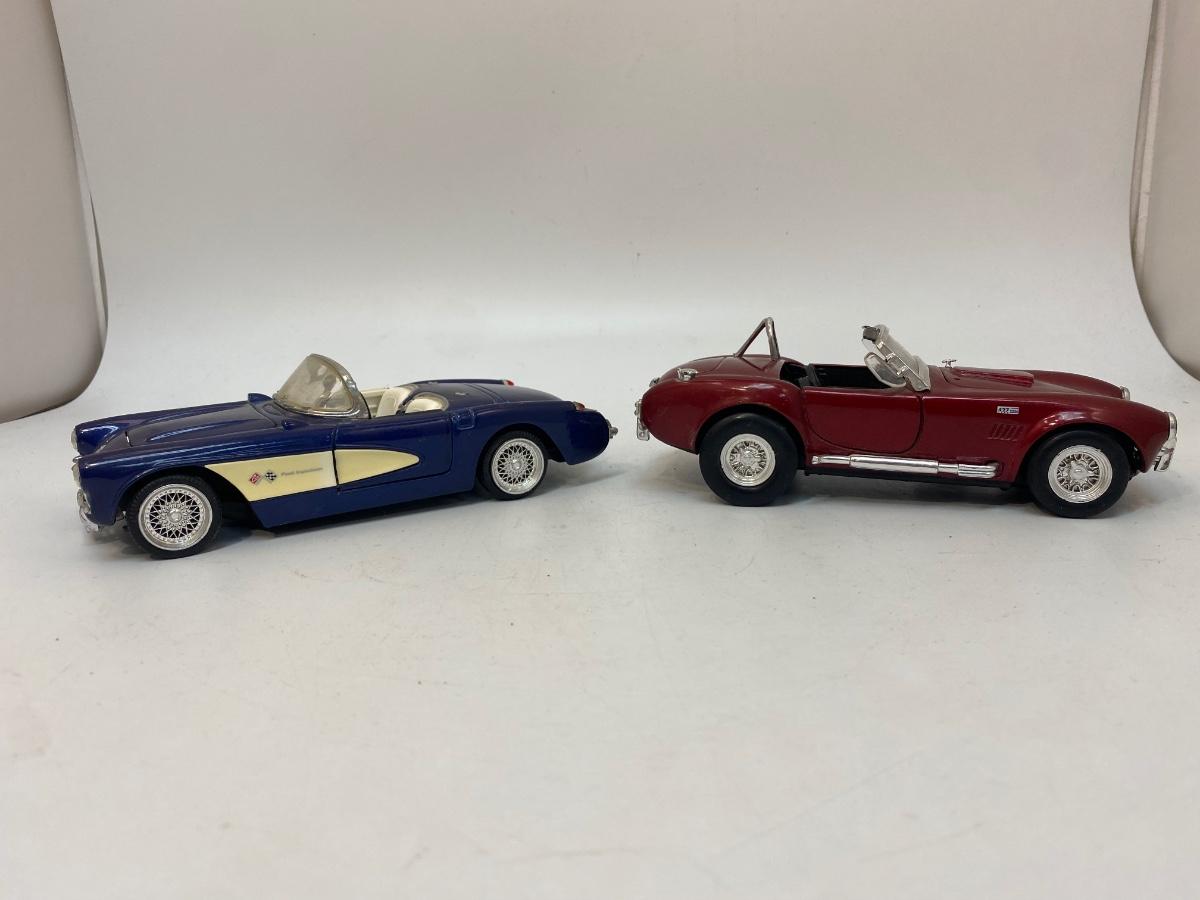 Pair of Sunny Side Collectible Diecast Cars - 1957 Corvette and Shelby Cobra 427. In displayed condition, may have been played with. About 7" size.