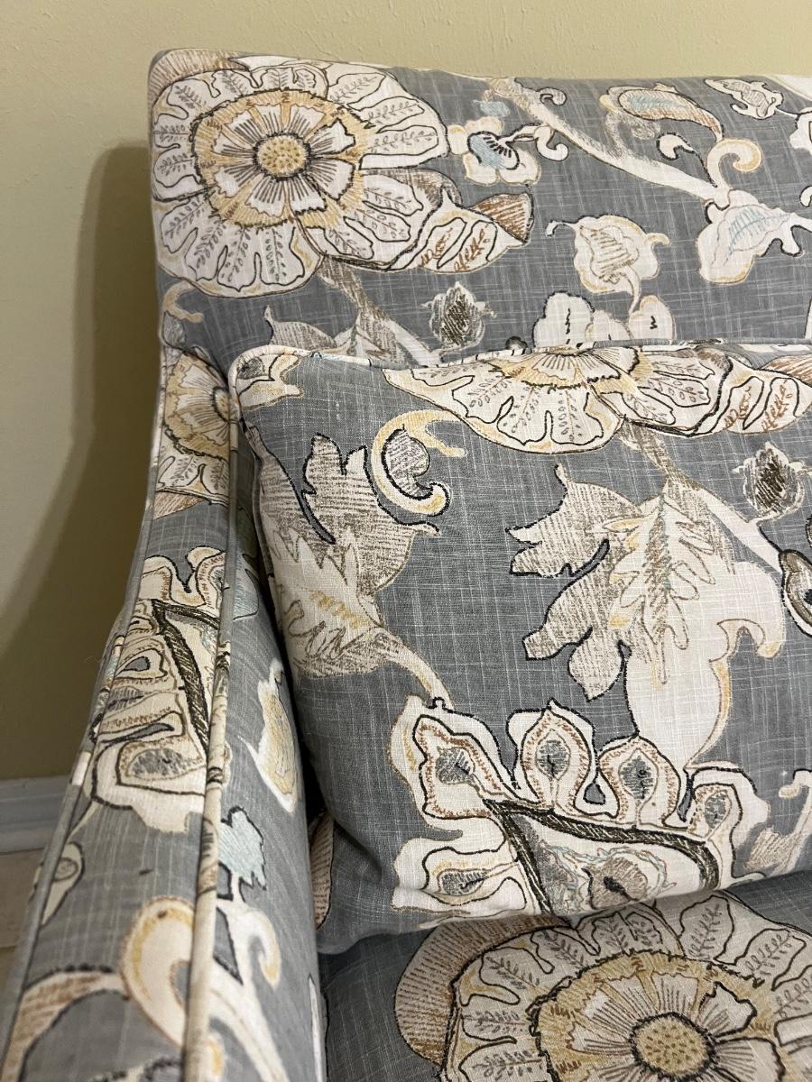 Pair of accent chairs that swivel and rock! 34 inches tall, 39 inches deep and 30 inches wide. Floor to see measures 17 inches.