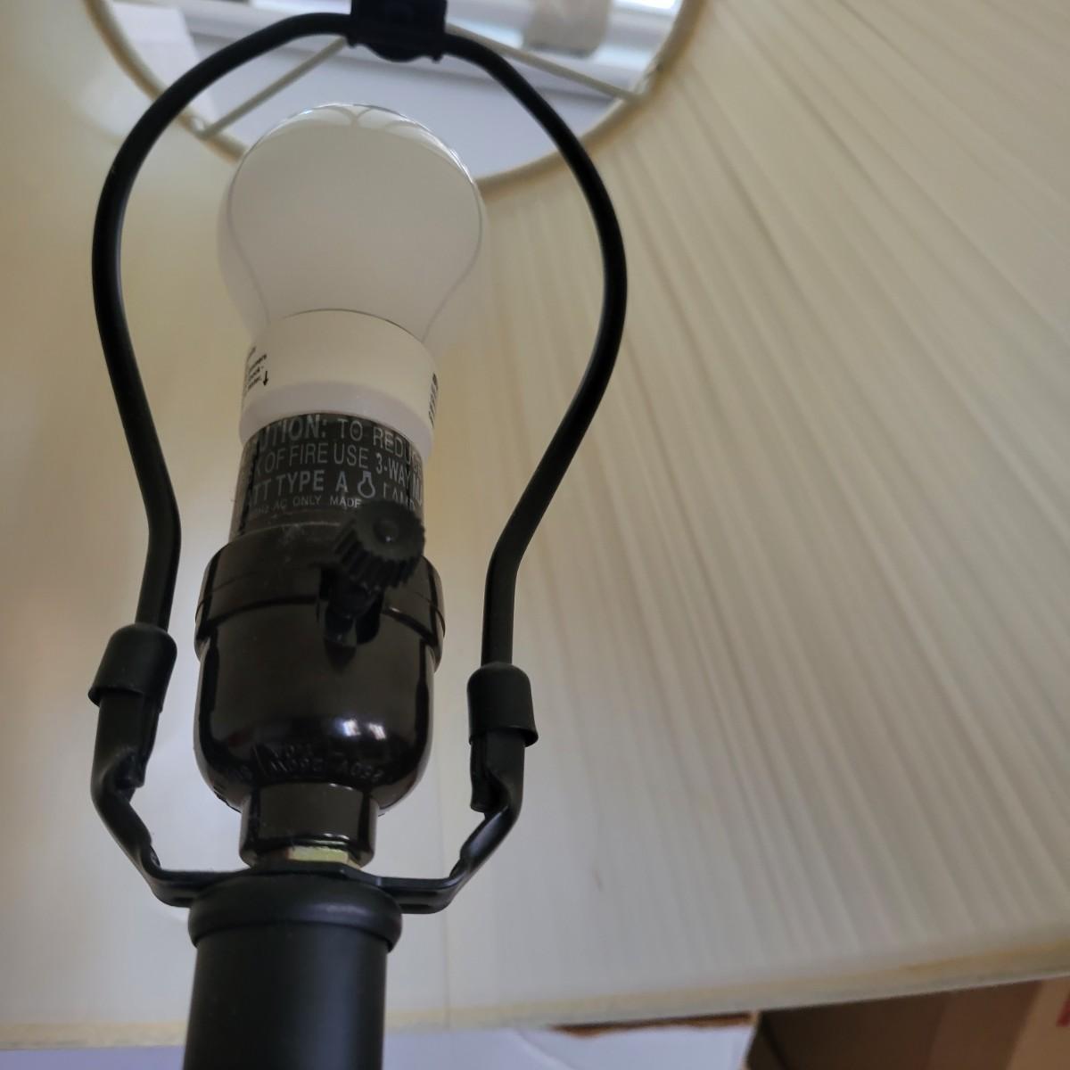 Pair of table lamps with black metal stands and white shades. Both lamps work when tested. Total height measures approximately 23"H. Shipping available.