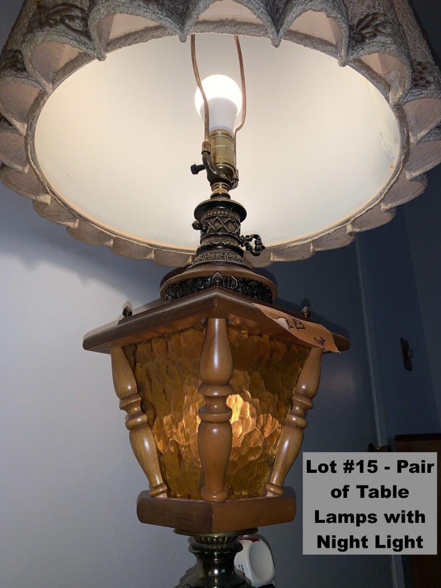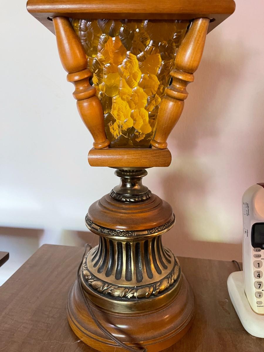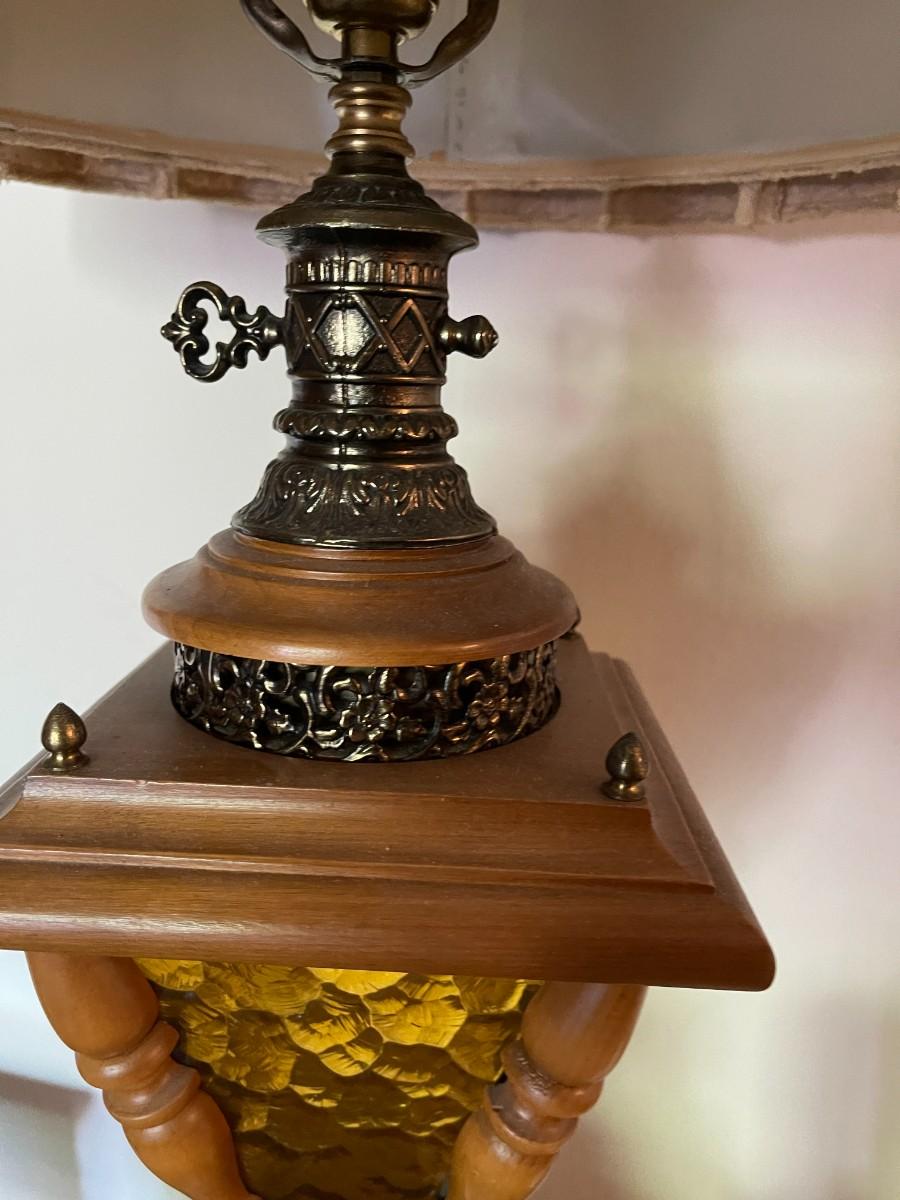 Pair of Vintage Table Lamps with an Amber Glass Lantern Light Works. See Photos for scratches.