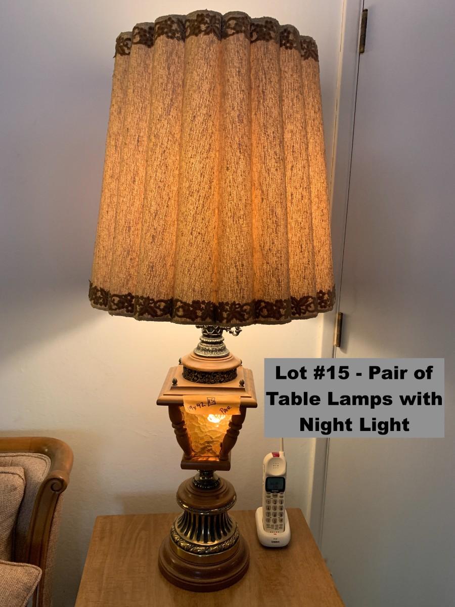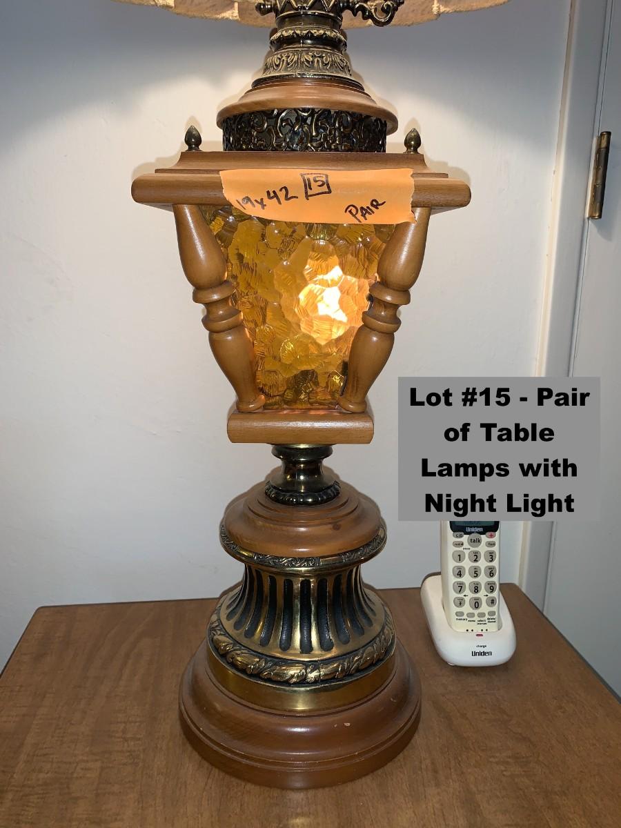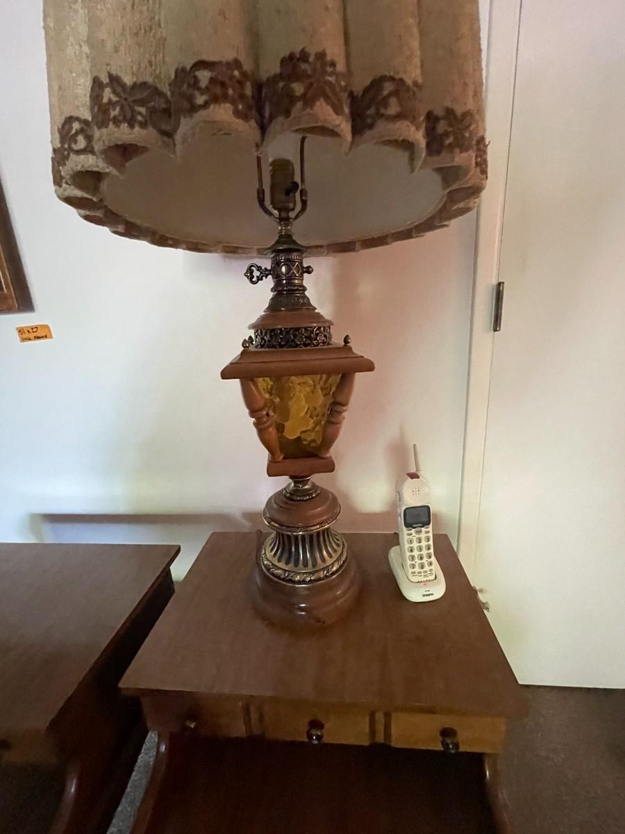 Pair of Vintage Table Lamps with an Amber Glass Lantern Light Works. See Photos for scratches.