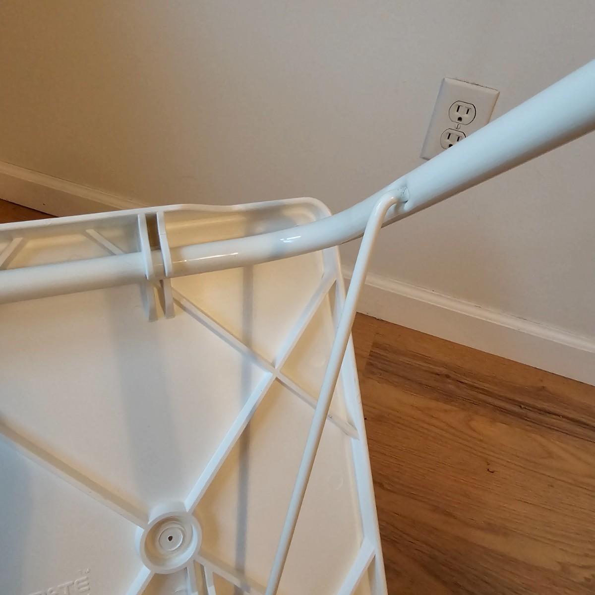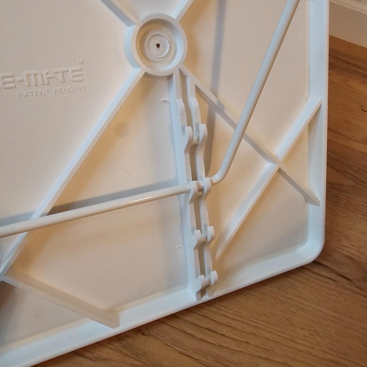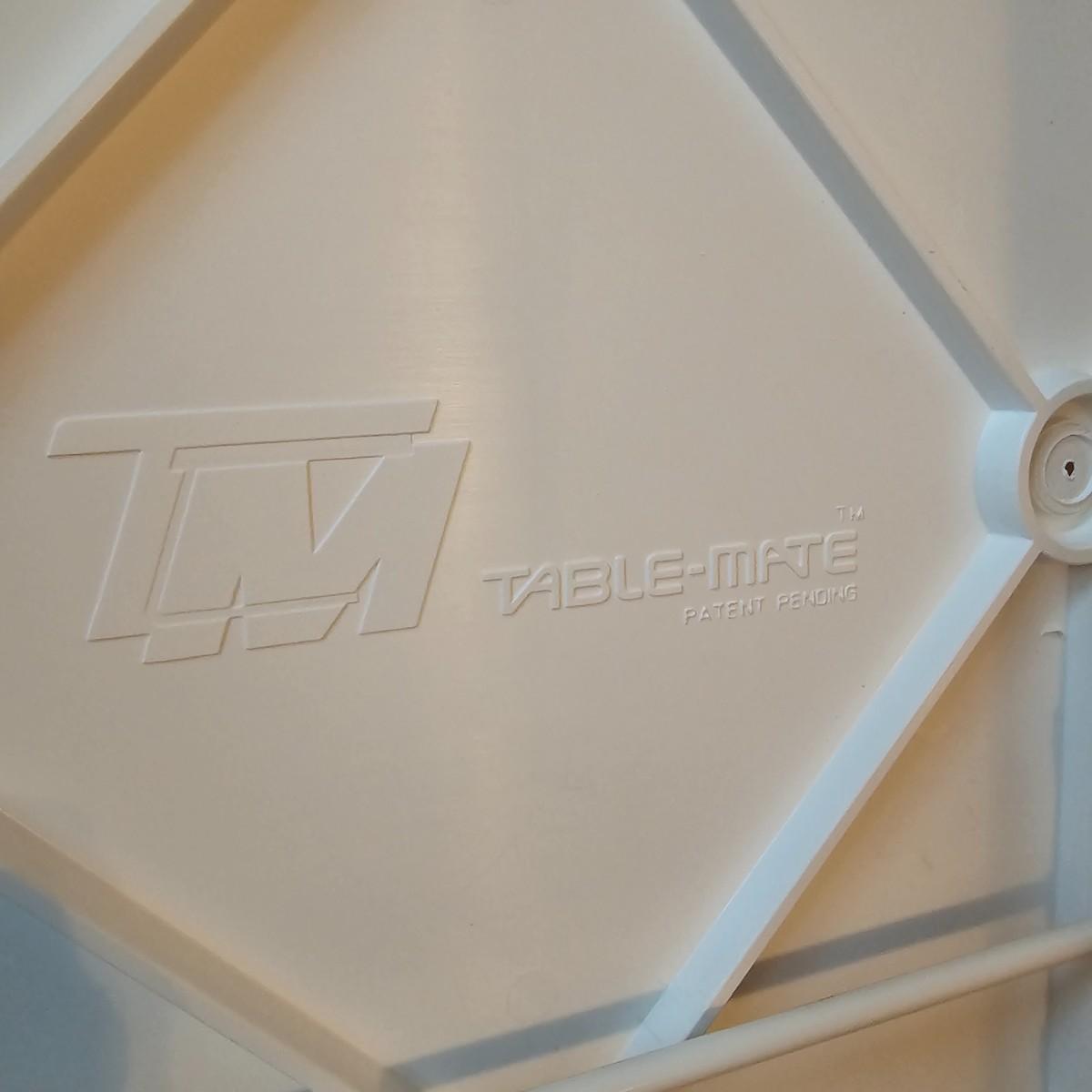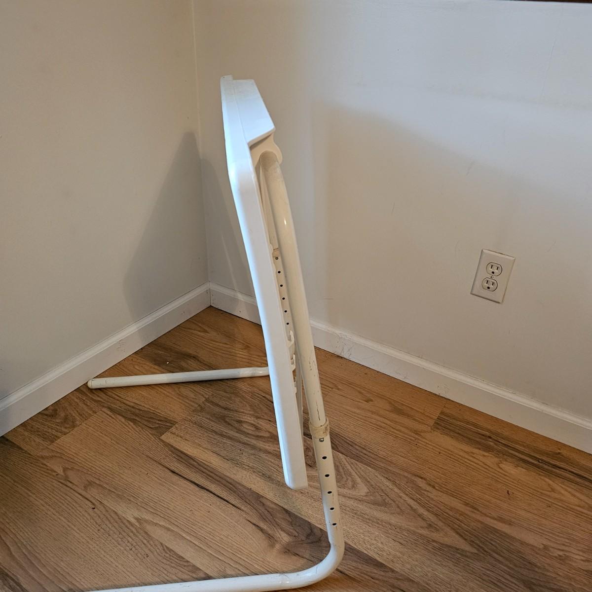 Two Table-Mate brand adjustable tables. Plastic tops, steel legs. Tops adjust from full flat to several different angles. Legs move up or down, can be used over a lap or with furniture. Tables measure 20" x 25.5" x 22-30"H. See photos for details. Local pickup only.