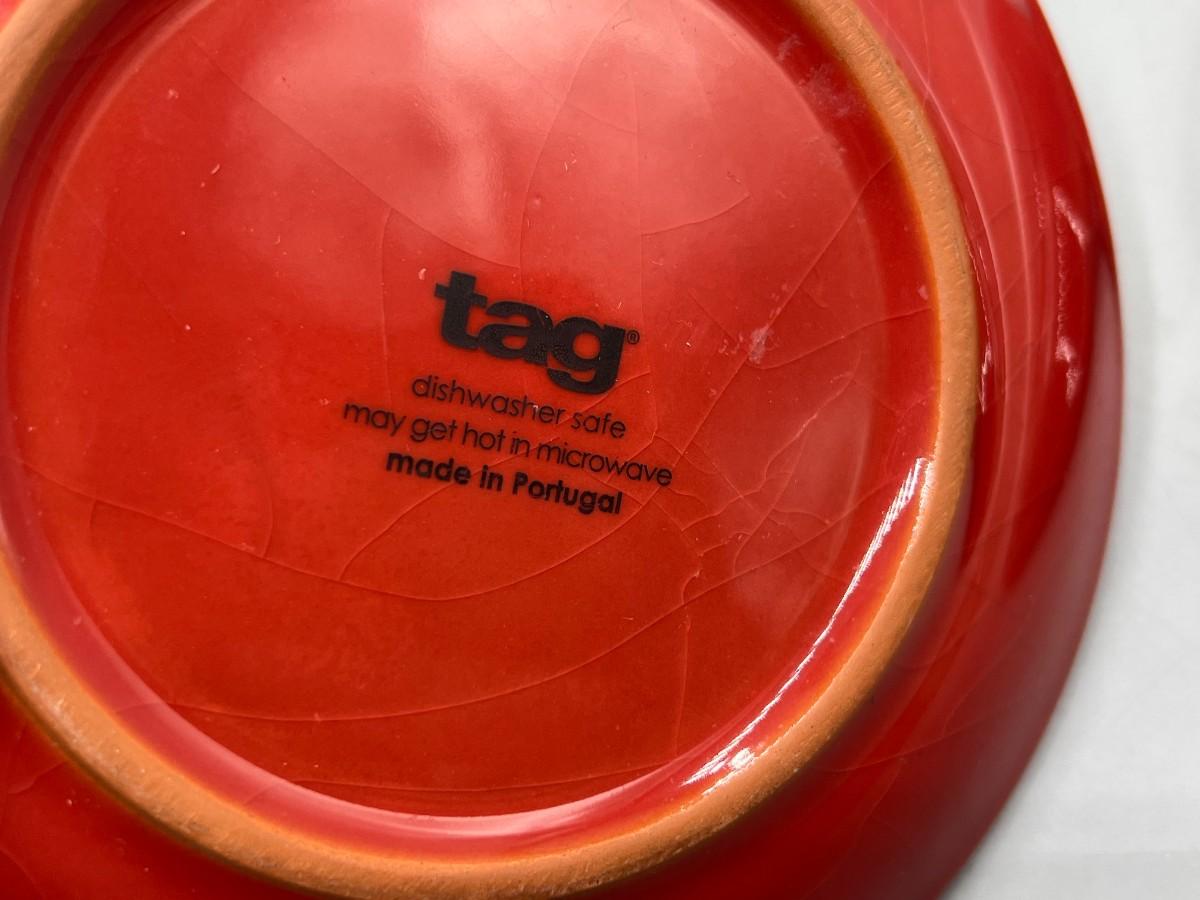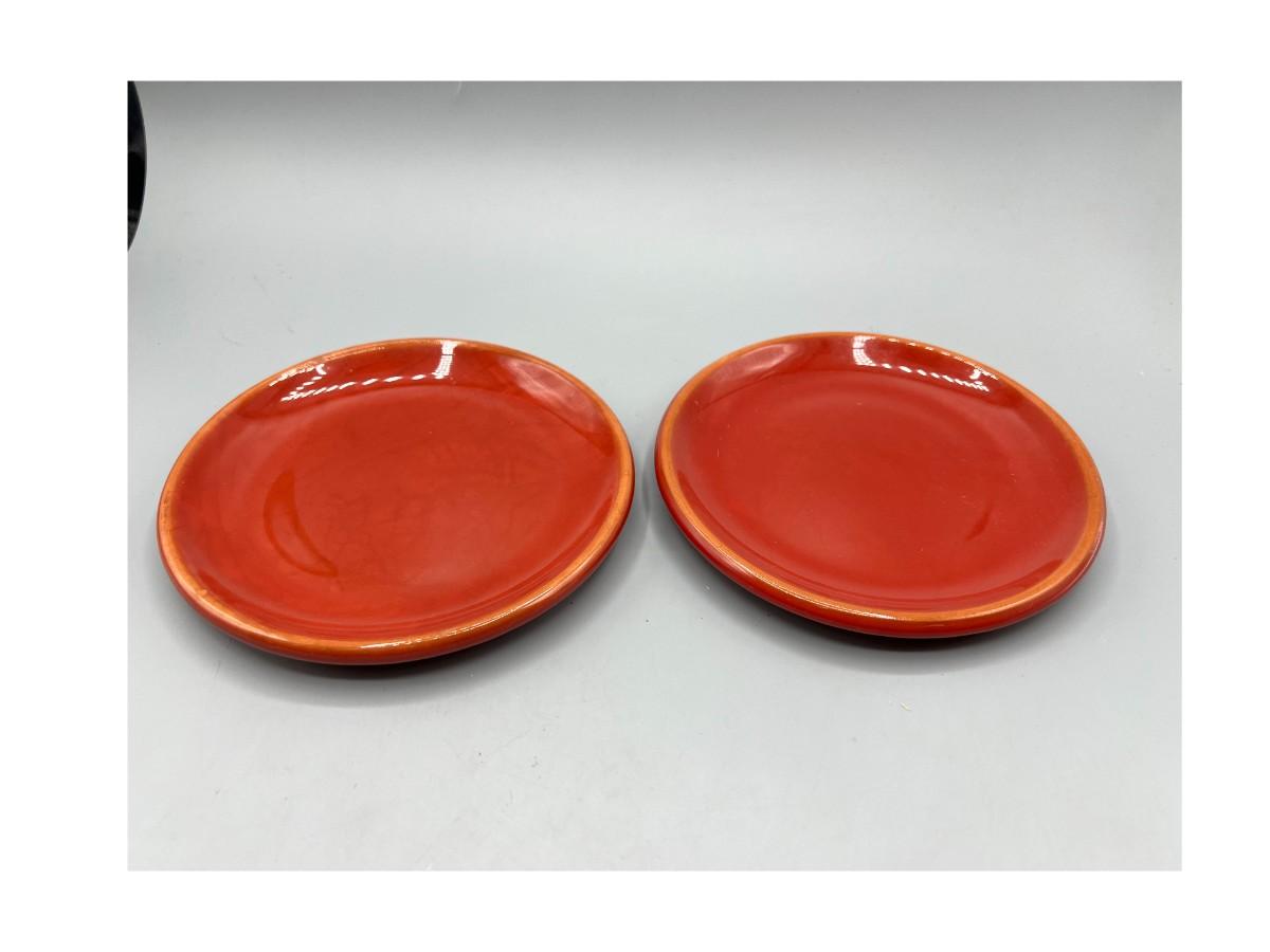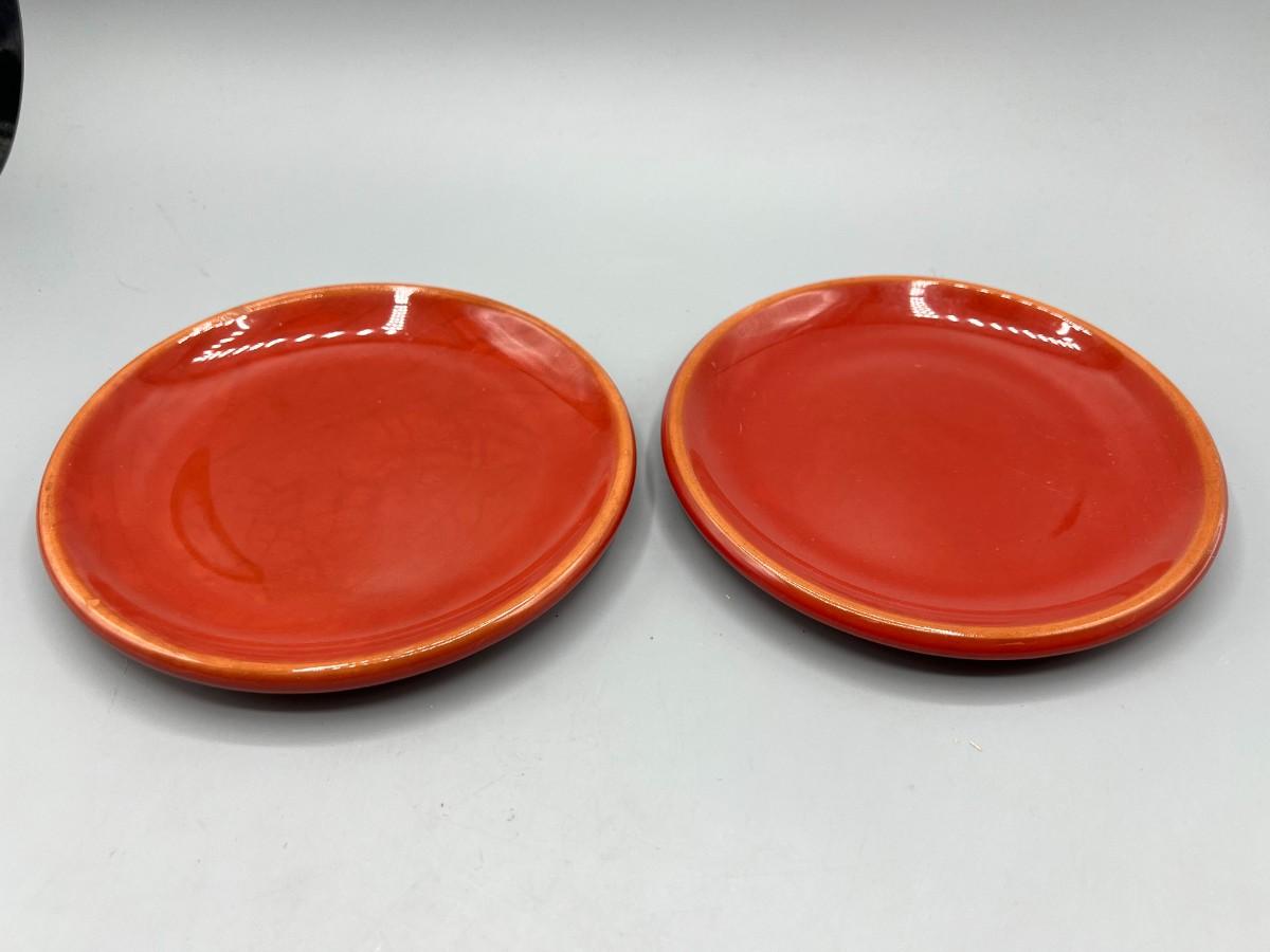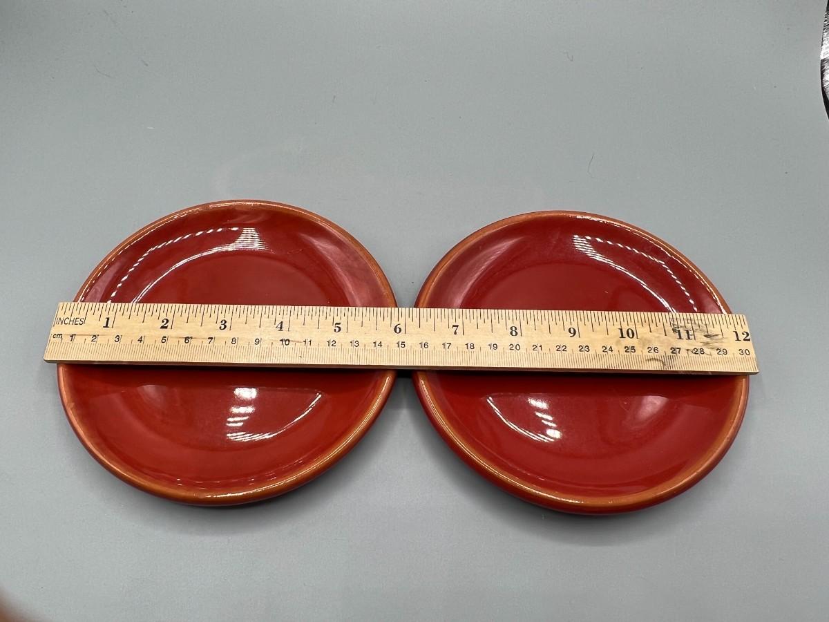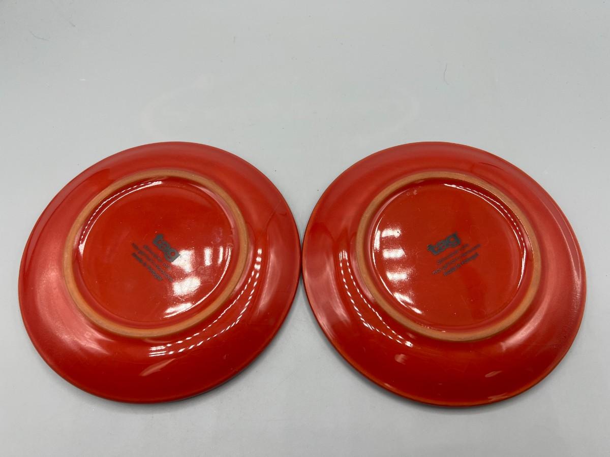 Pair of Tag Made in Portugal Red Ceramic Dessert Plates Serving Dishes