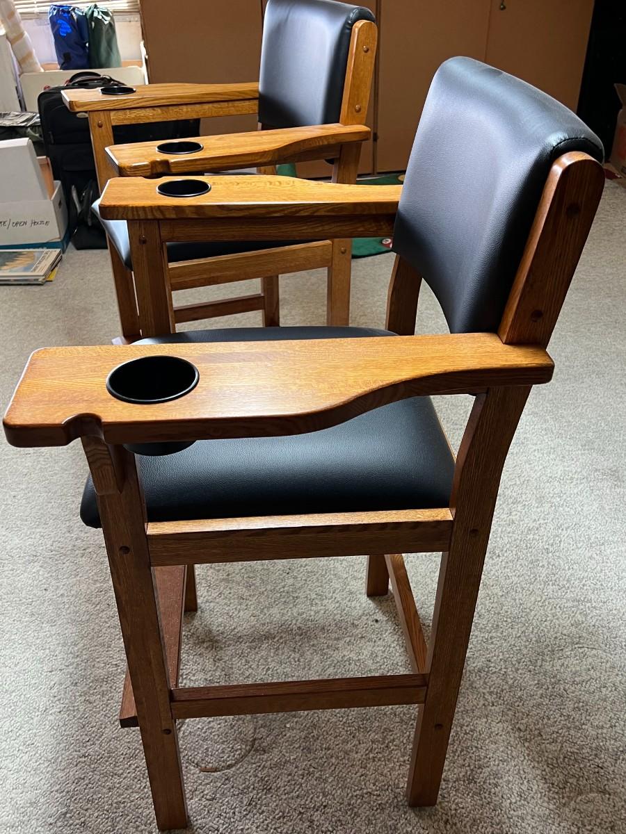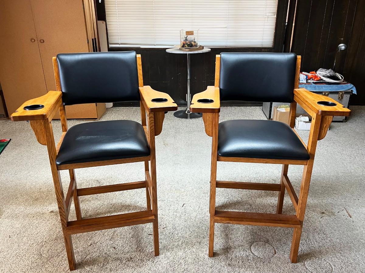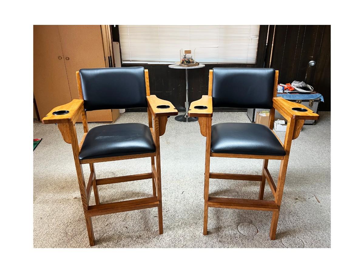Pair of Tall Bar Stool Height Armchairs with Cup Holders. Good condition, may have light signs of use.