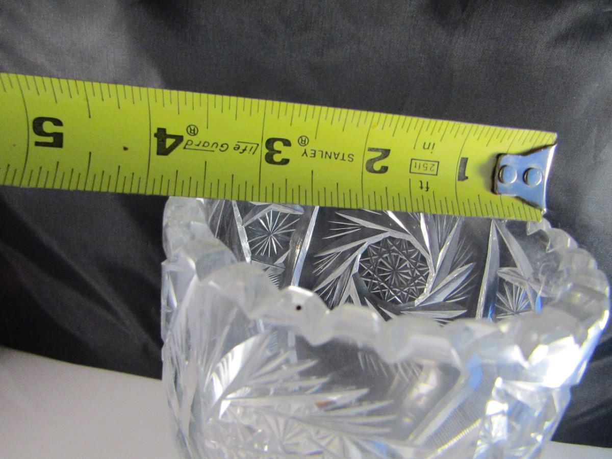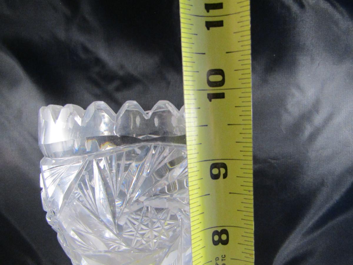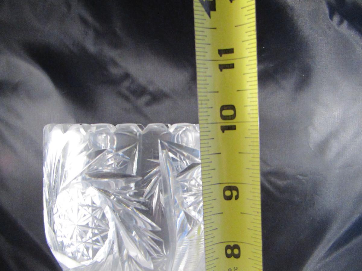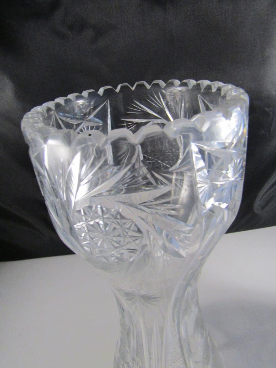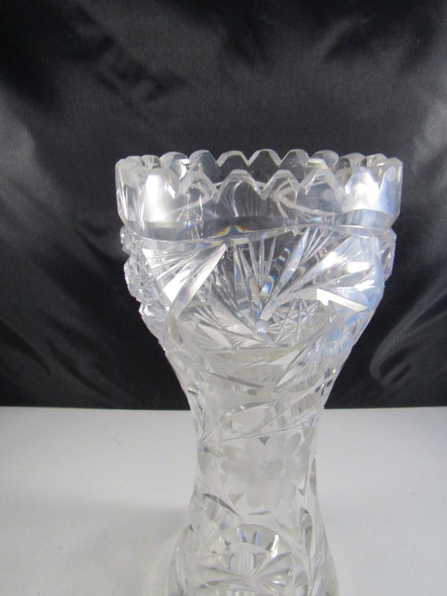 Pair of Tall Crystal Vases. Items are not identical.