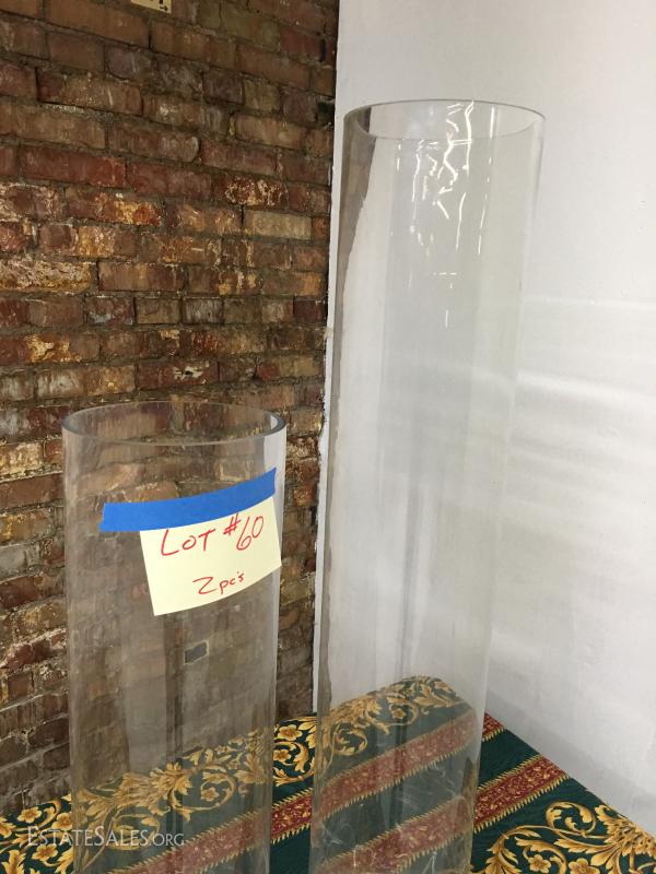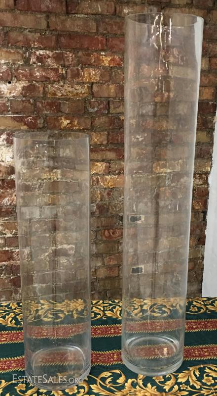 Pair of tall glass vaases 28" & 39". Lot#60