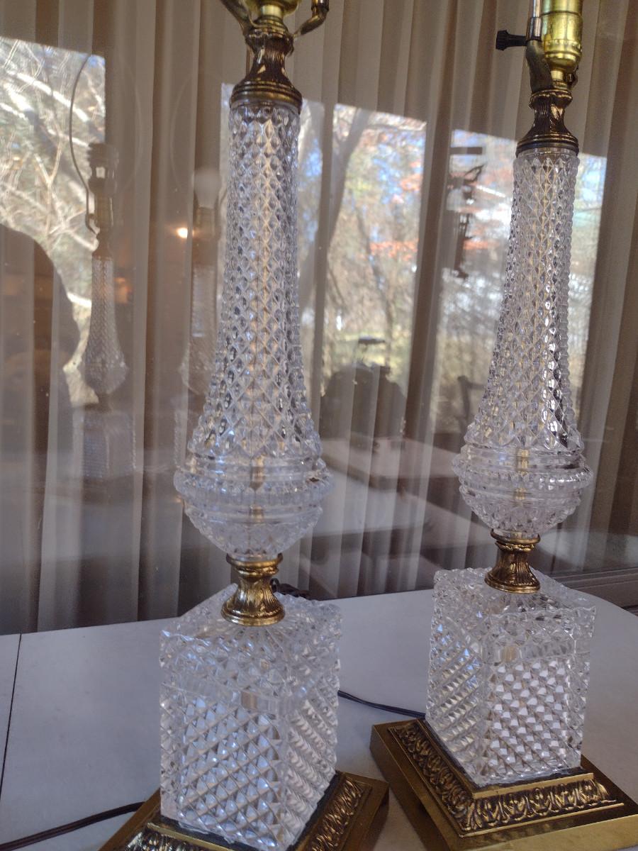 Pair of Tall, Hollywood Regency Style Table Top Lamps (No Shades)- Approx 32 3/4" Tall. Finials included.