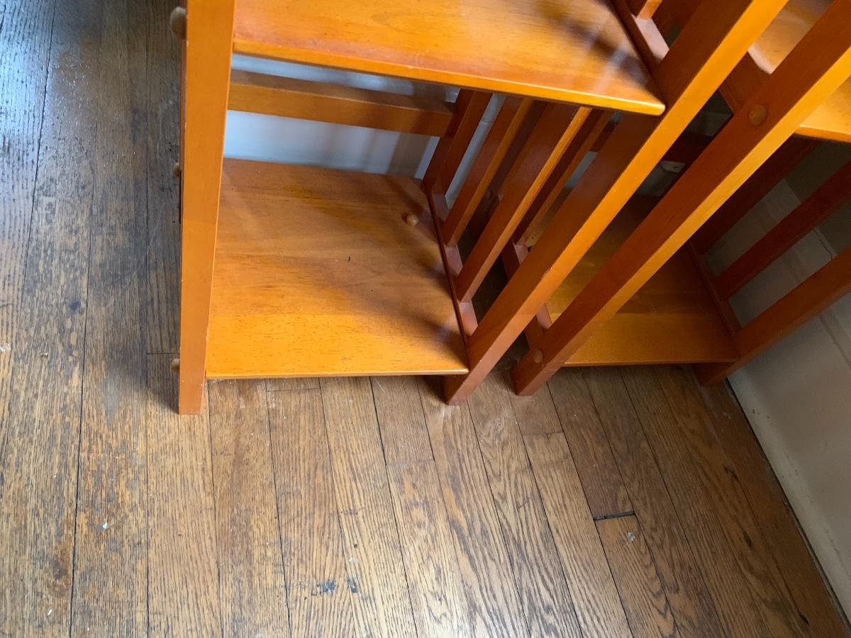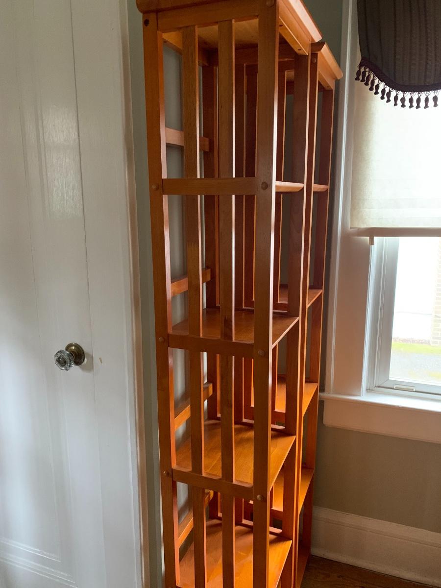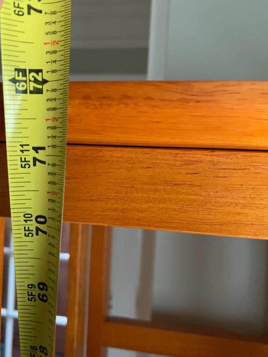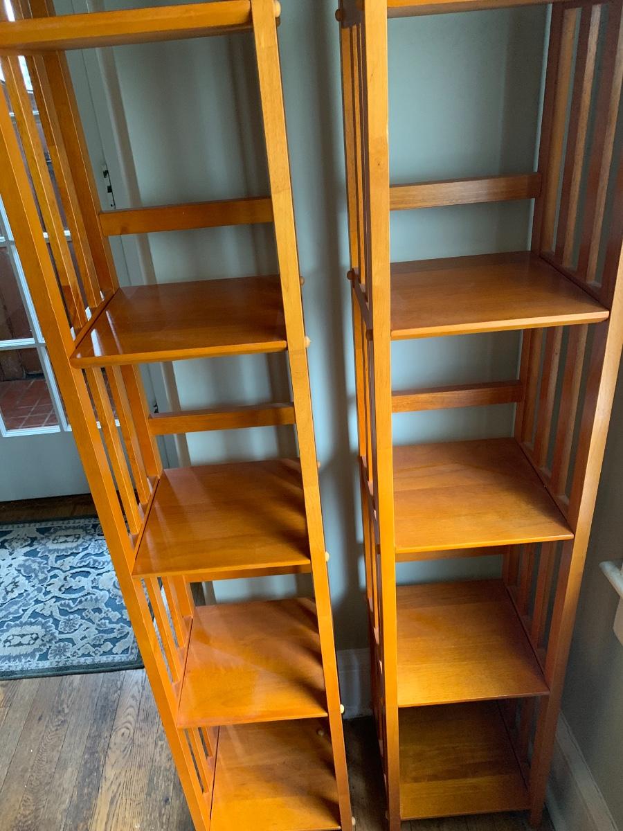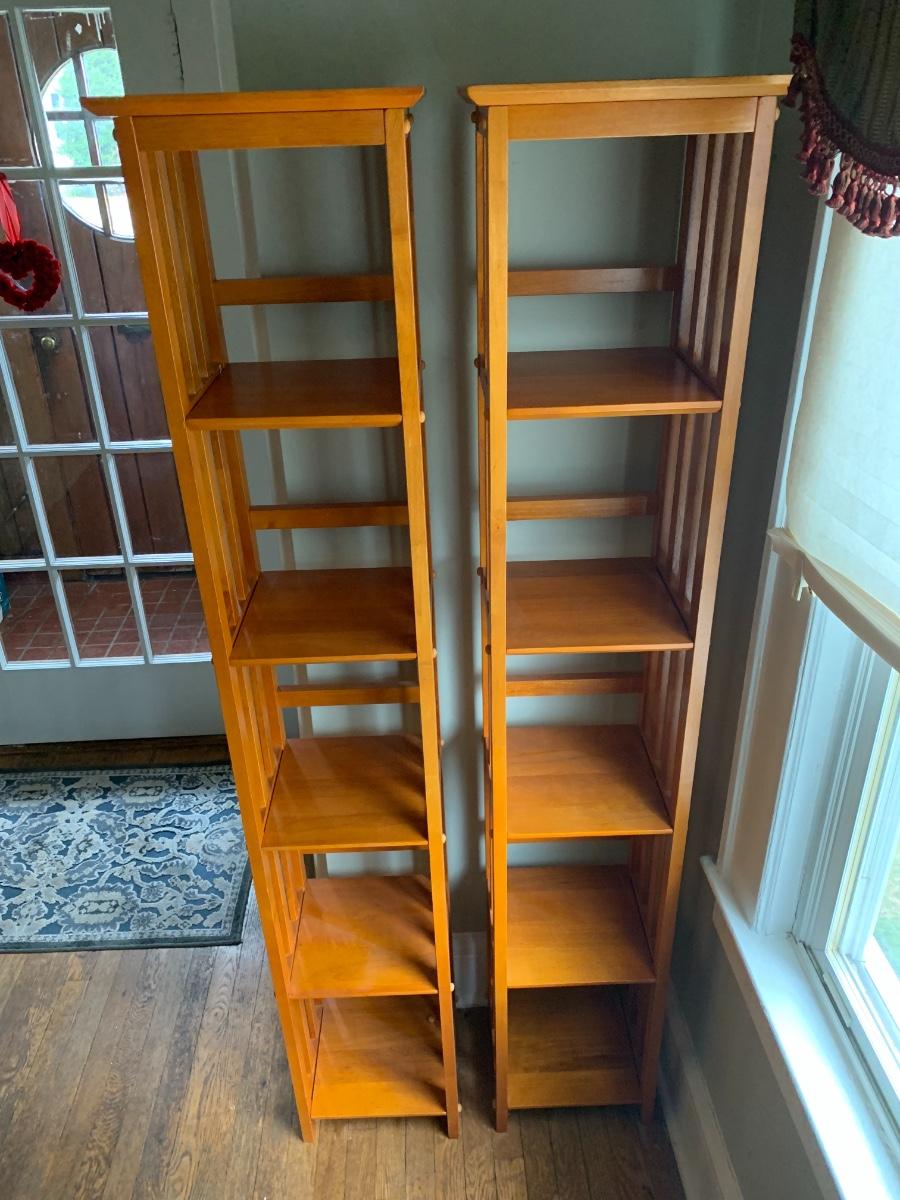 Pair of 2 narrow tall bookcases. 72x11x12.5