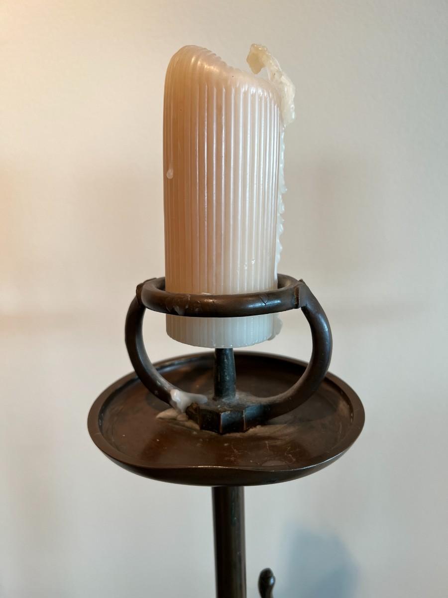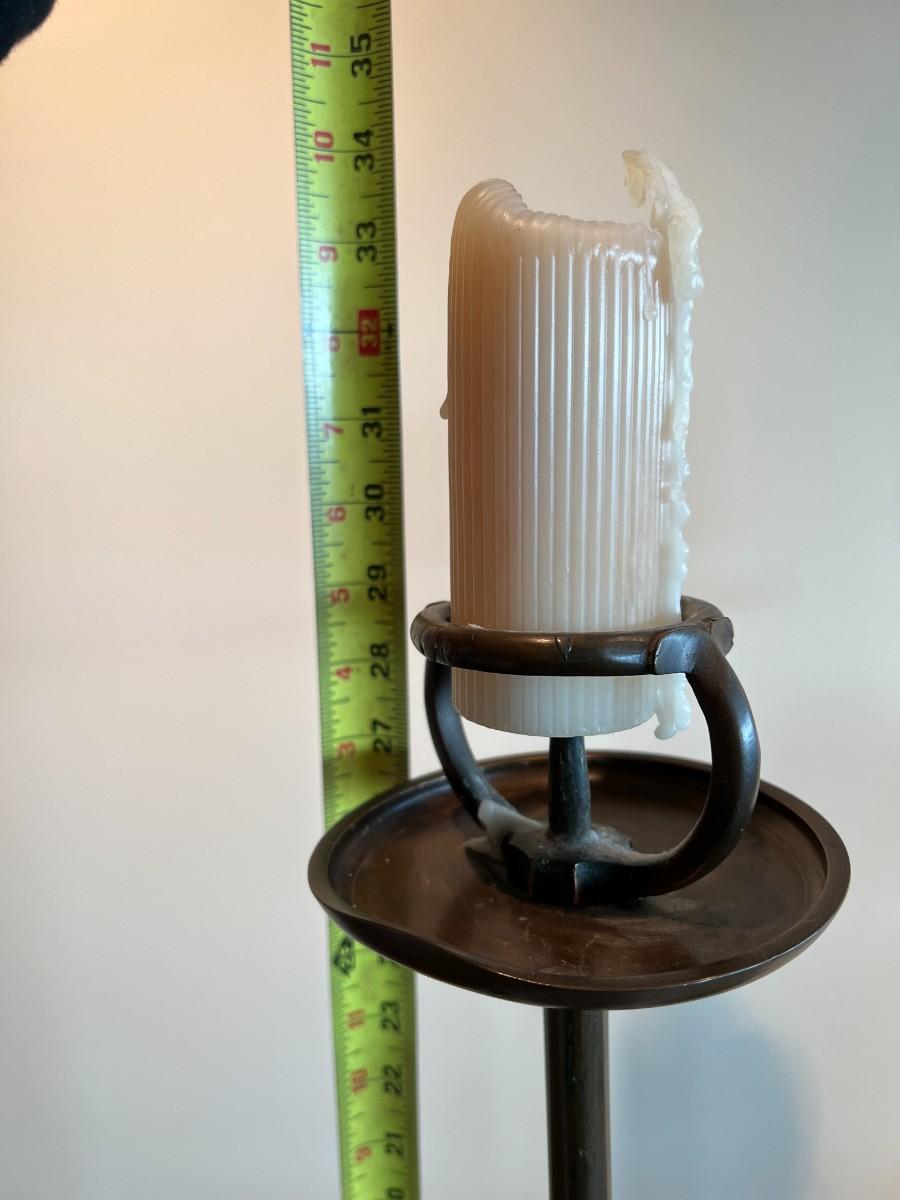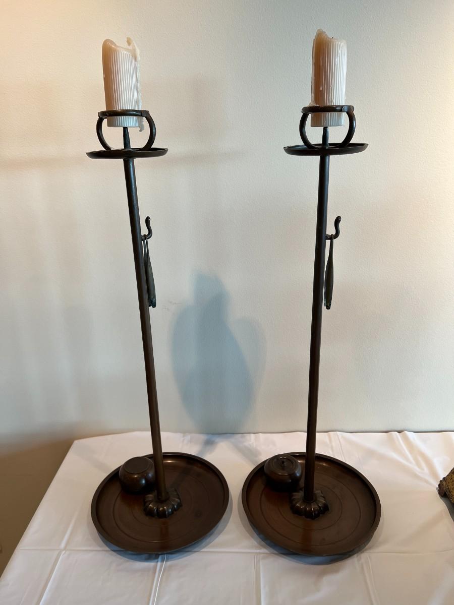 Pair of Tall Vintage Metal Candlesticks with Accessories
